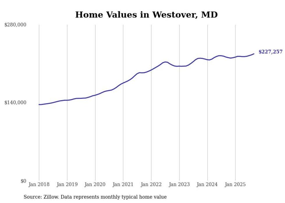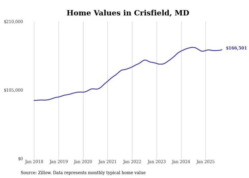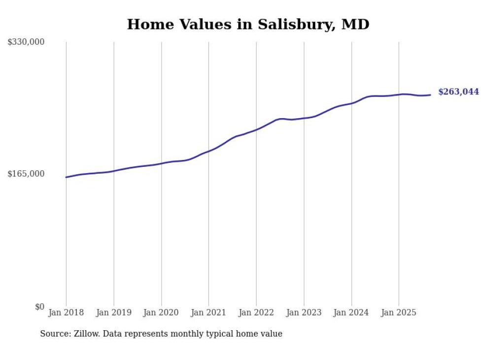 Stacker compiled a list of cities with the most expensive homes in the Salisbury, MD-DE metro area using data from Zillow. Charts show the monthly typical home value since January 2018.