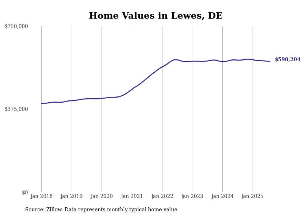 Stacker compiled a list of cities with the most expensive homes in the Salisbury metro area using data from Zillow. Charts show the monthly typical home value since January 2018. Data was available for 53 cities and towns.