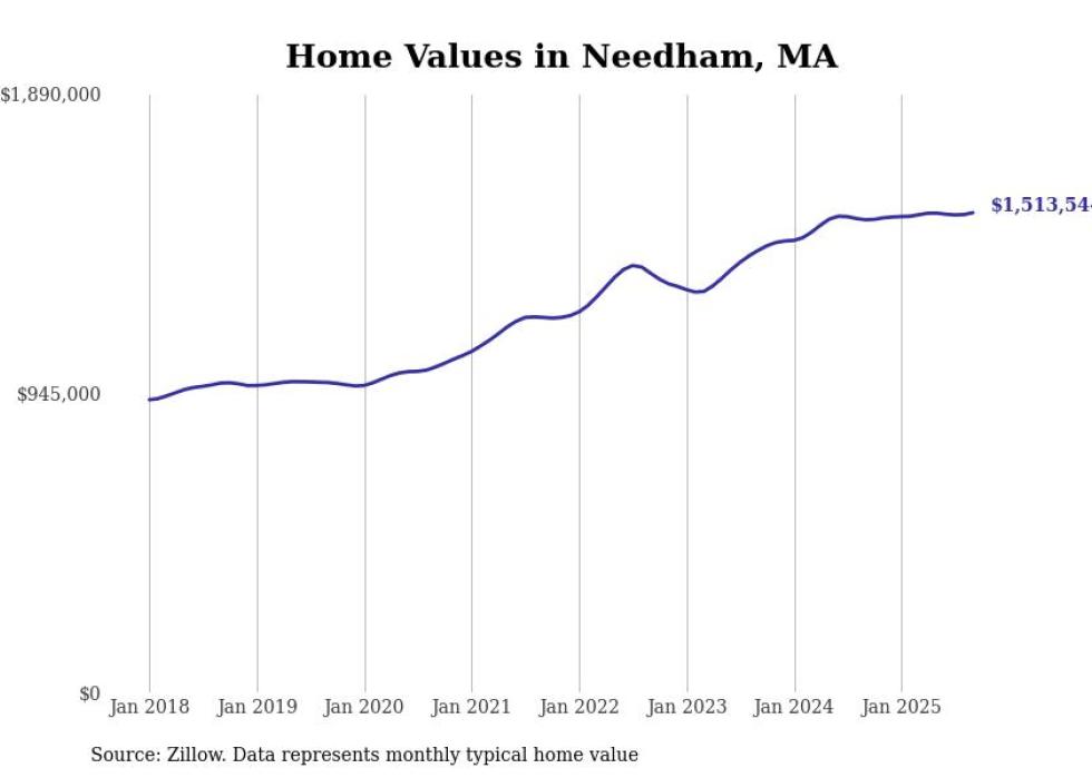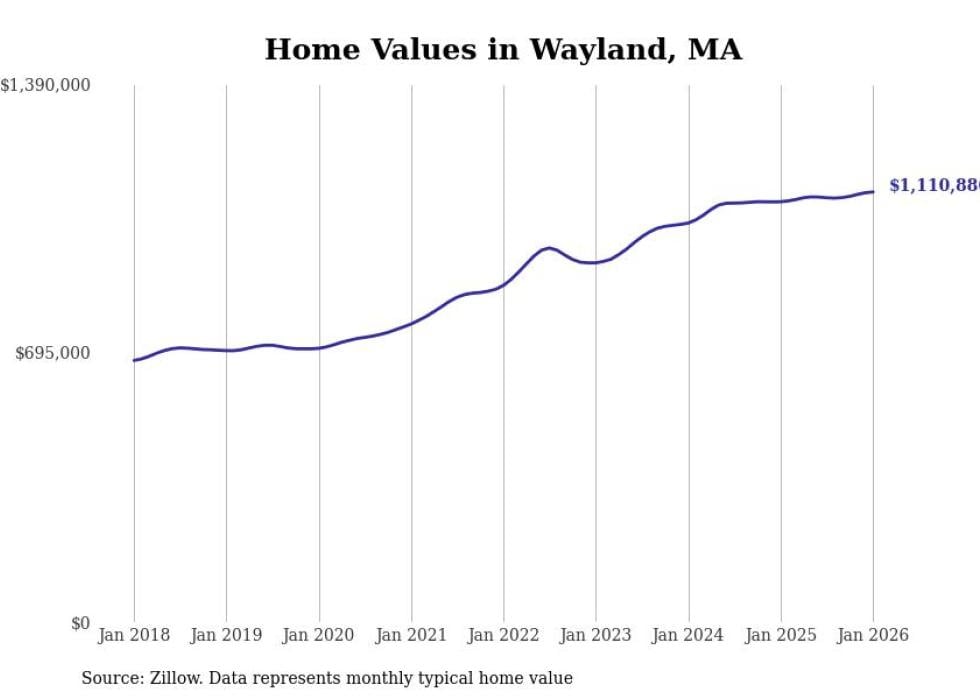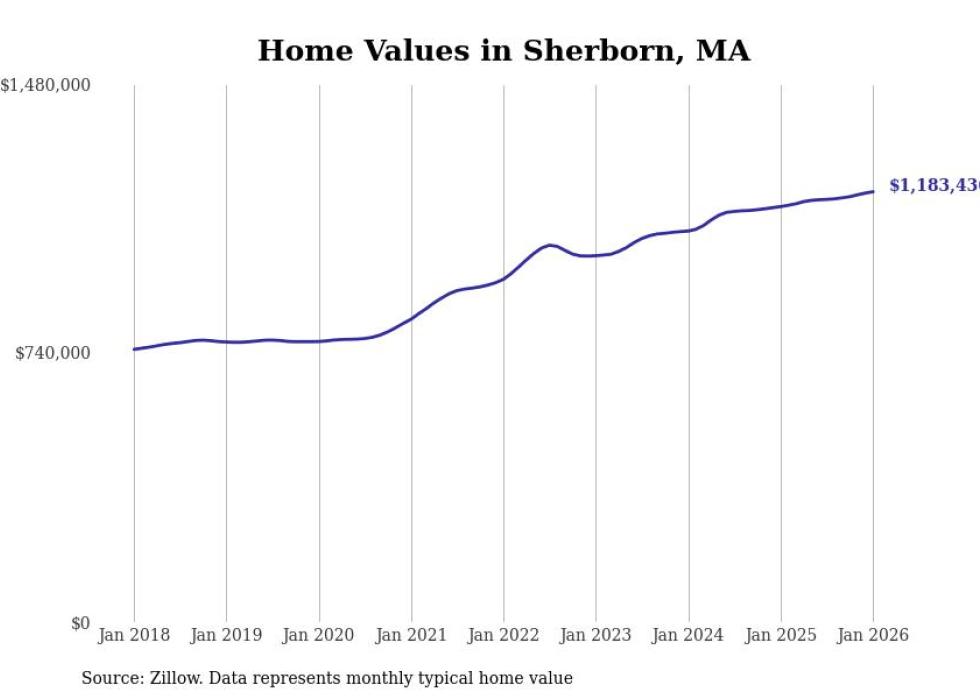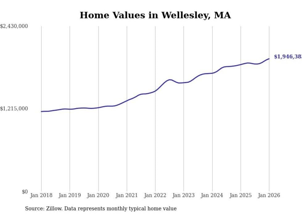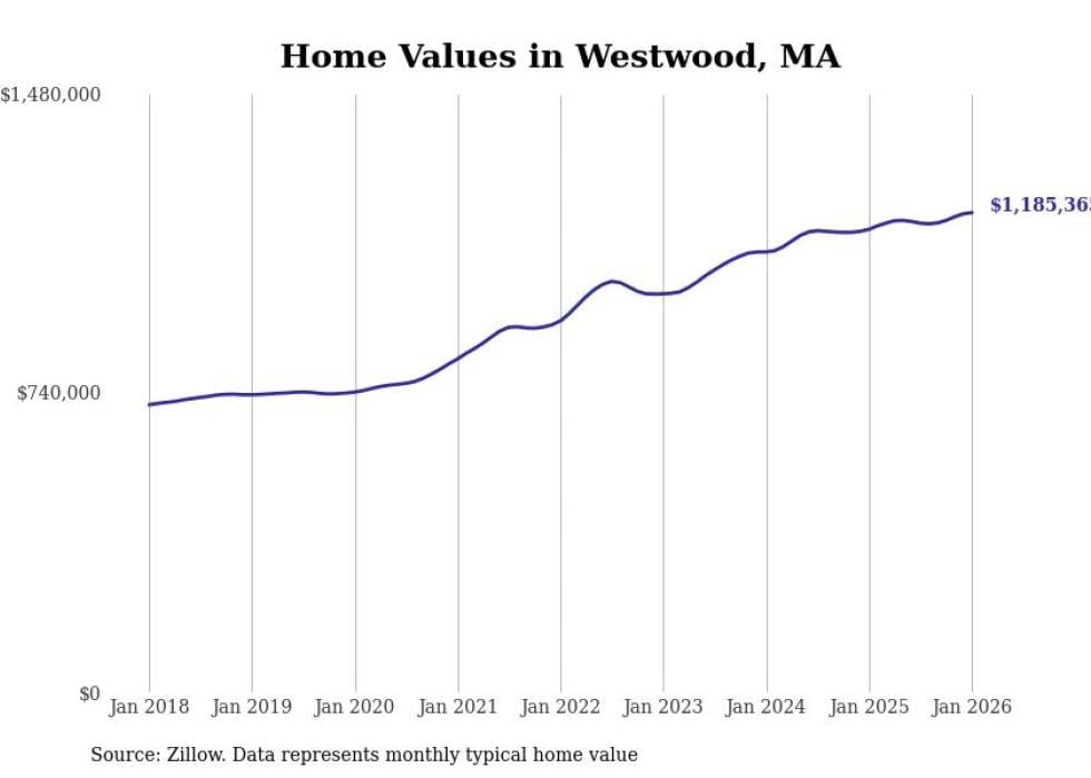 Stacker compiled a list of cities with the most expensive homes in the Boston metro area using data from Zillow. Charts show the monthly typical home value since January 2018. Data was available for 197 cities and towns.