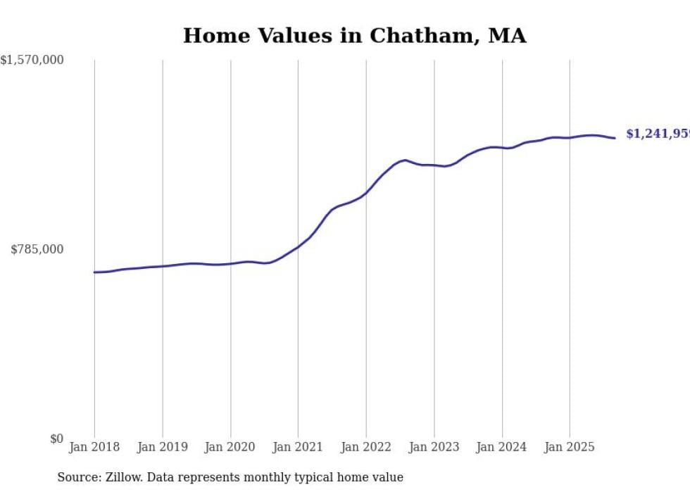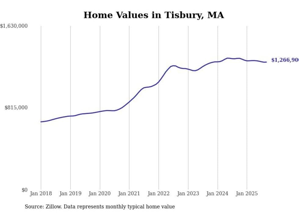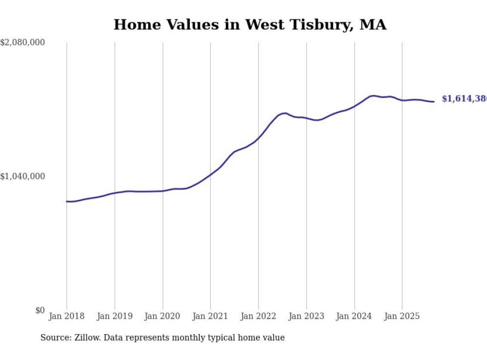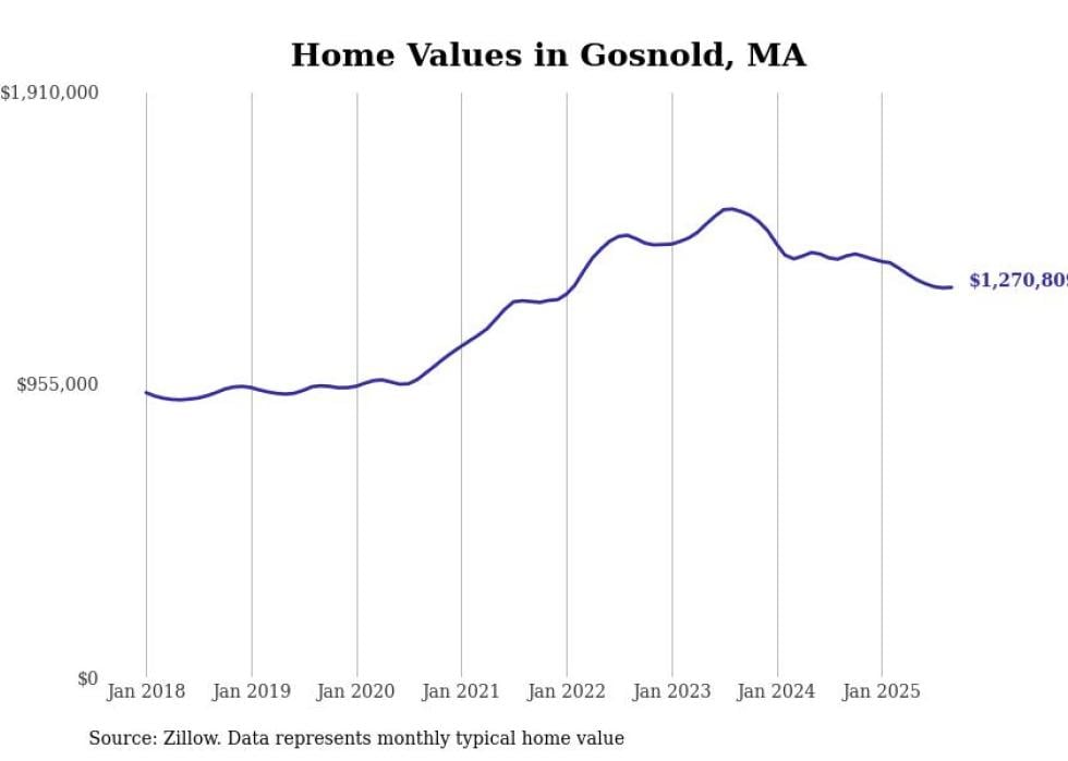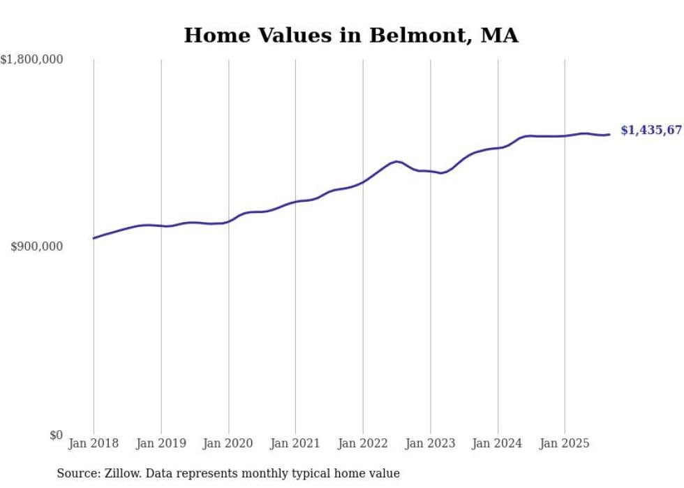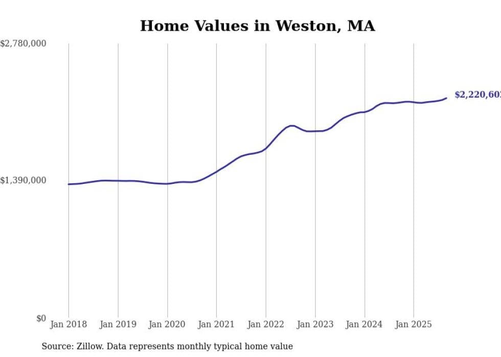 Stacker compiled a list of cities with the most expensive homes in Massachusetts using data from Zillow. Cities are ranked by the Zillow Home Values Index for all homes as of September 2025. The charts in this story were created automatically using Matplotlib.