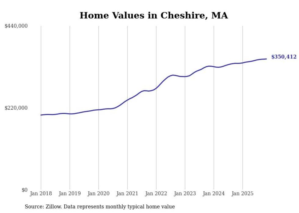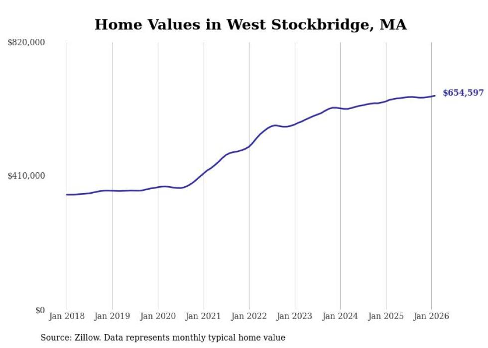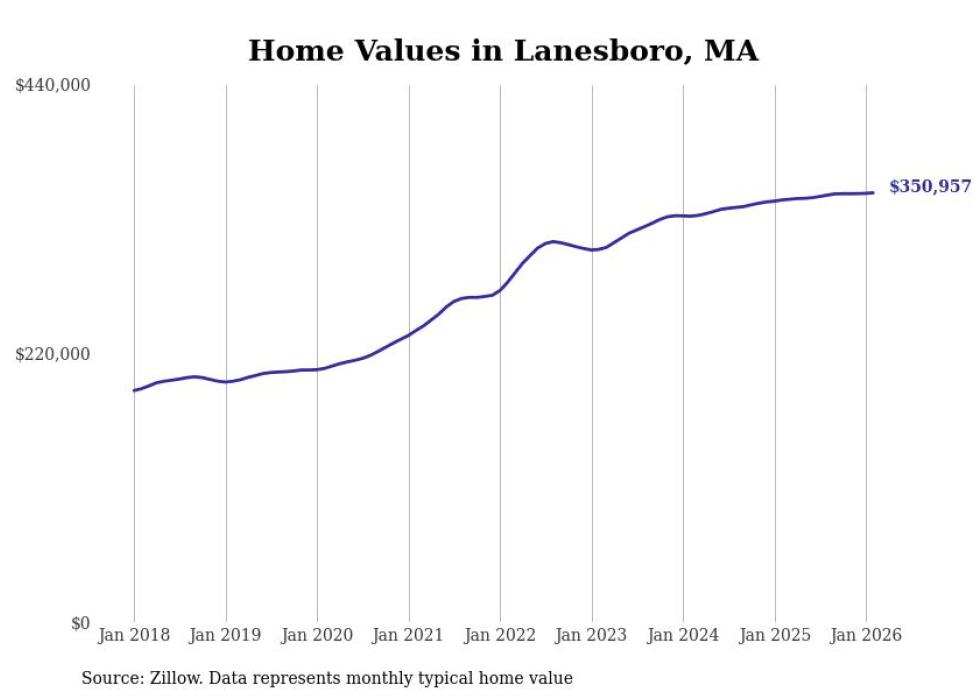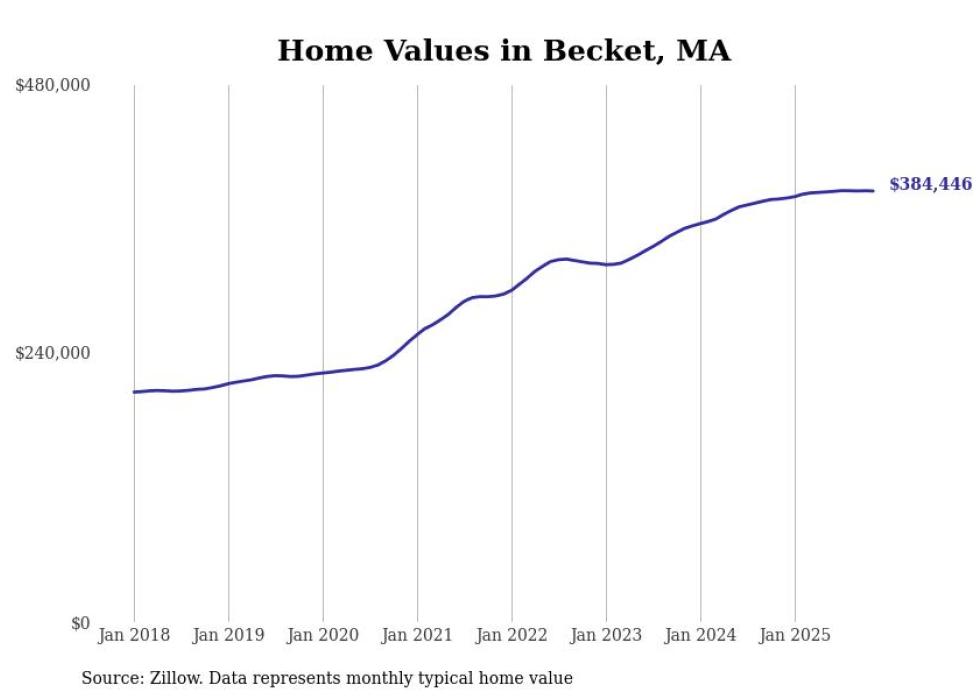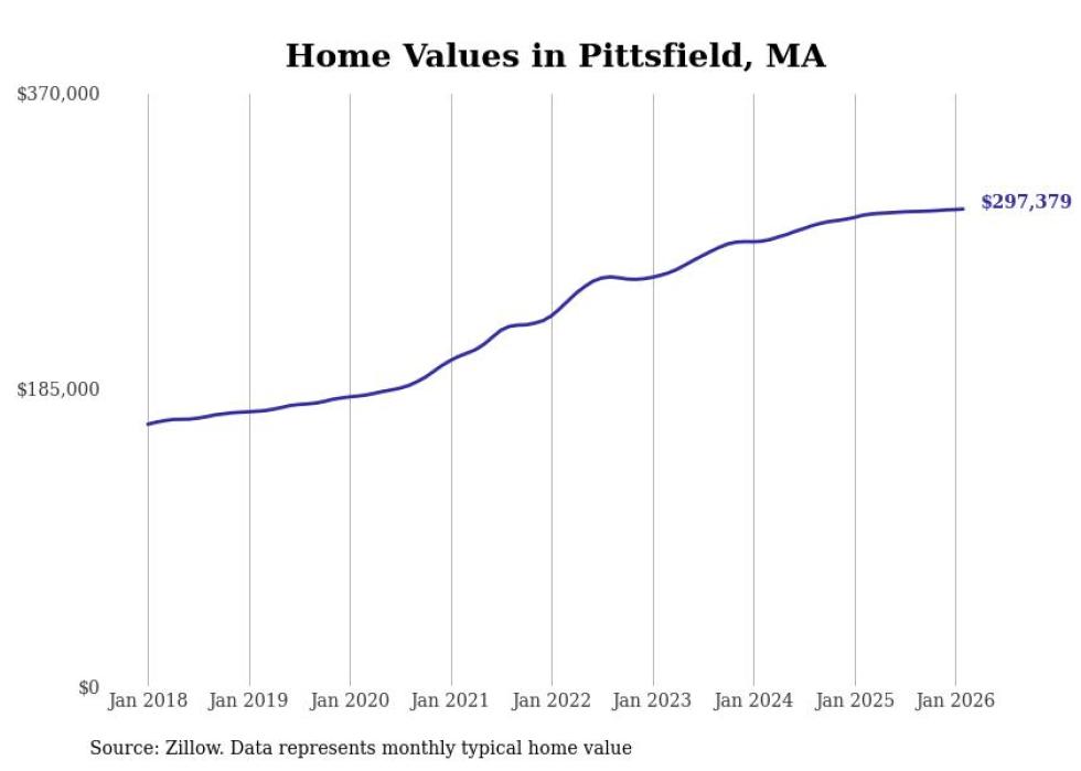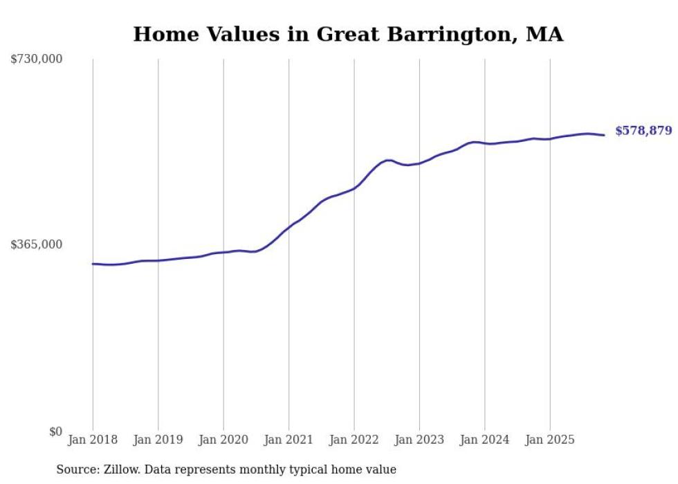 Stacker compiled a list of cities with the most expensive homes in the Pittsfield, MA metro area using data from Zillow. Charts show the monthly typical home value since January 2018.