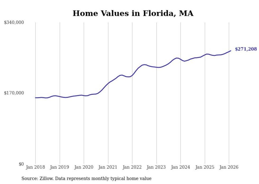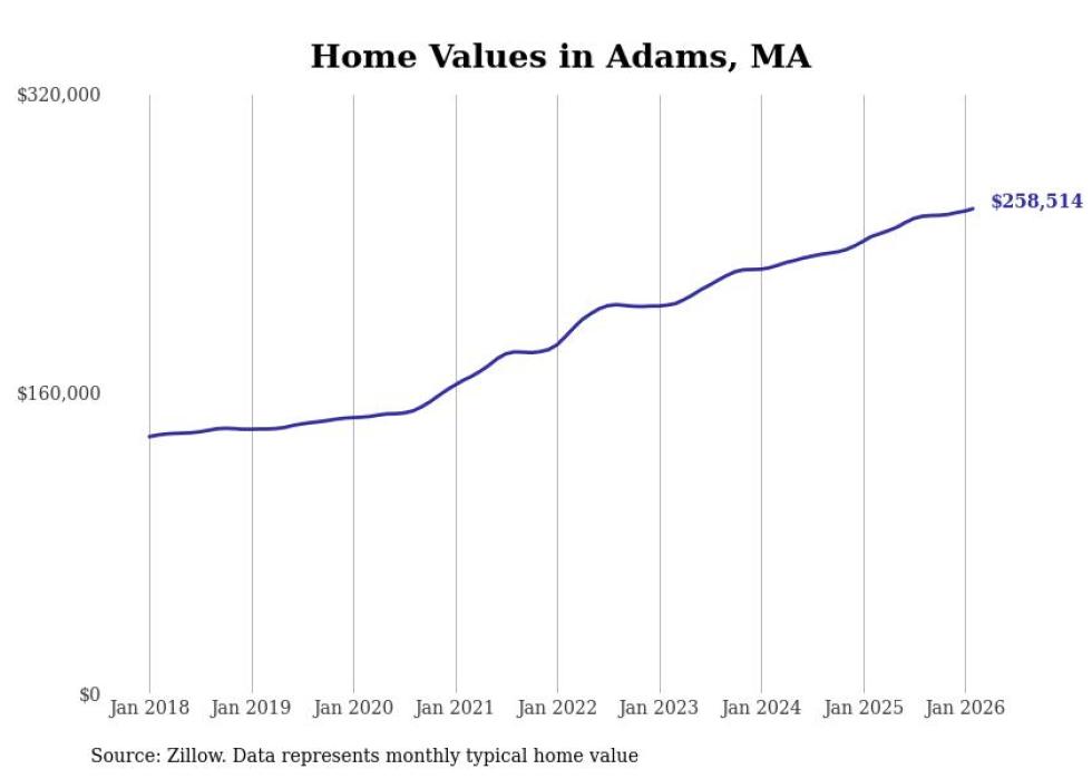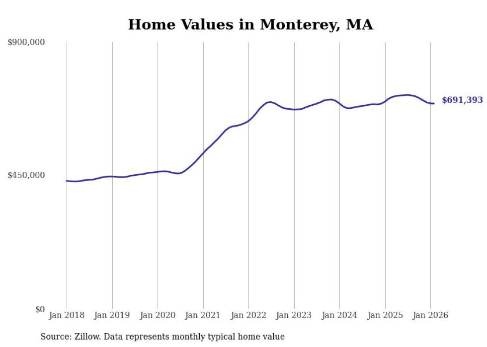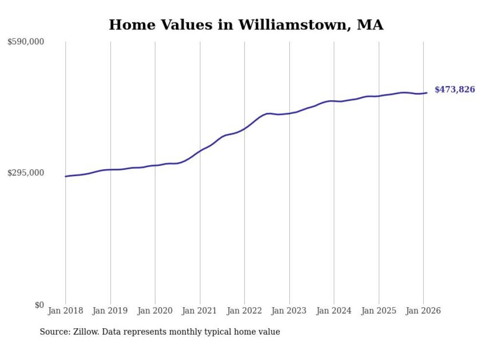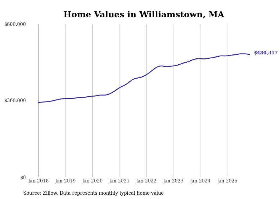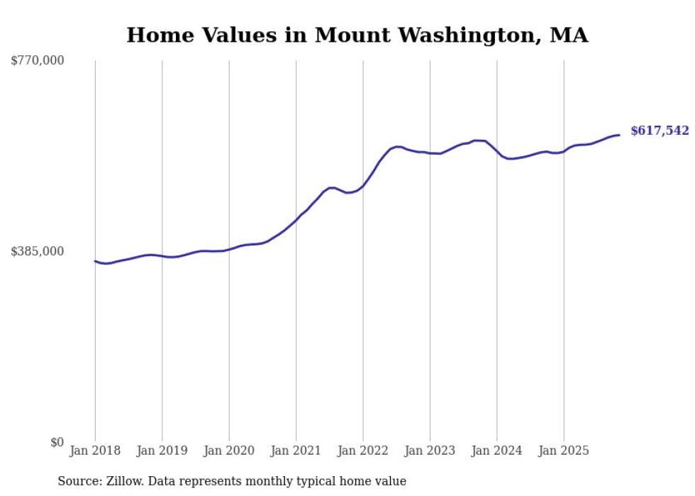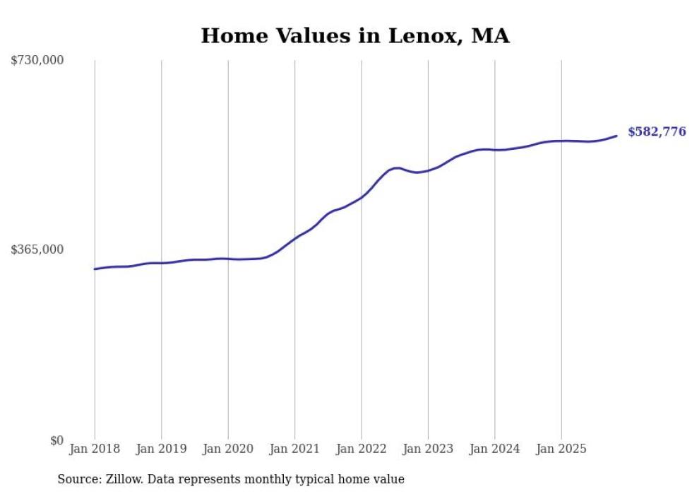 Stacker compiled a list of cities with the most expensive homes in the Pittsfield, MA metro area using data from Zillow. Charts show the monthly typical home value since January 2018.
