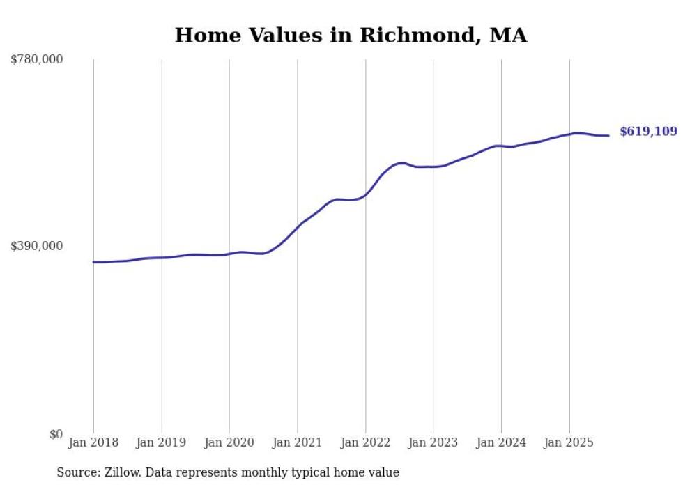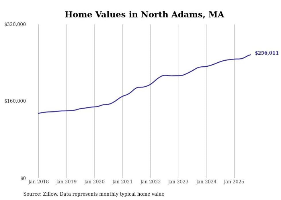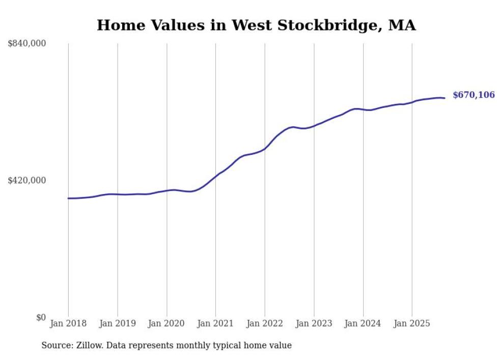 Stacker compiled a list of cities with the most expensive homes in the Pittsfield metro area using data from Zillow. Charts show the monthly typical home value since January 2018. All 29 cities and towns with data available were included in the list.