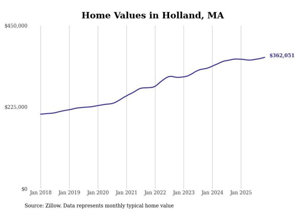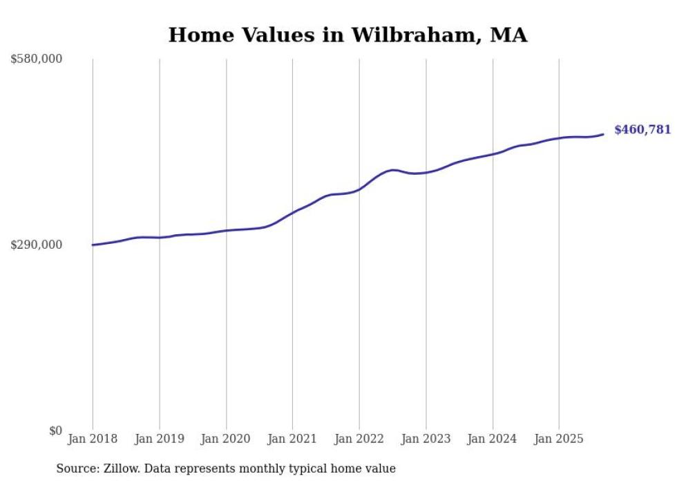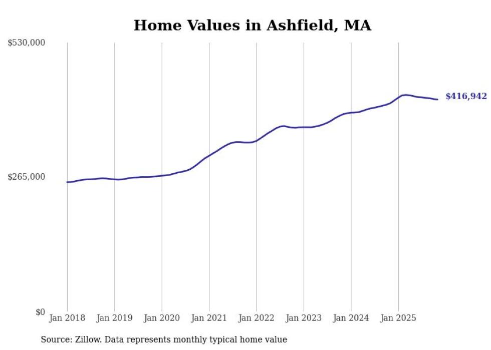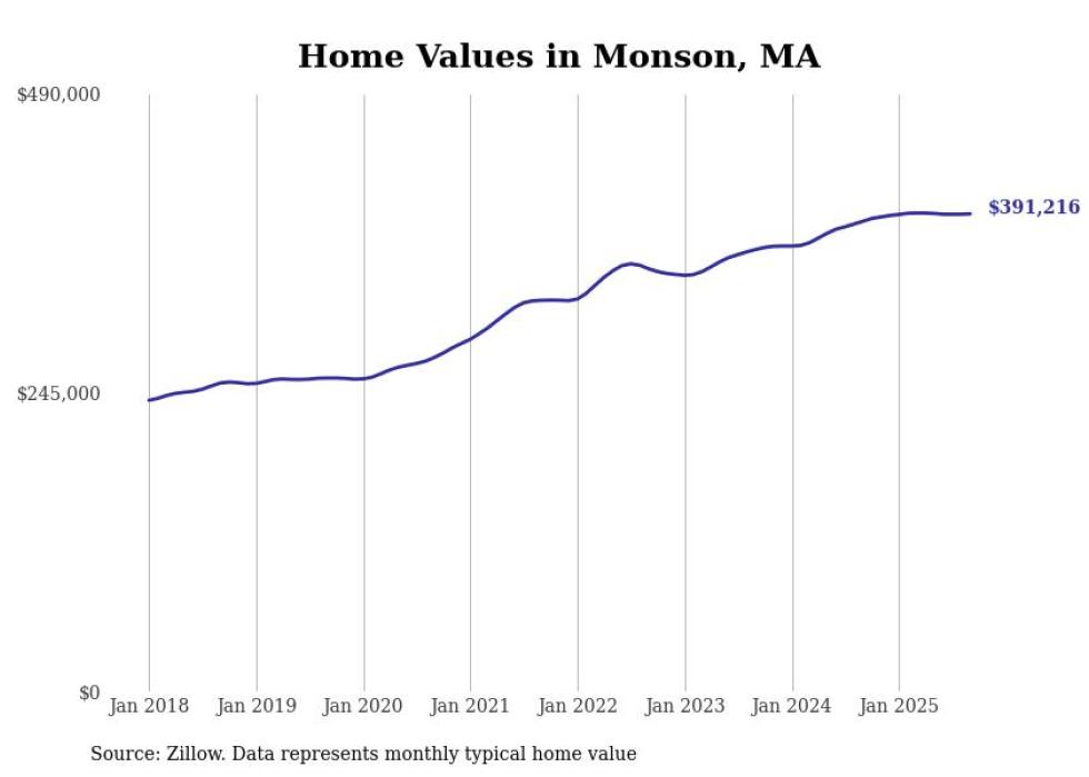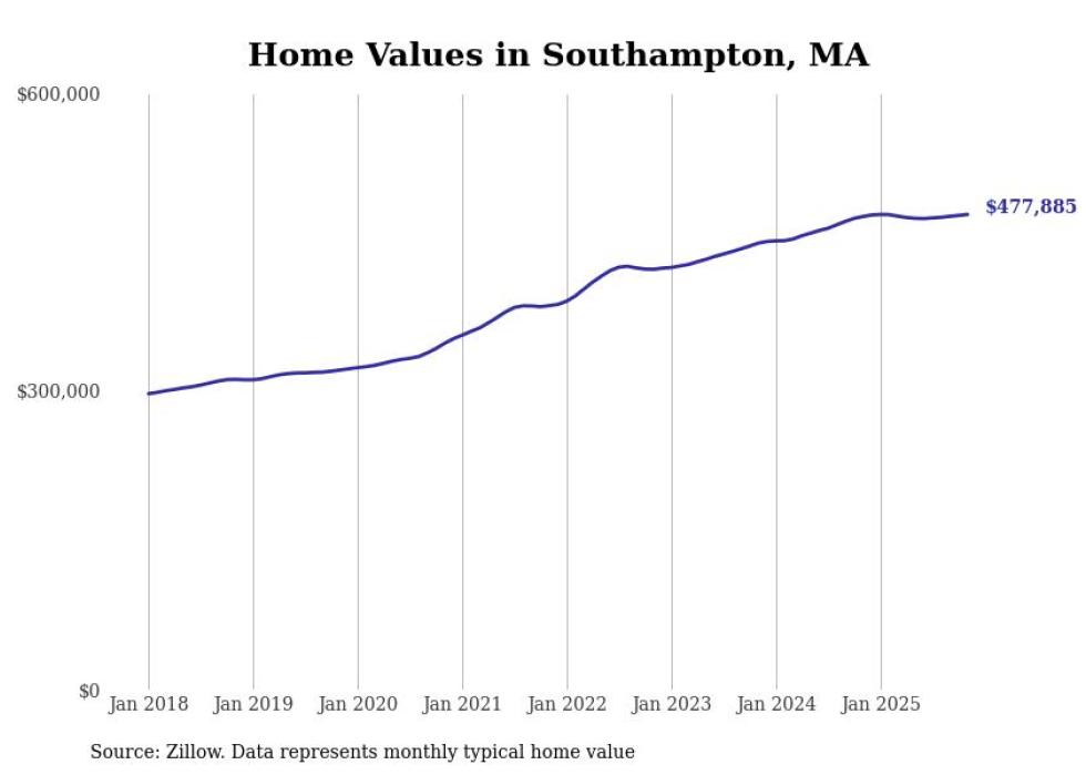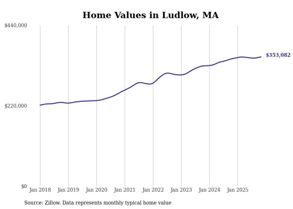 Stacker compiled a list of cities with the most expensive homes in the Springfield, MA metro area using data from Zillow. Charts show the monthly typical home value since January 2018.