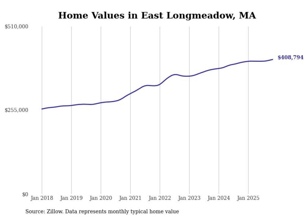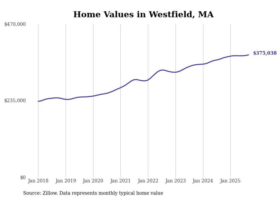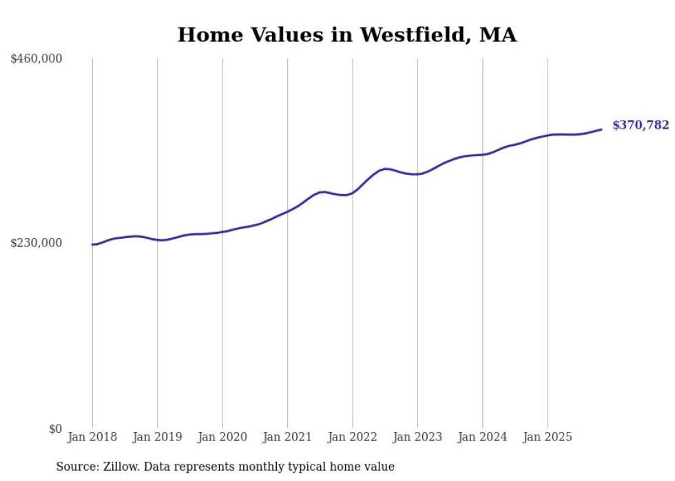 Cities with the fastest-growing home prices in the Springfield, Massachusetts metro area