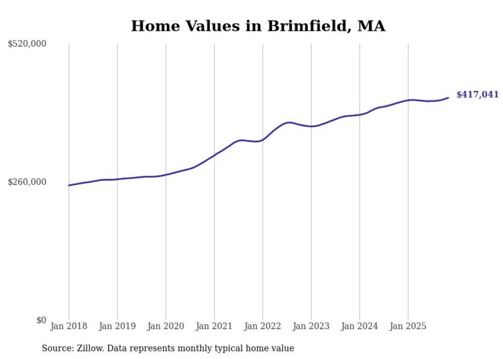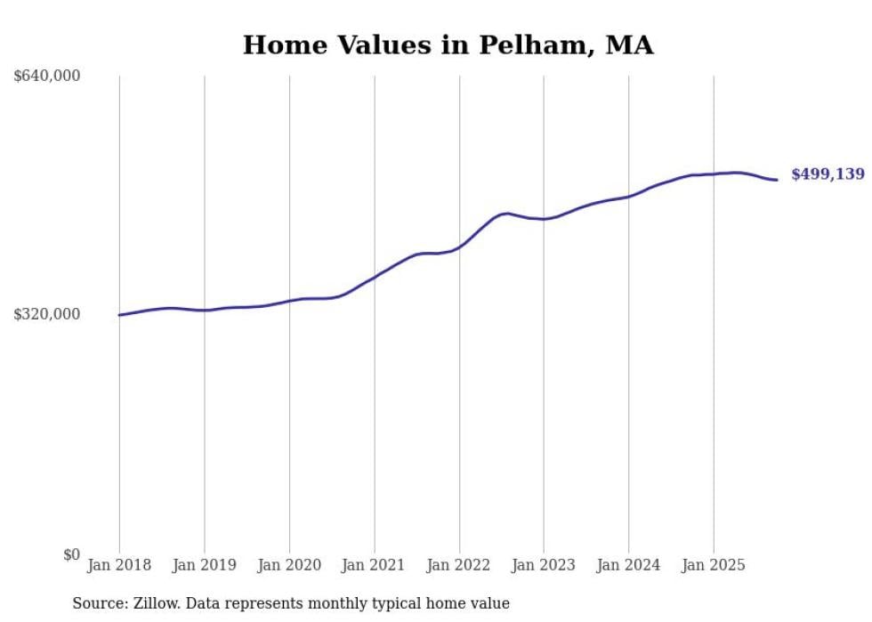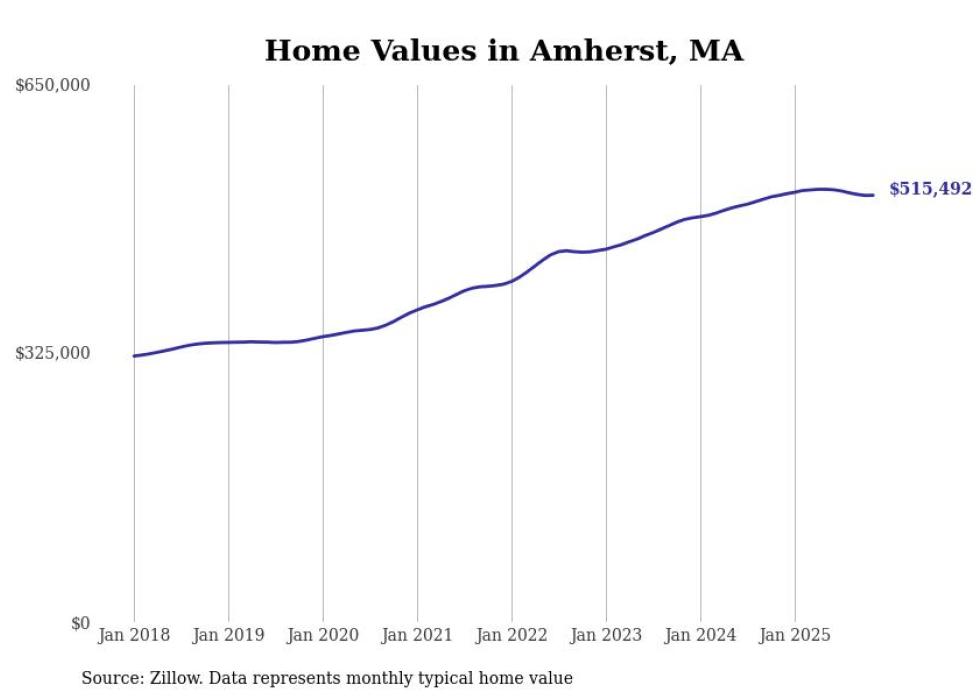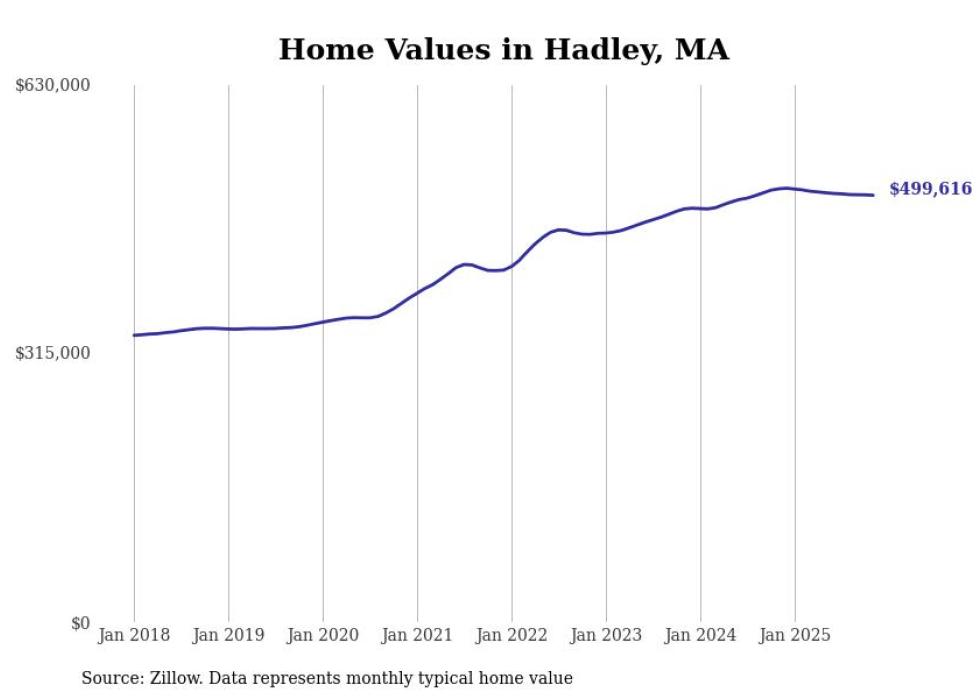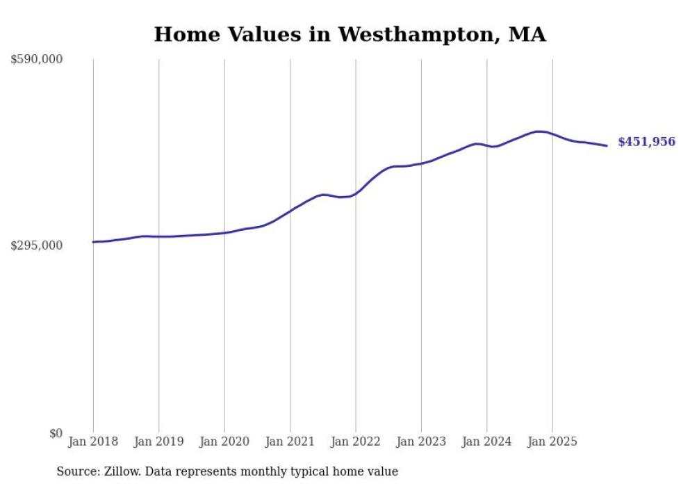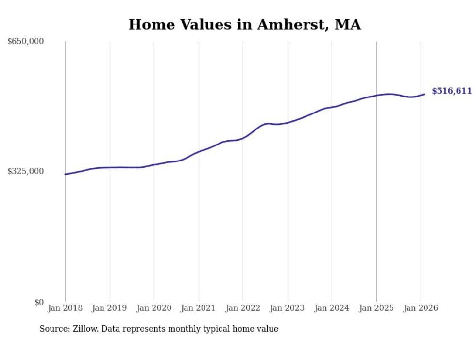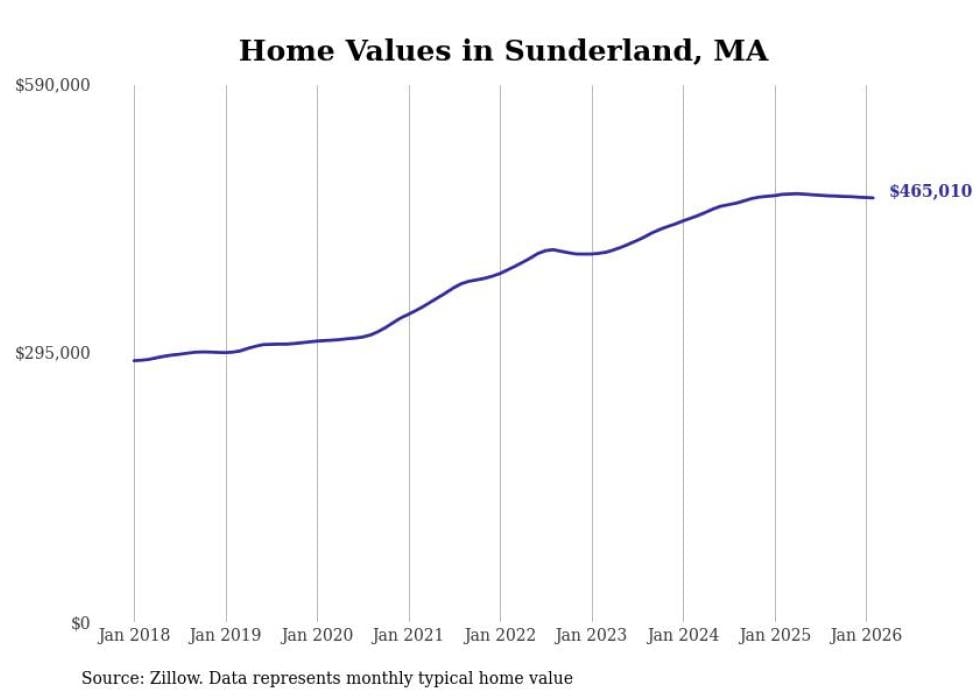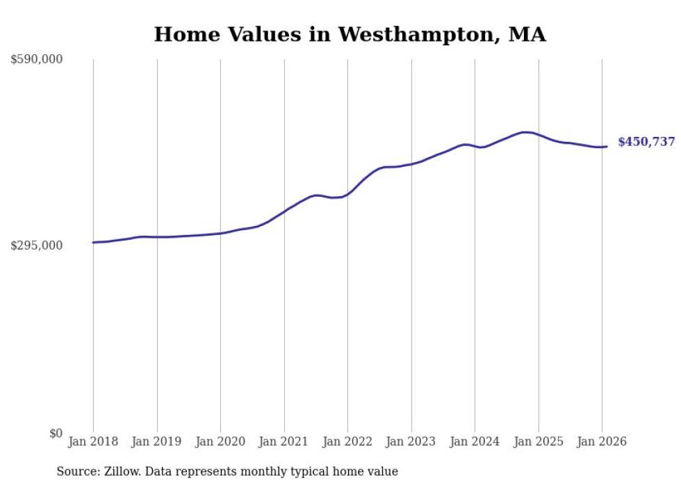 Stacker compiled a list of cities with the most expensive homes in the Springfield, Massachusetts metro area using data from Zillow. Charts show the monthly typical home value since January 2018. Data was available for 71 cities and towns.