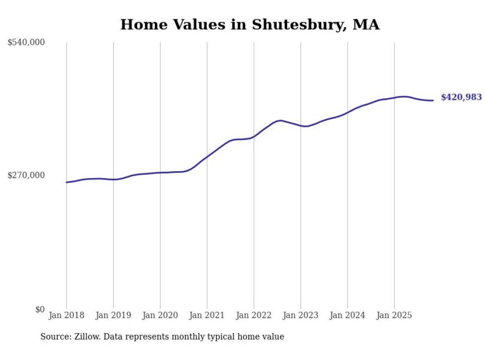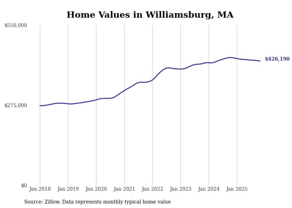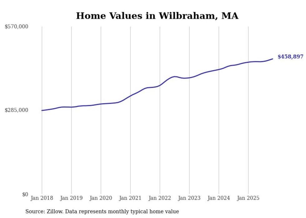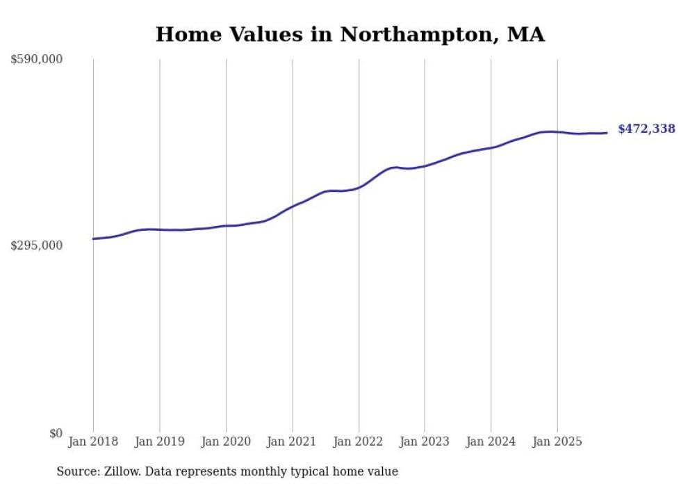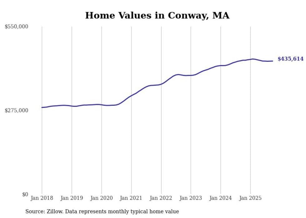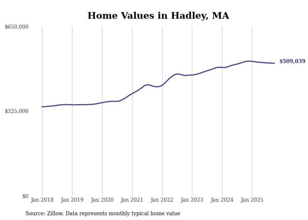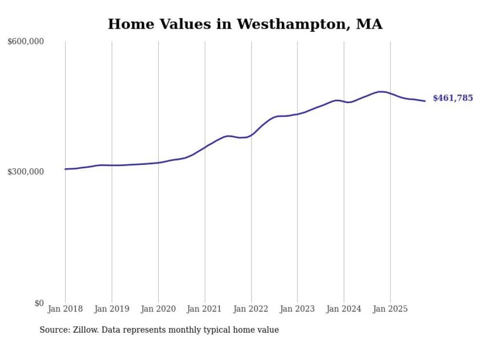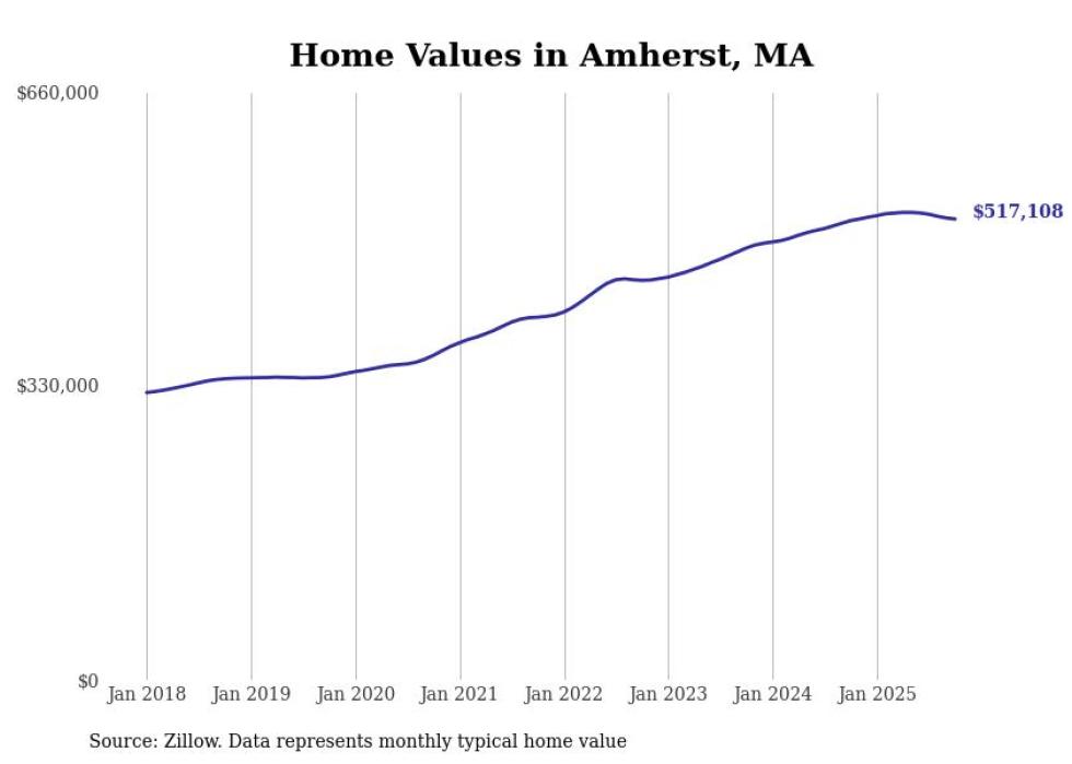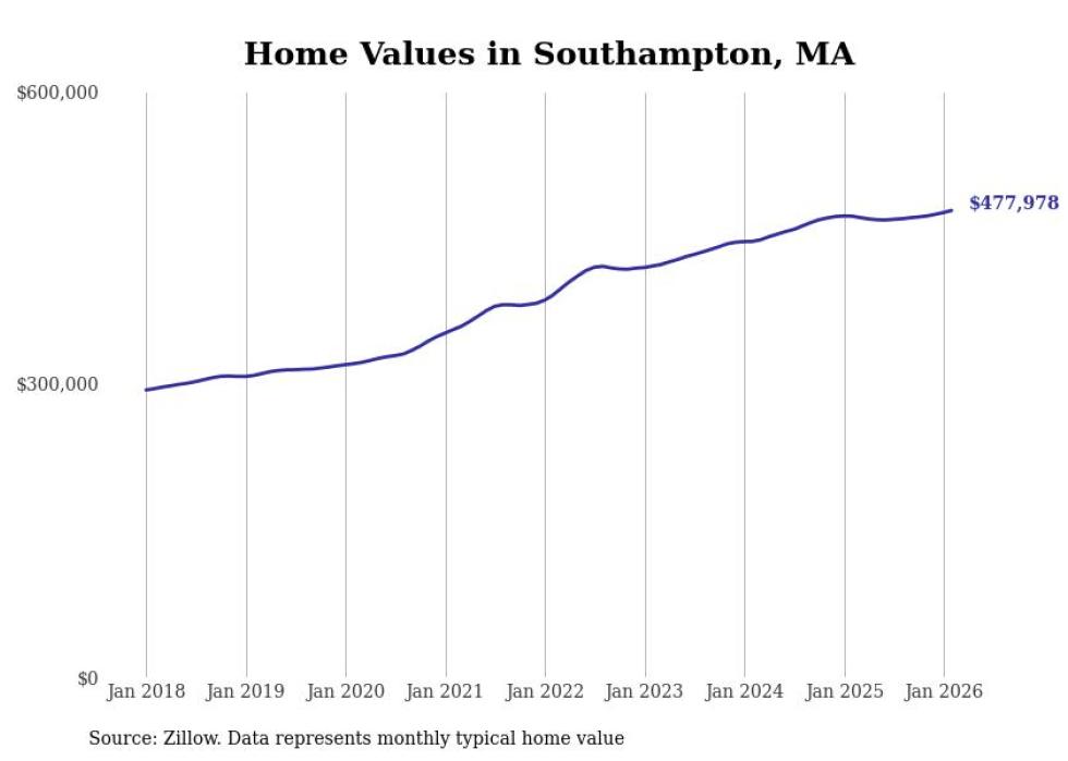 Stacker compiled a list of cities with the most expensive homes in the Springfield, Massachusetts metro area using data from Zillow. Charts show the monthly typical home value since January 2018. Data was available for 71 cities and towns.