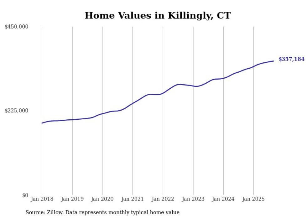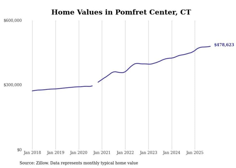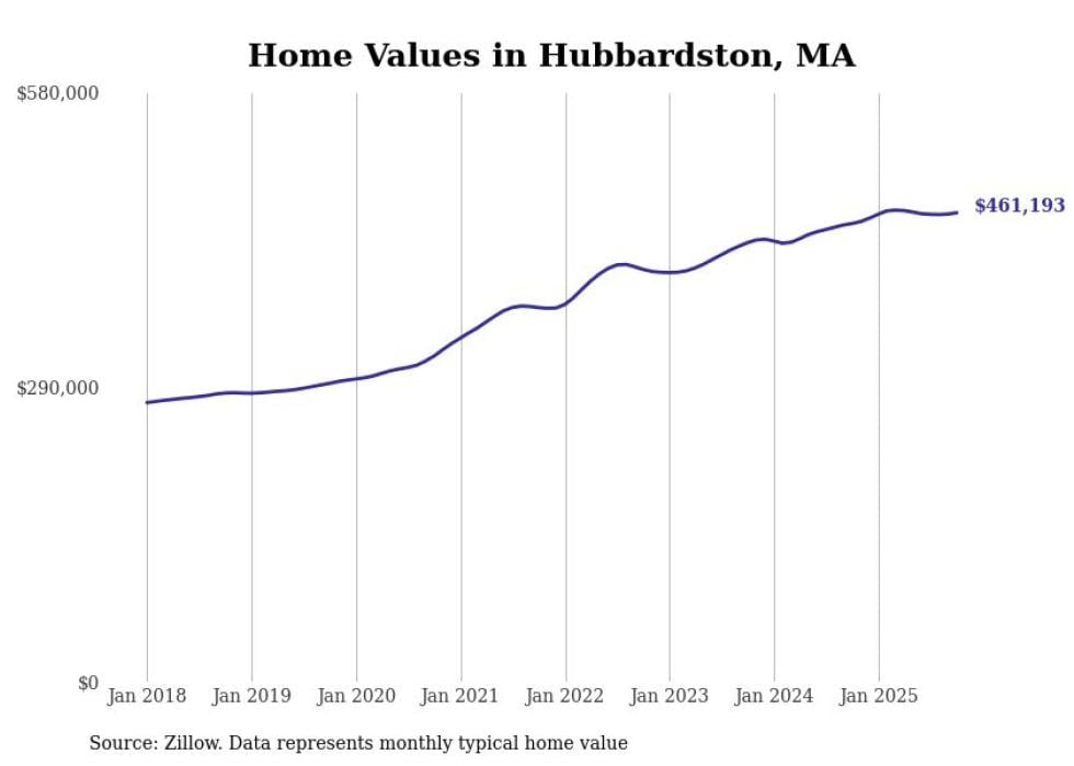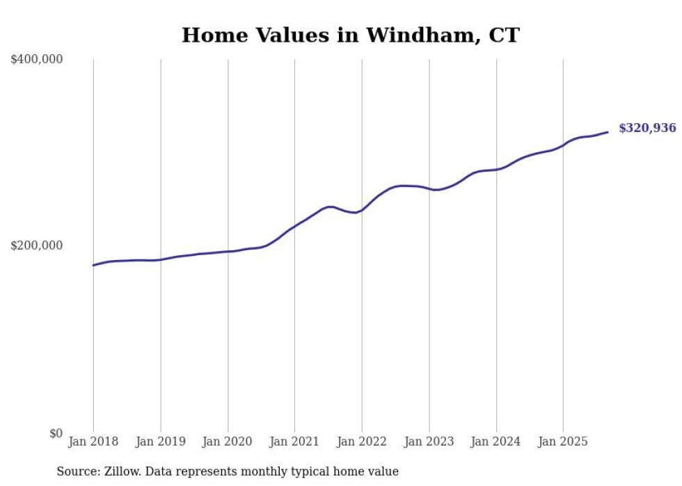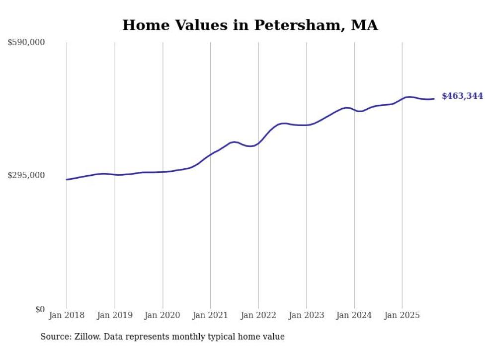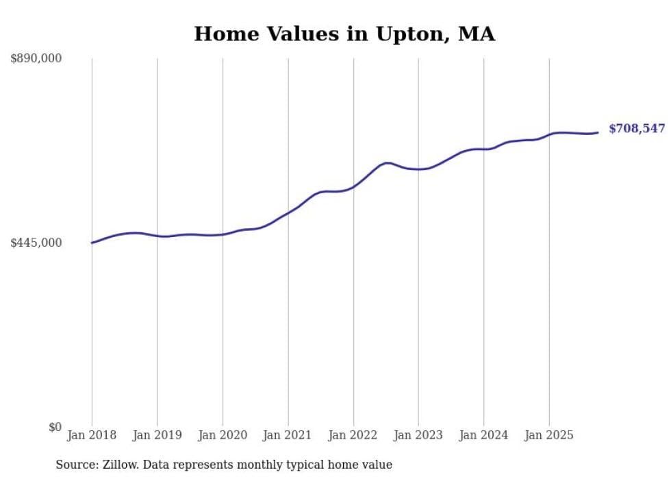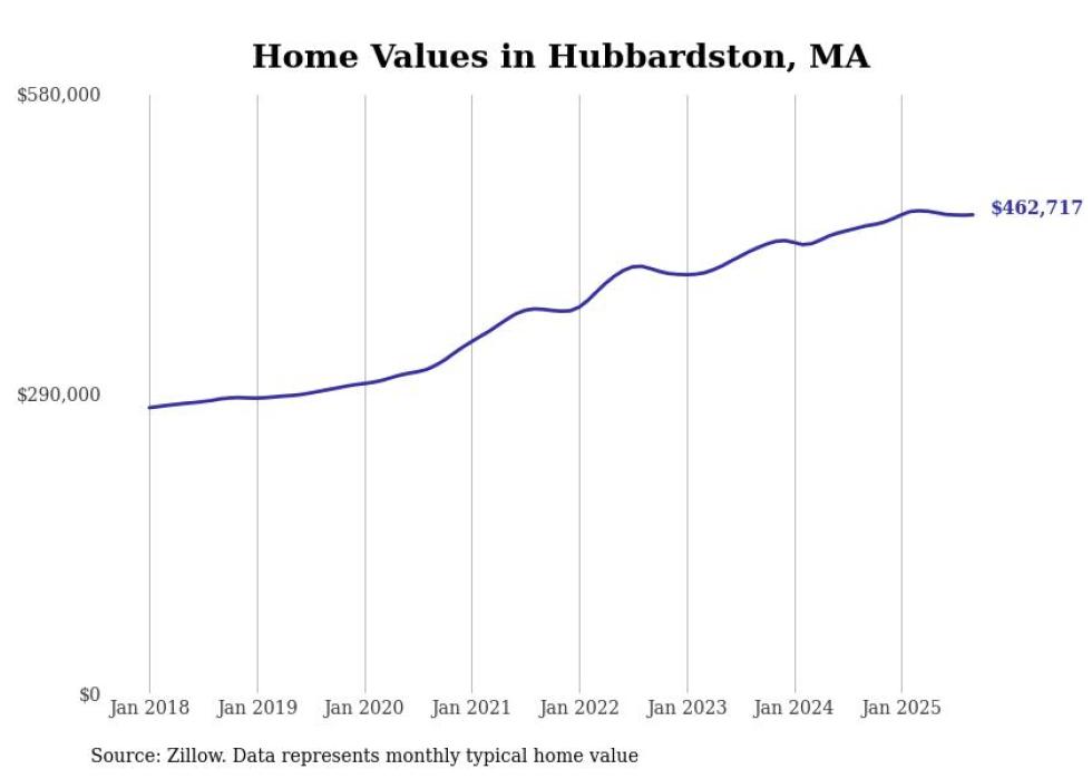 Stacker compiled a list of cities with the most expensive homes in the Worcester, MA-CT metro area using data from Zillow. Charts show the monthly typical home value since January 2018.
