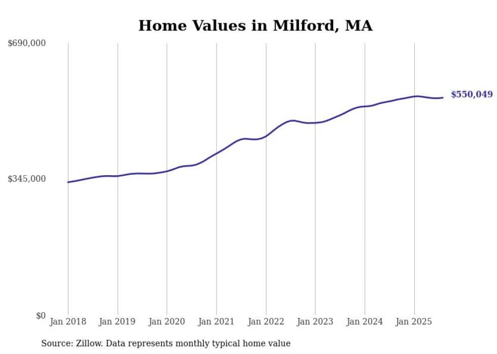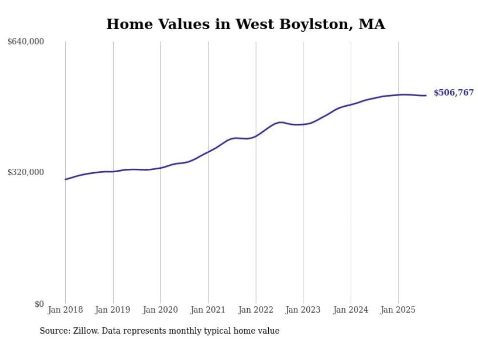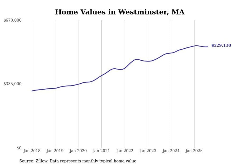 Stacker compiled a list of cities with the most expensive homes in the Worcester metro area using data from Zillow. Charts show the monthly typical home value since January 2018. Data was available for 79 cities and towns.