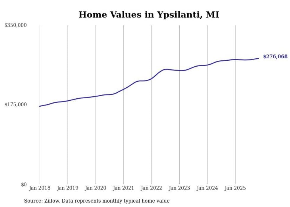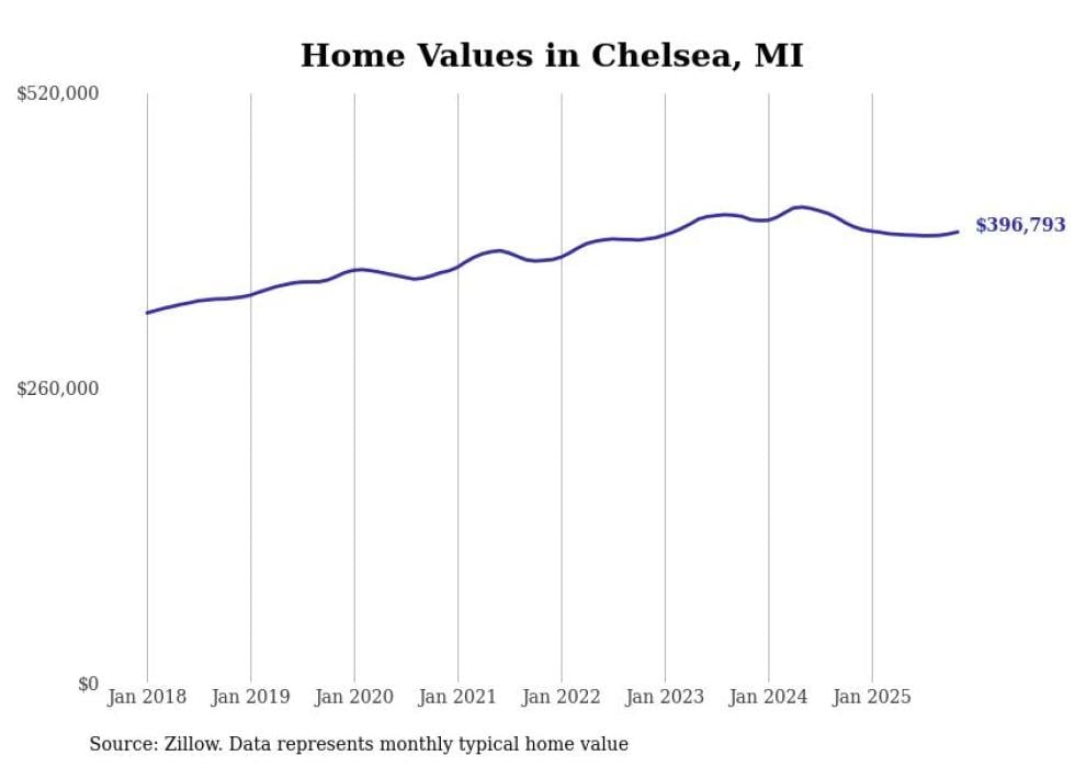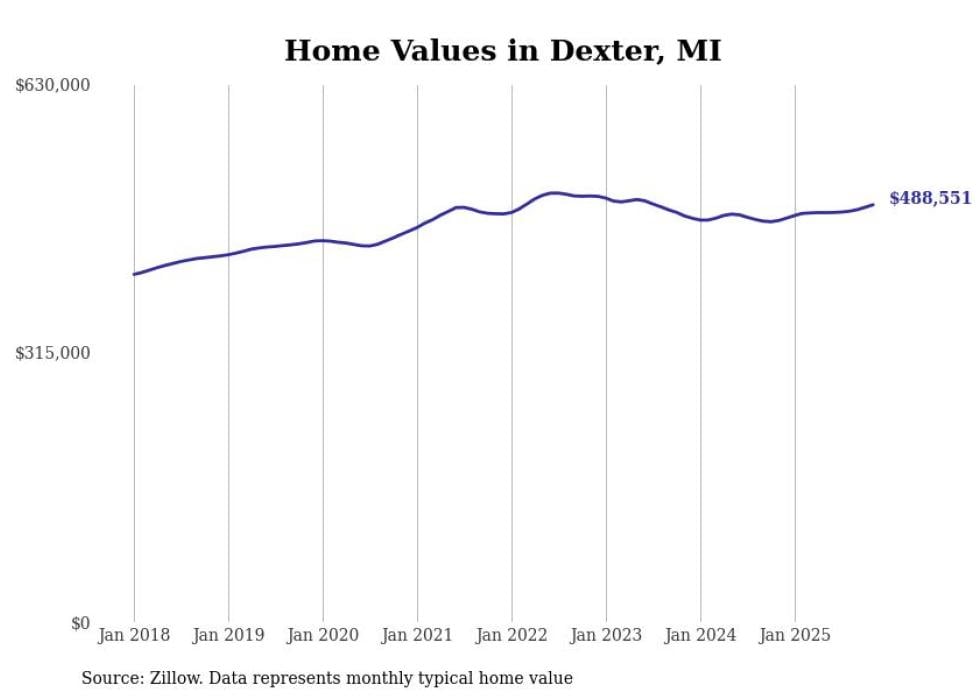 Stacker compiled a list of cities with the most expensive homes in the Ann Arbor metro area using data from Zillow. Charts show the monthly typical home value since January 2018. All 9 cities and towns with data available were included in the list.