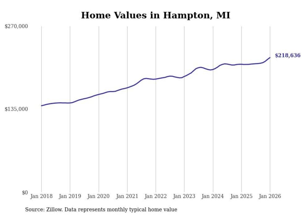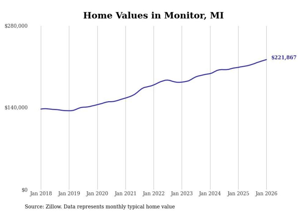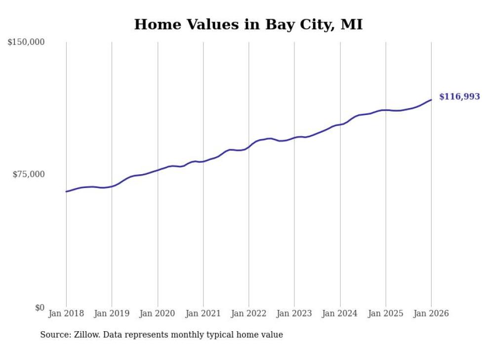 Stacker compiled a list of cities with the most expensive homes in the Bay City, MI metro area using data from Zillow. Charts show the monthly typical home value since January 2018.