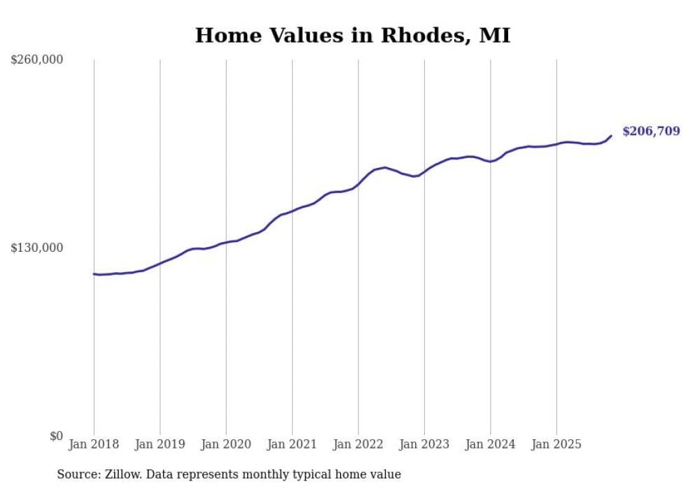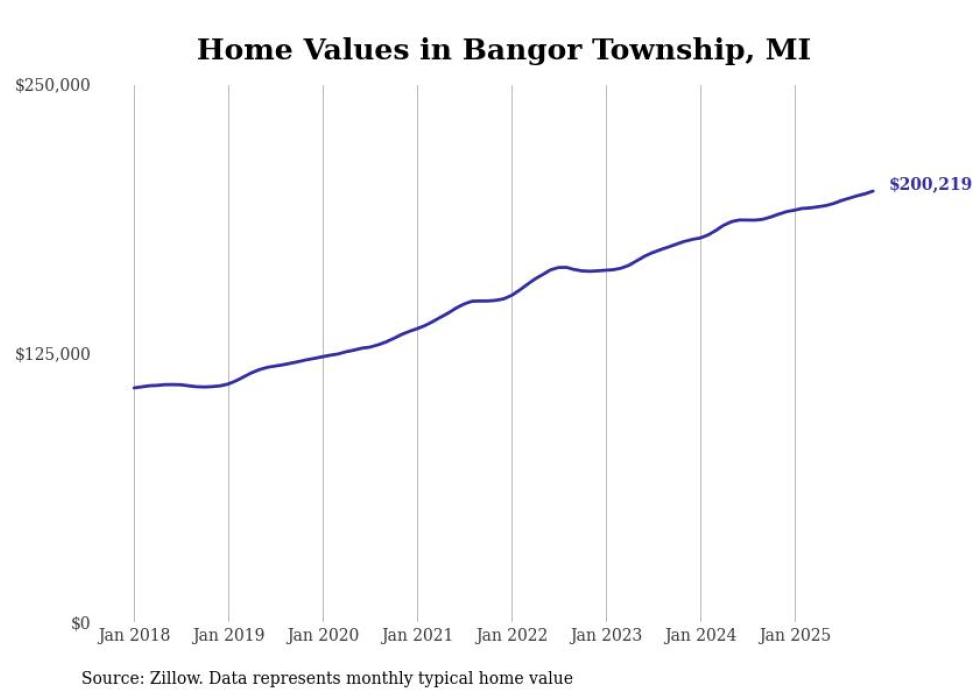Stacker compiled a list of cities with the most expensive homes in the Bay City metro area using data from Zillow. Charts show the monthly typical home value since January 2018. All 11 cities and towns with data available were included in the list.