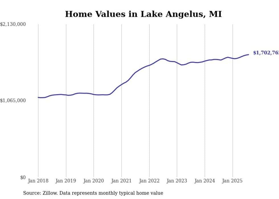 Stacker compiled a list of cities with the most expensive homes in Michigan using data from Zillow. Cities are ranked by the Zillow Home Values Index for all homes as of August 2025. The charts in this story were created automatically using Matplotlib.