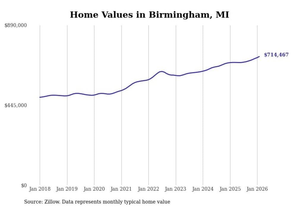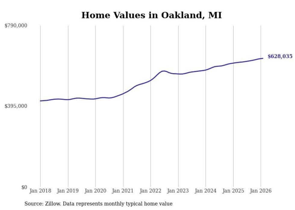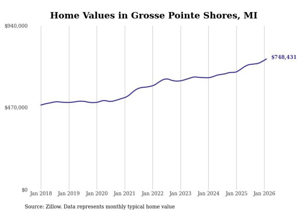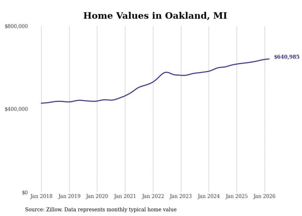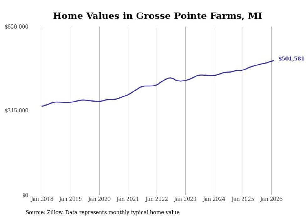 Stacker compiled a list of cities with the most expensive homes in the Detroit-Warren-Dearborn, MI metro area using data from Zillow. Charts show the monthly typical home value since January 2018.