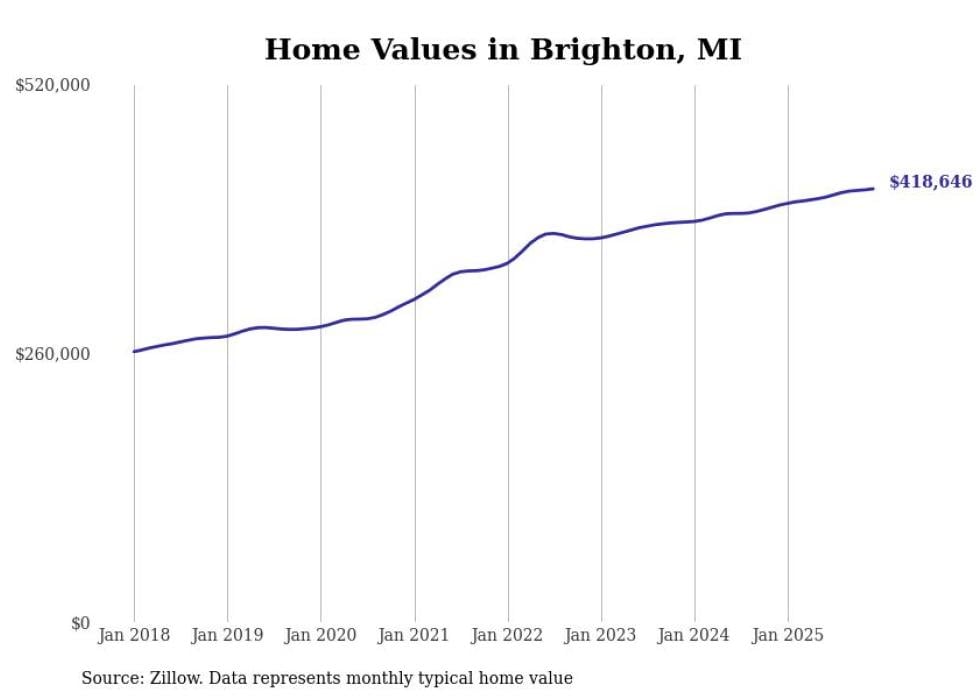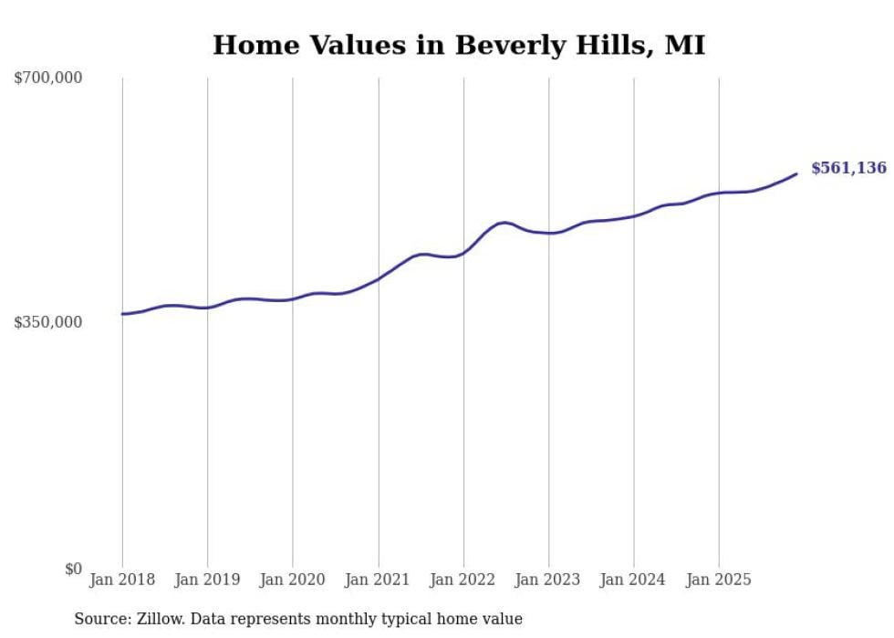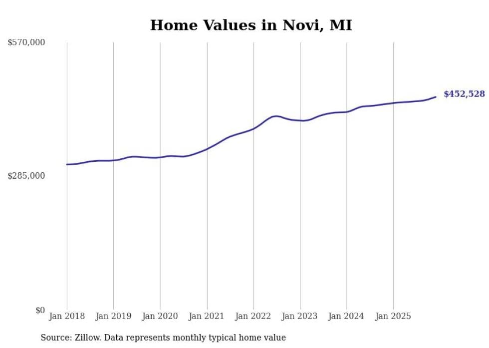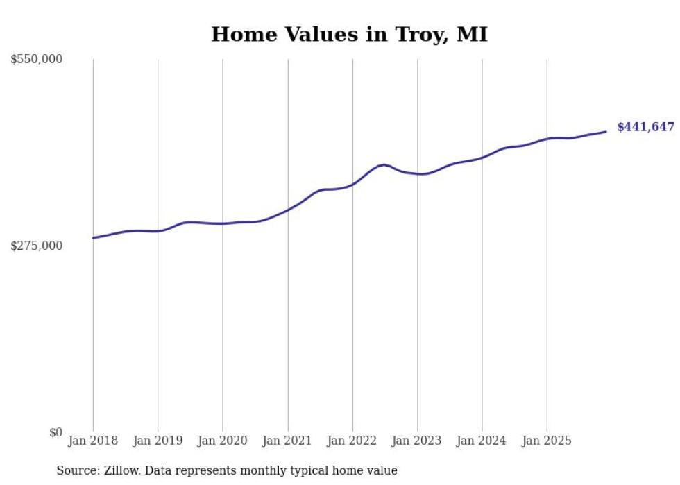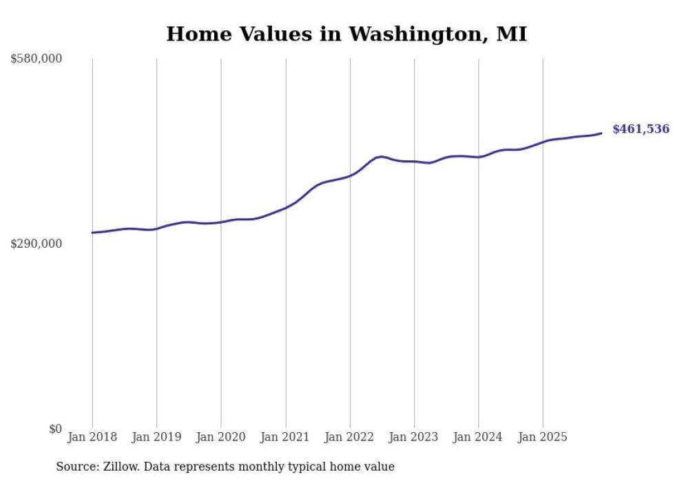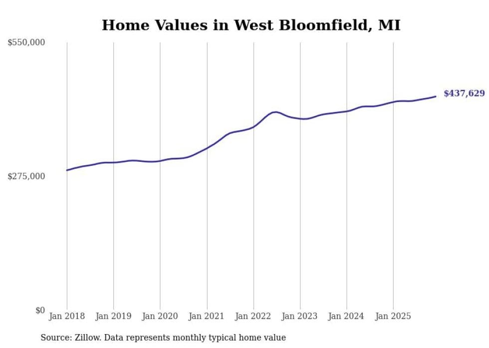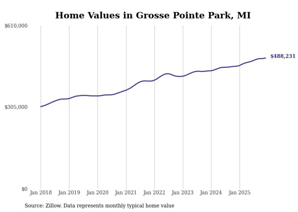 Stacker compiled a list of cities with the most expensive homes in the Detroit metro area using data from Zillow. Charts show the monthly typical home value since January 2018. Data was available for 150 cities and towns.