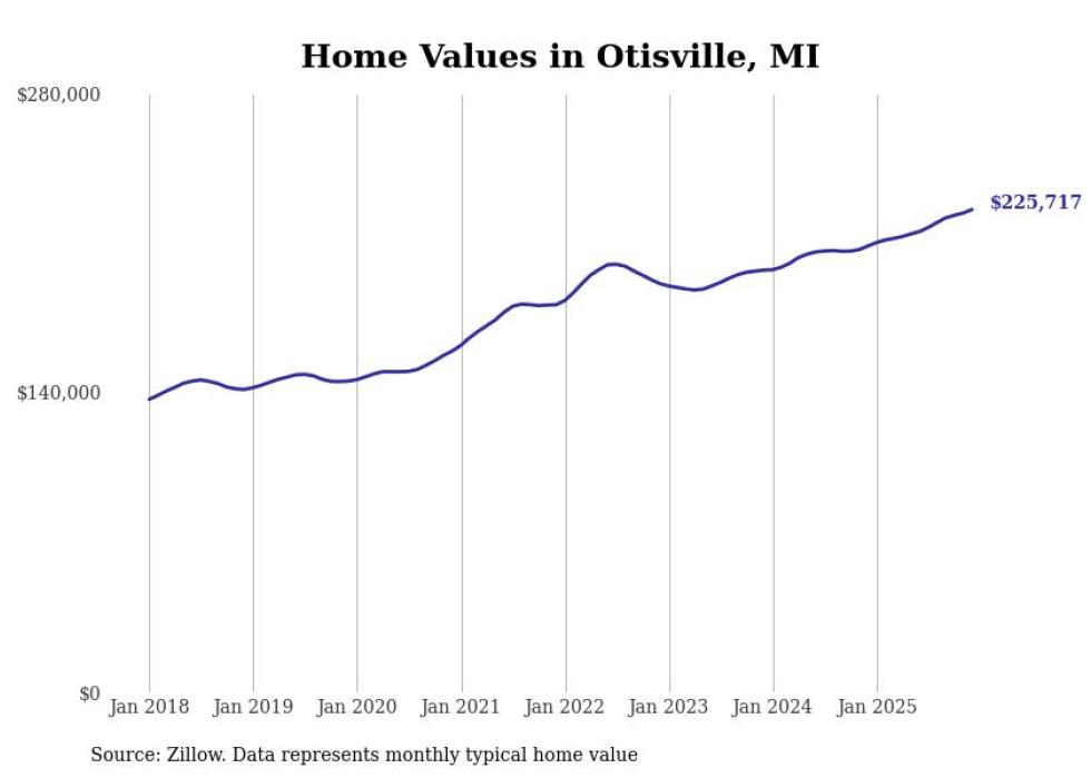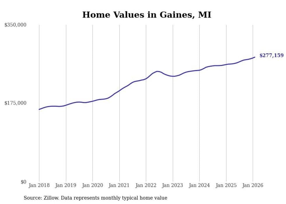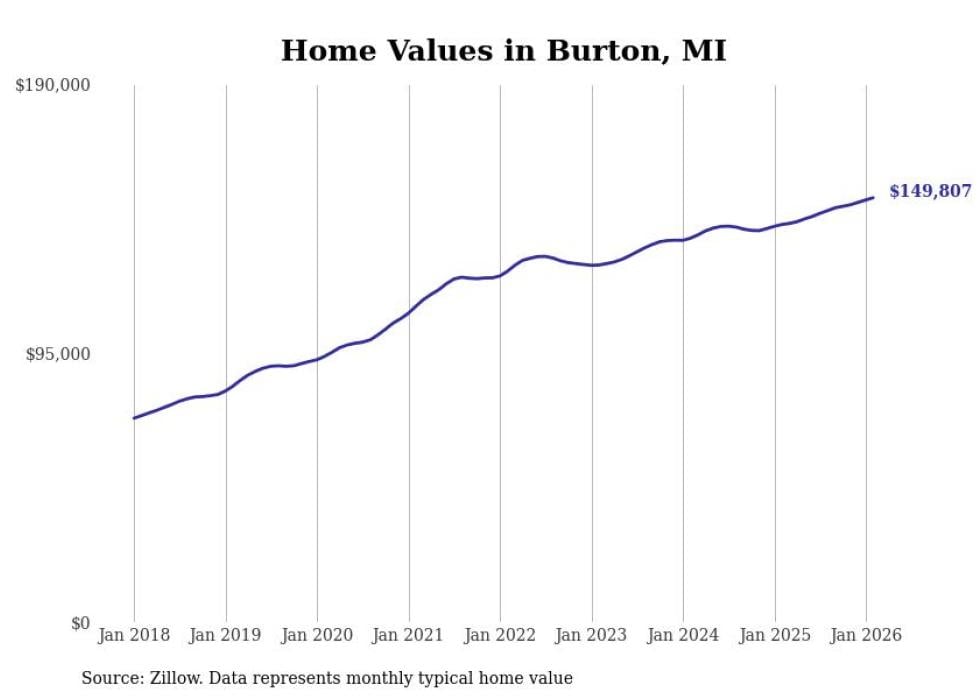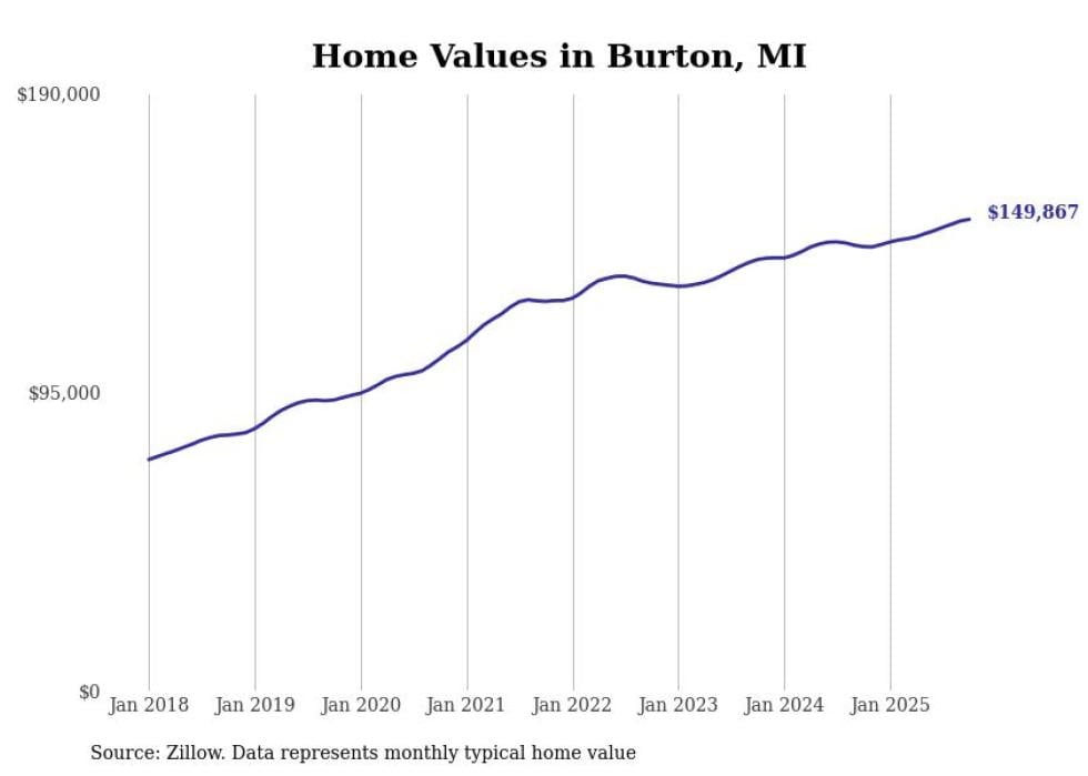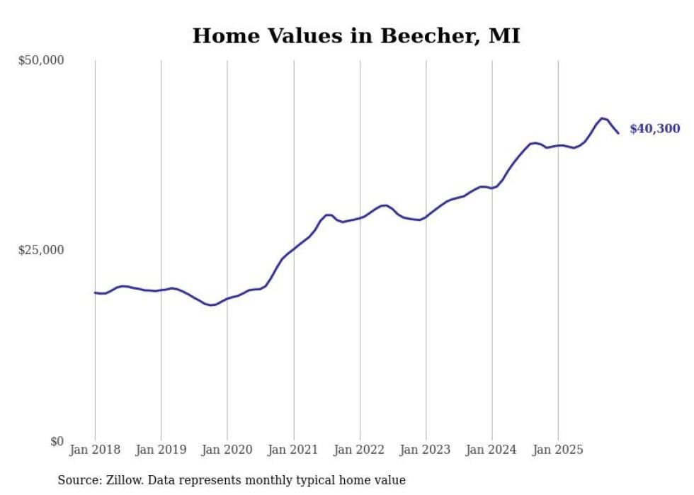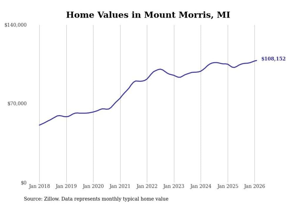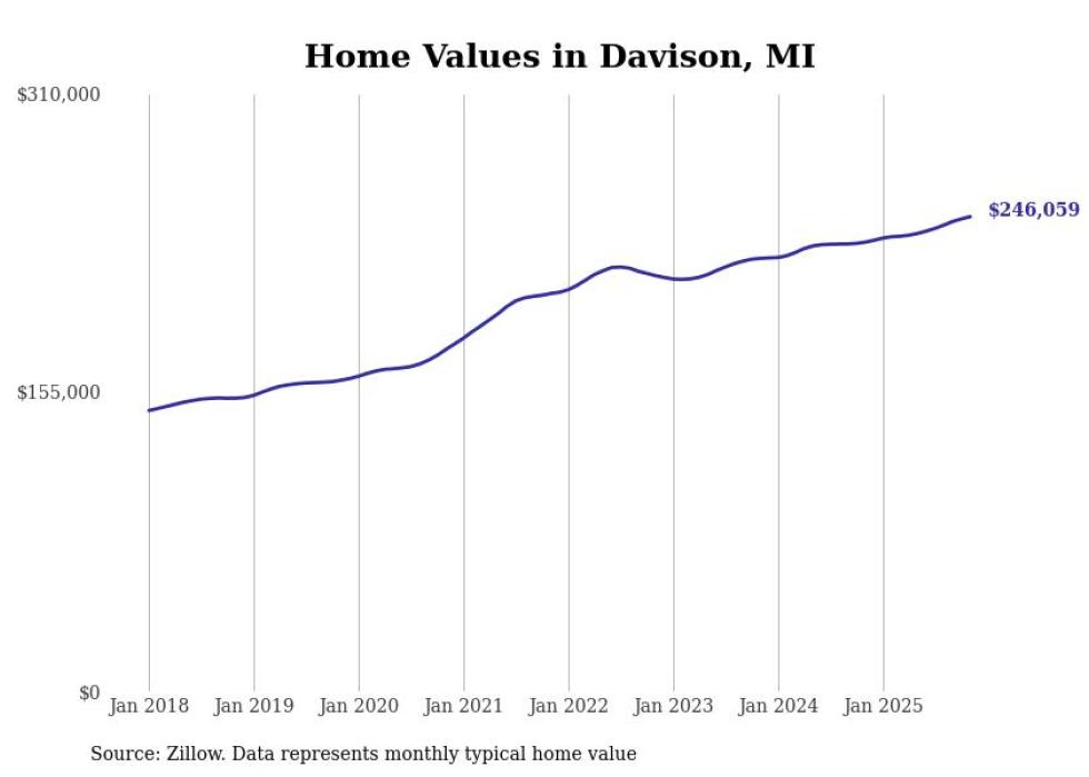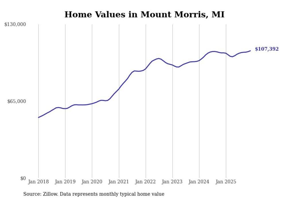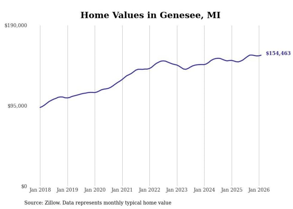 Stacker compiled a list of cities with the most expensive homes in the Flint, MI metro area using data from Zillow. Charts show the monthly typical home value since January 2018.