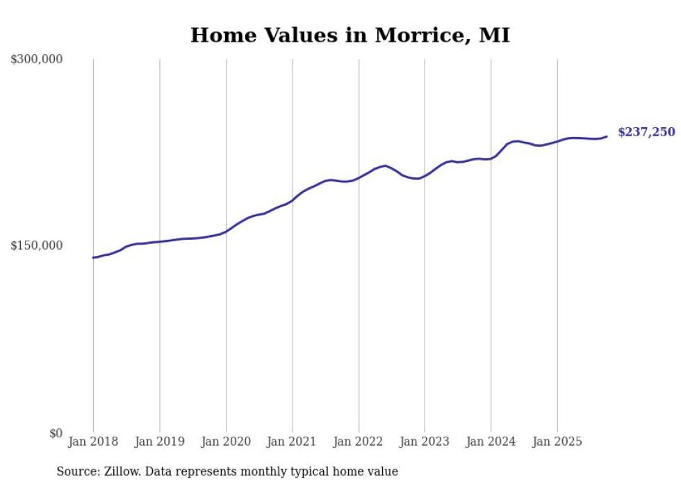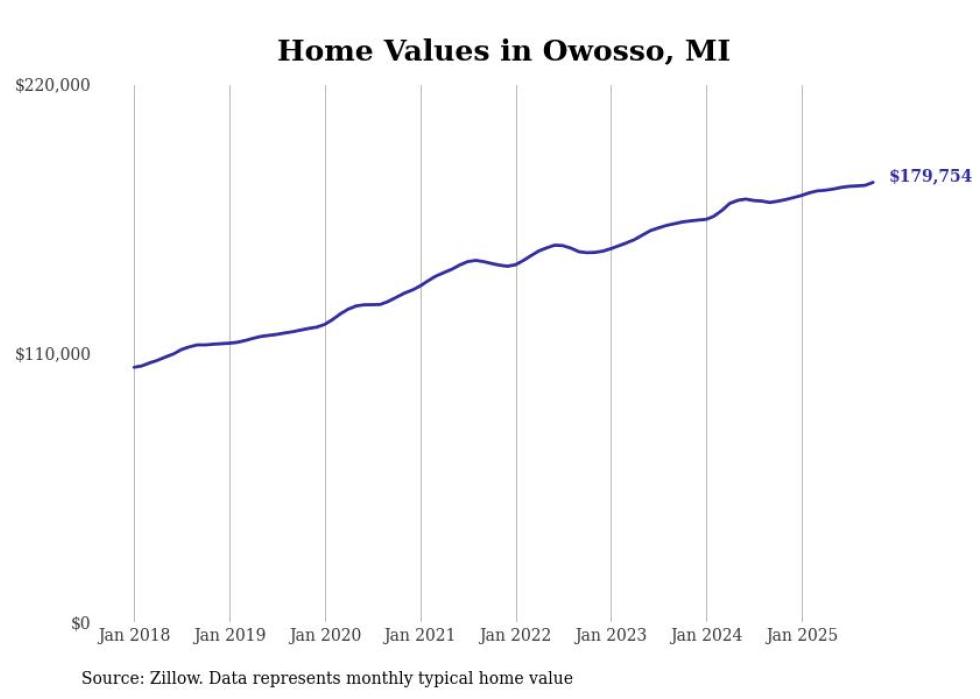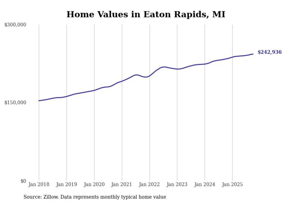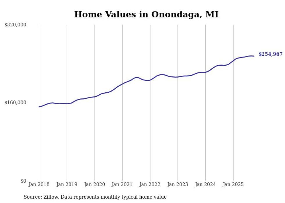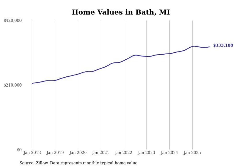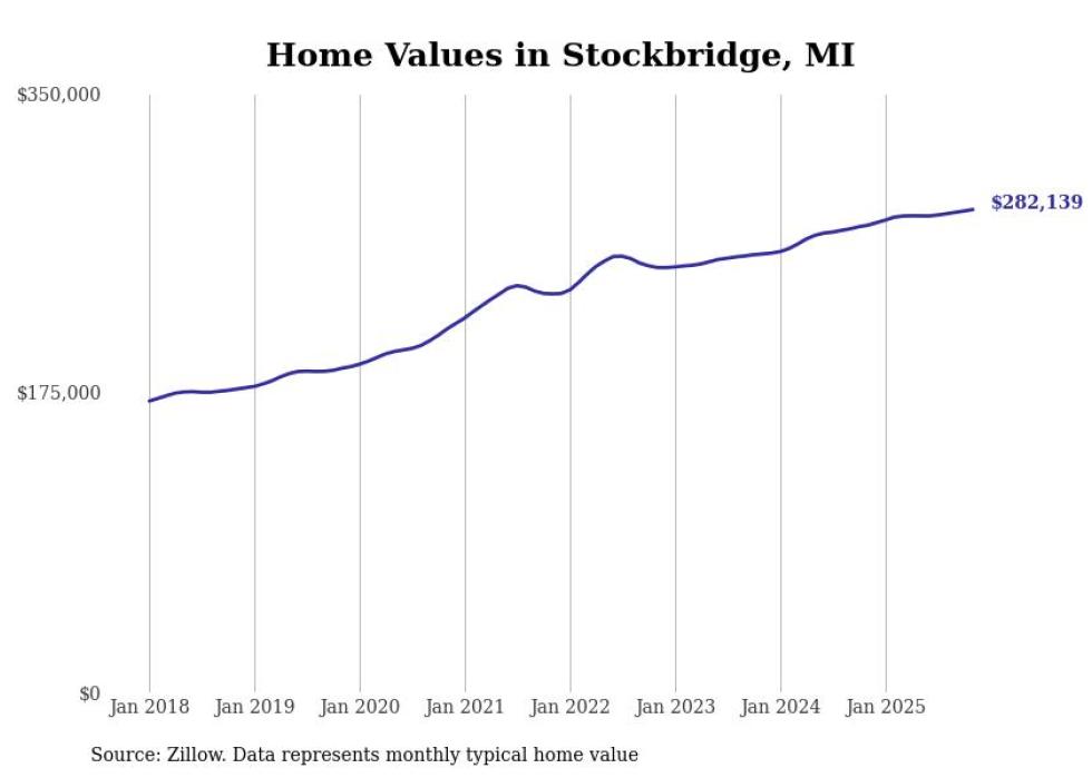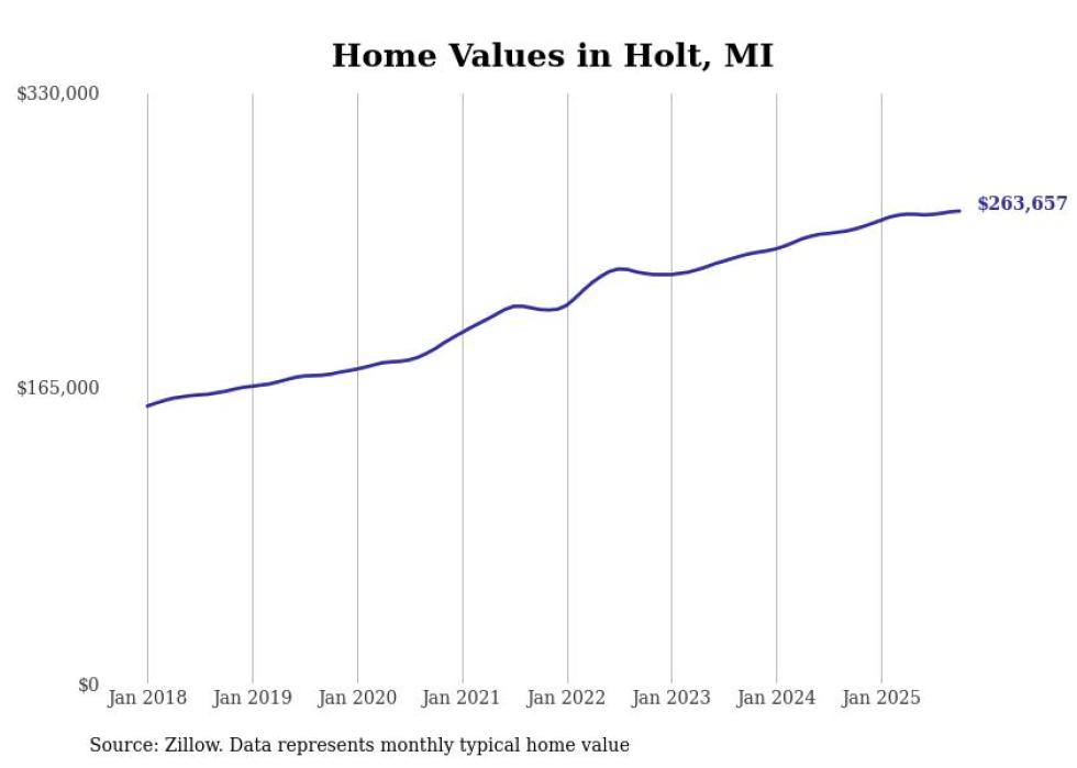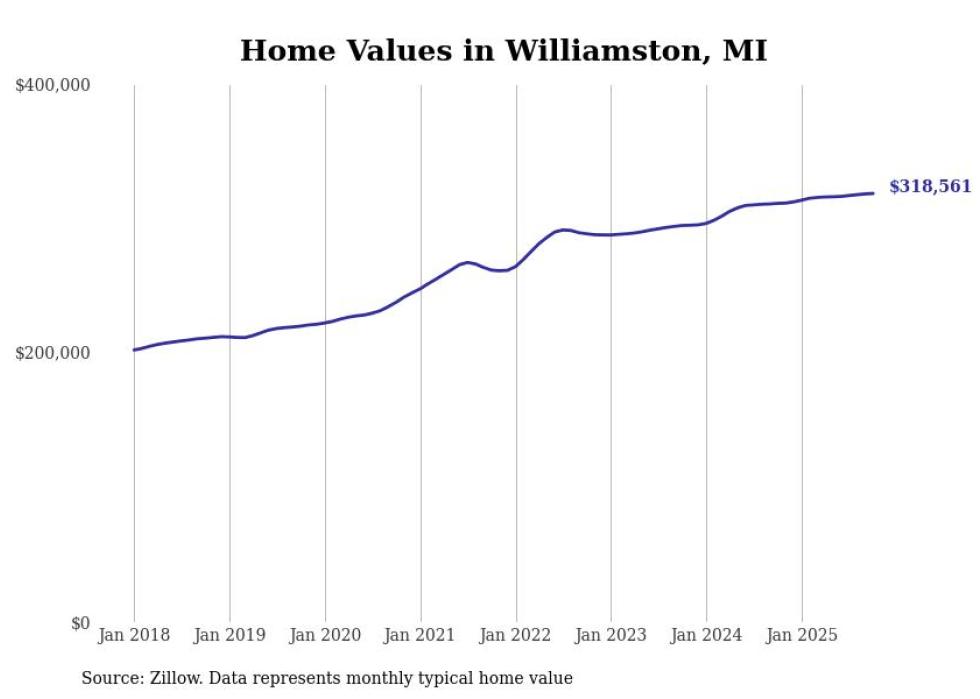 Stacker compiled a list of cities with the most expensive homes in the Lansing-East Lansing, MI metro area using data from Zillow. Charts show the monthly typical home value since January 2018.