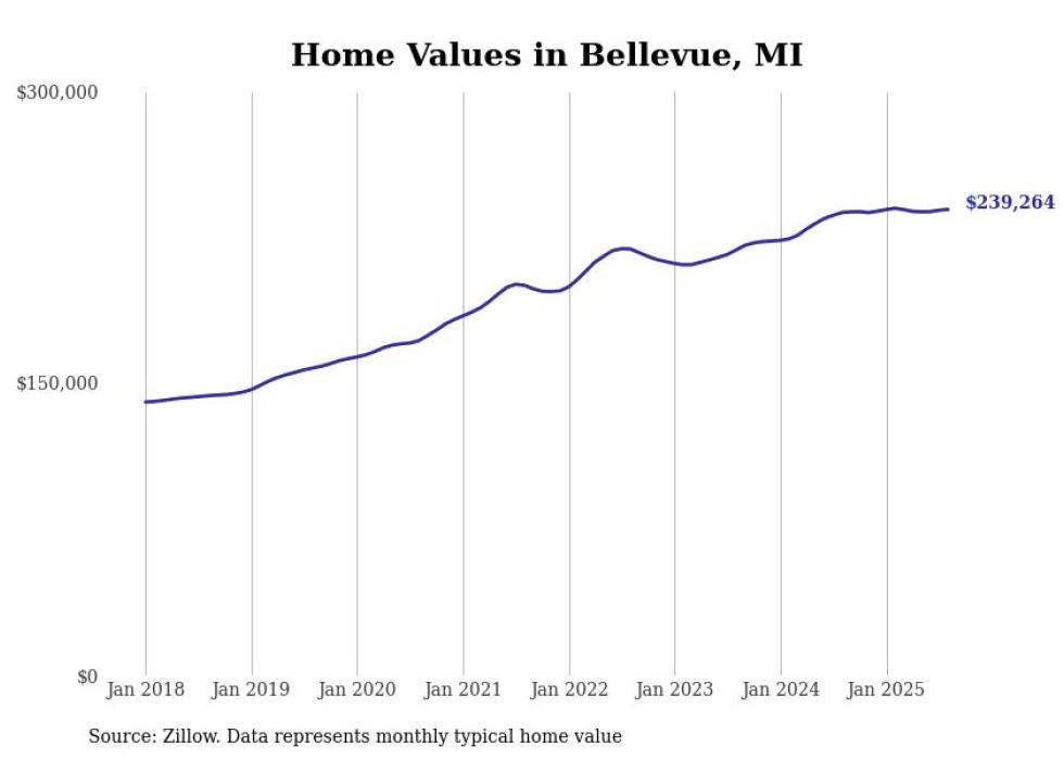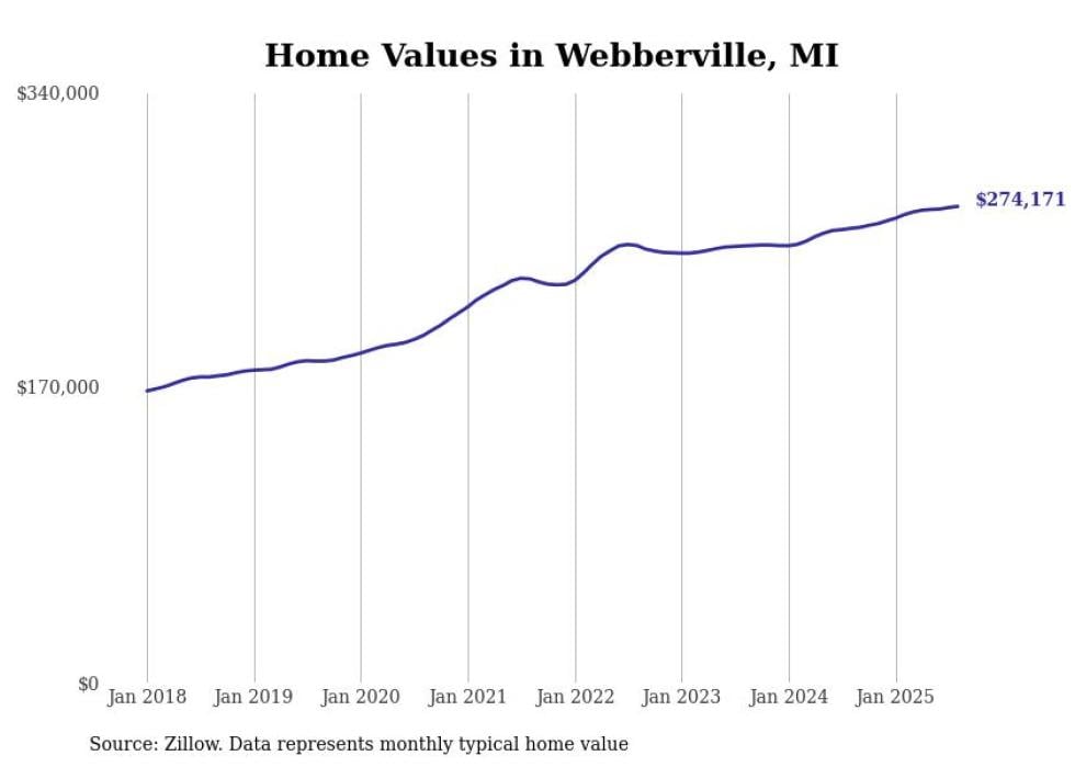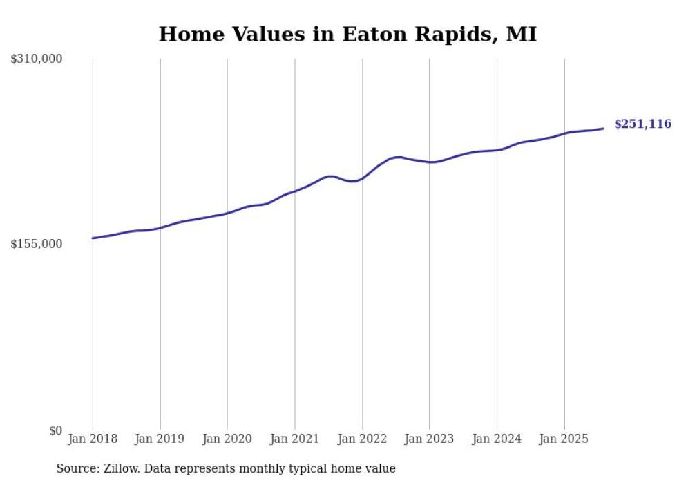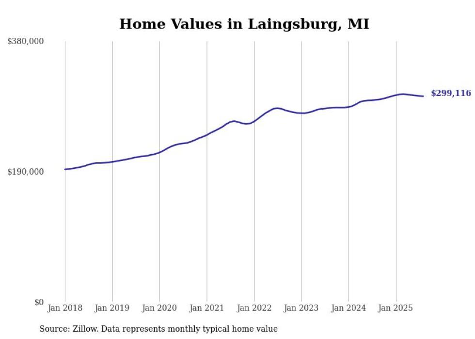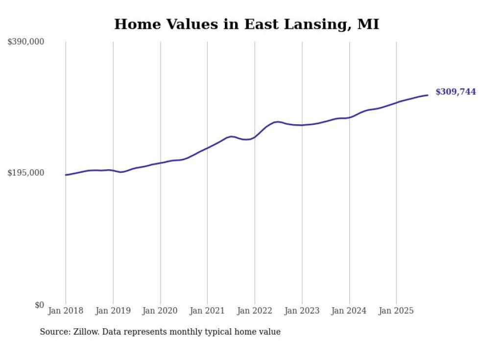 Stacker compiled a list of cities with the most expensive homes in the Lansing metro area using data from Zillow. Charts show the monthly typical home value since January 2018. Data was available for 44 cities and towns.