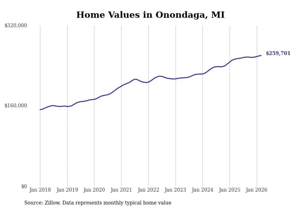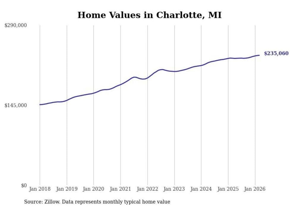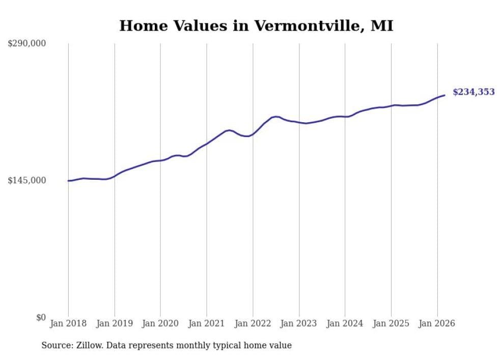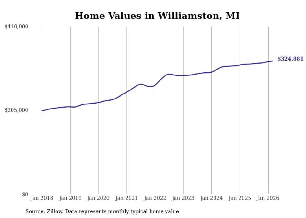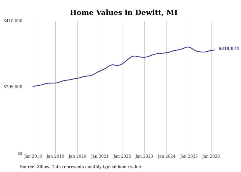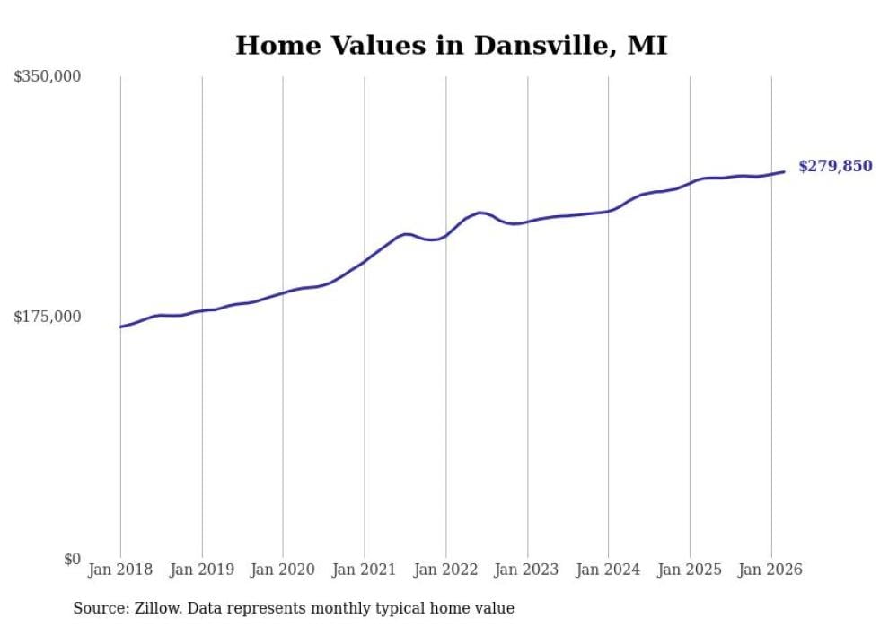 Stacker compiled a list of cities with the most expensive homes in the Lansing metro area using data from Zillow. Charts show the monthly typical home value since January 2018. Data was available for 43 cities and towns.