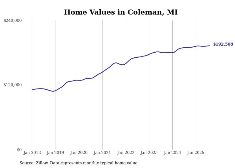 Cities with the fastest-growing home prices in the Midland, Michigan metro area