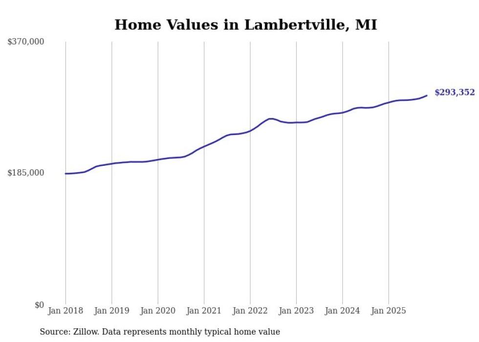 Stacker compiled a list of cities with the most expensive homes in the Monroe, MI metro area using data from Zillow. Charts show the monthly typical home value since January 2018.