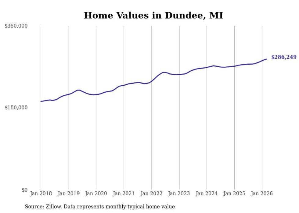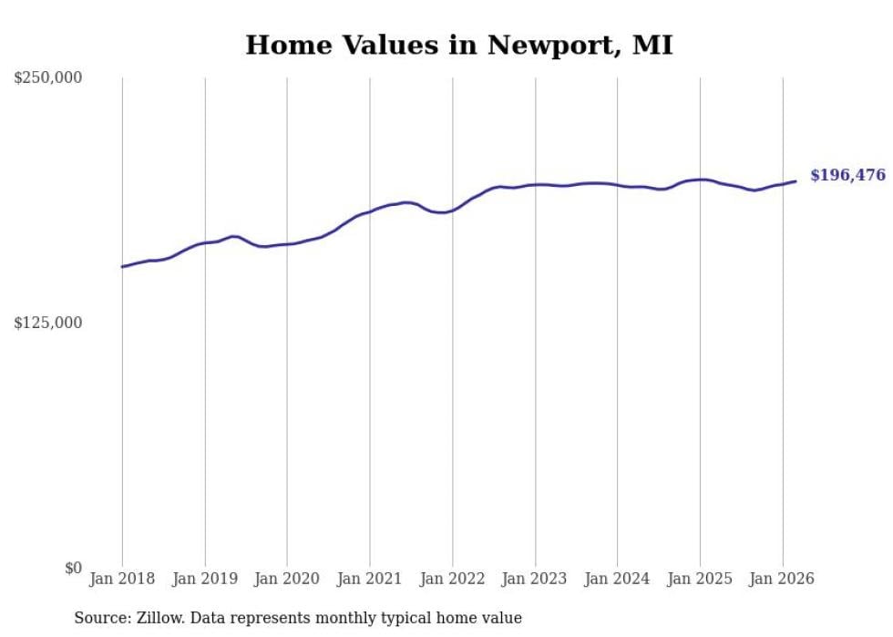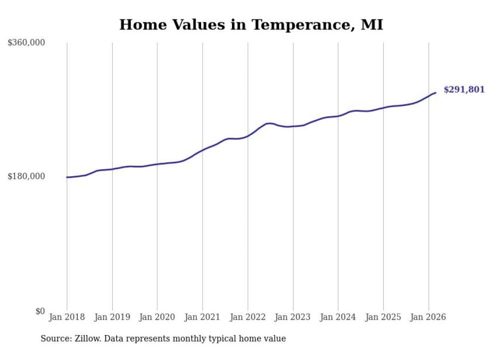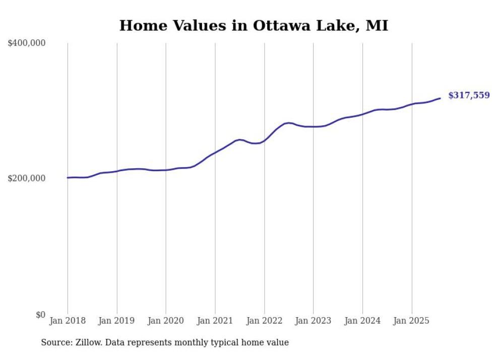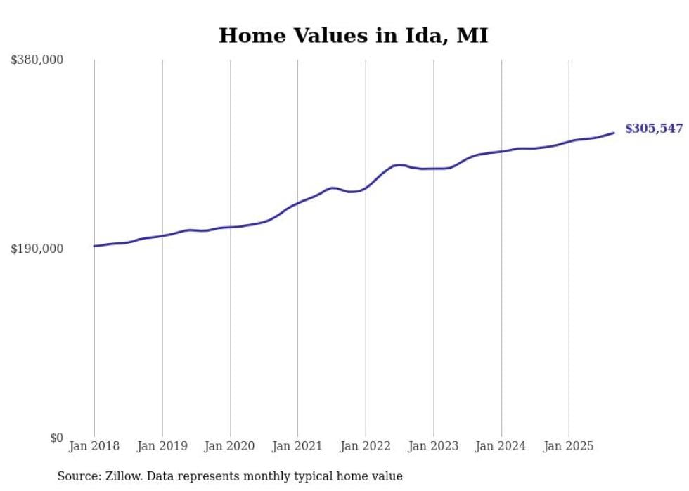Stacker compiled a list of cities with the most expensive homes in the Monroe, Michigan metro area using data from Zillow. Charts show the monthly typical home value since January 2018. All 14 cities and towns with data available were included in the list.