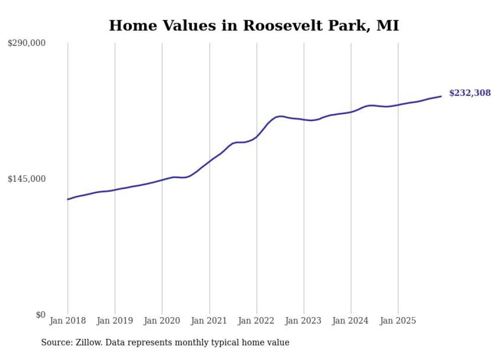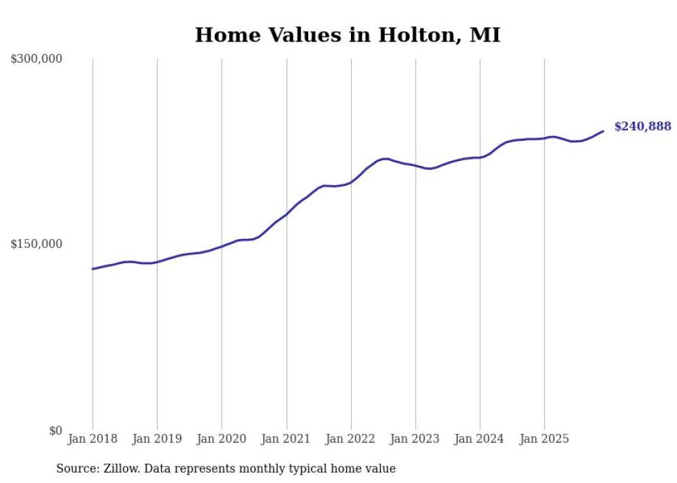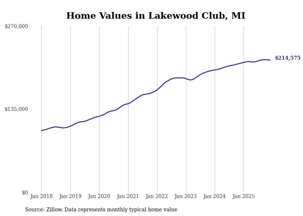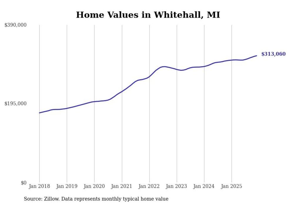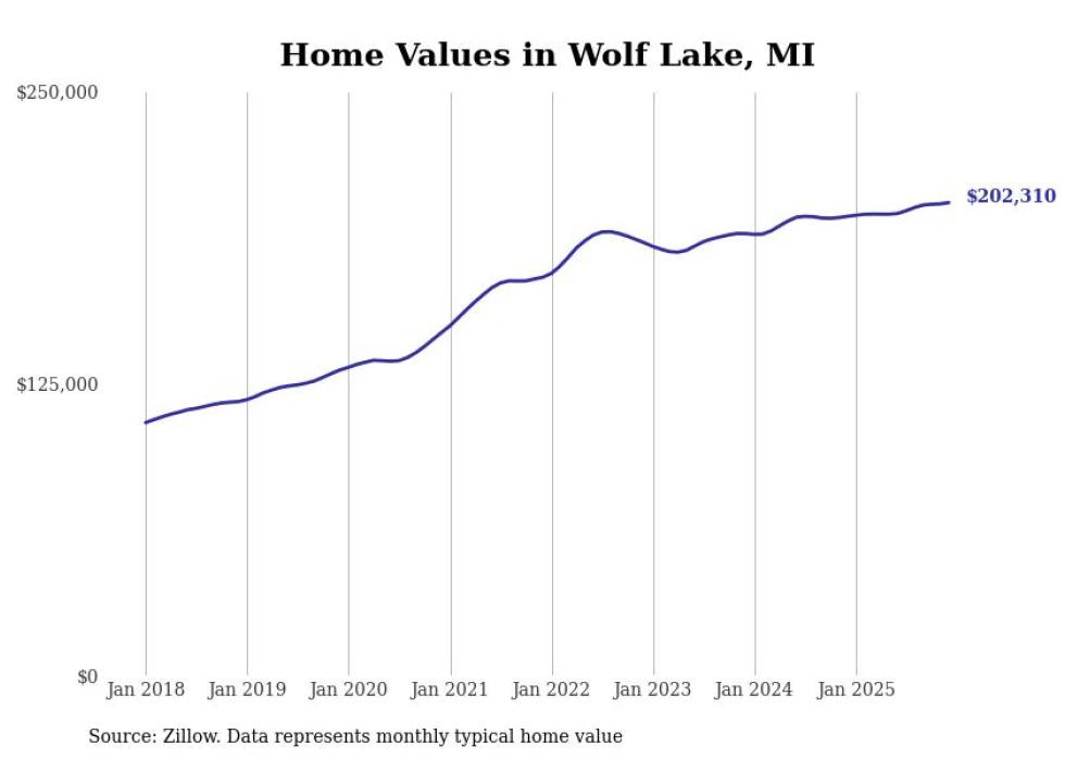 Stacker compiled a list of cities with the most expensive homes in the Muskegon metro area using data from Zillow. Charts show the monthly typical home value since January 2018. All 15 cities and towns with data available were included in the list.