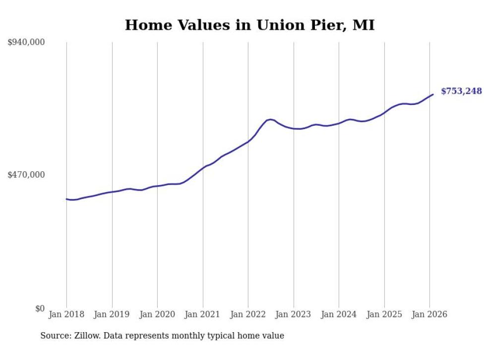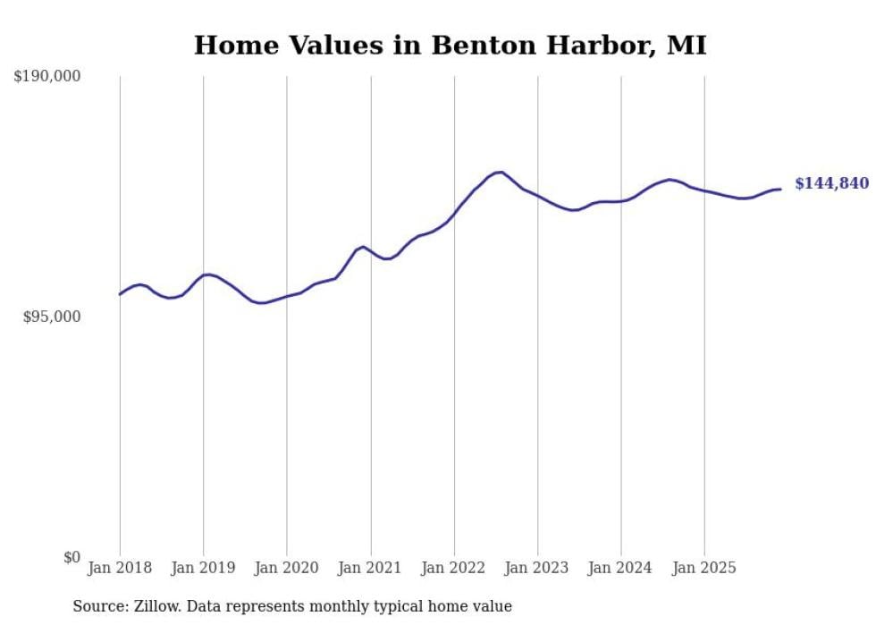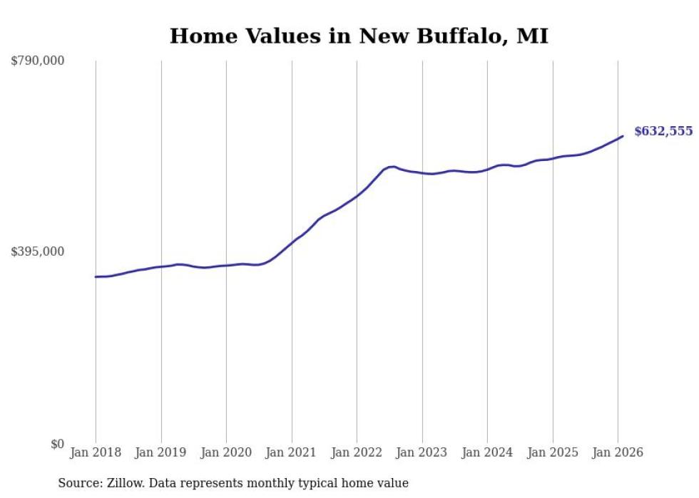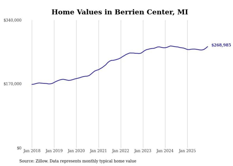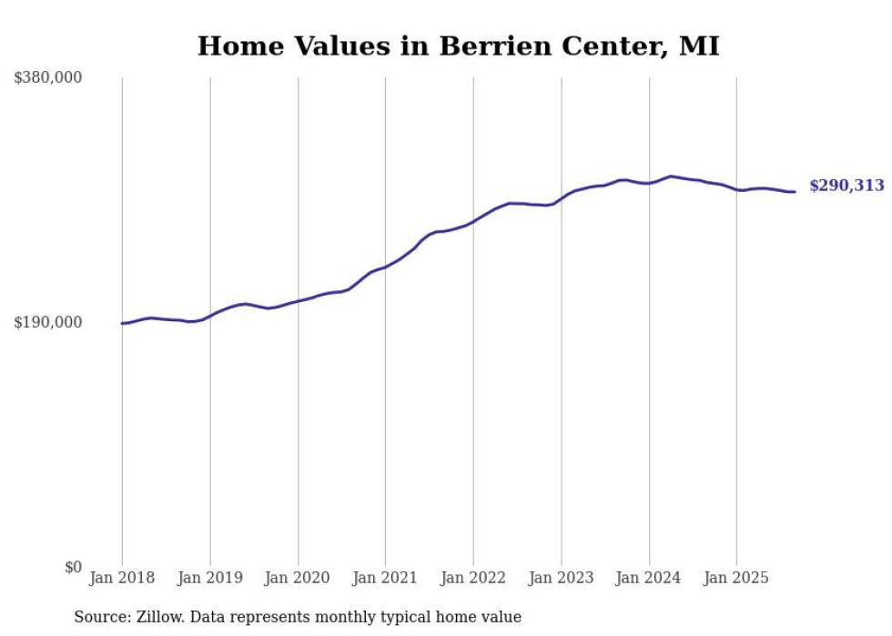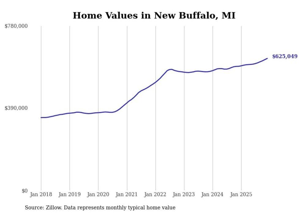 Stacker compiled a list of cities with the most expensive homes in the Niles, MI metro area using data from Zillow. Charts show the monthly typical home value since January 2018.