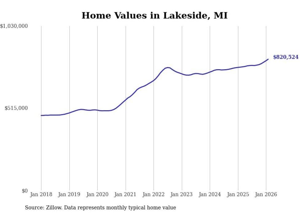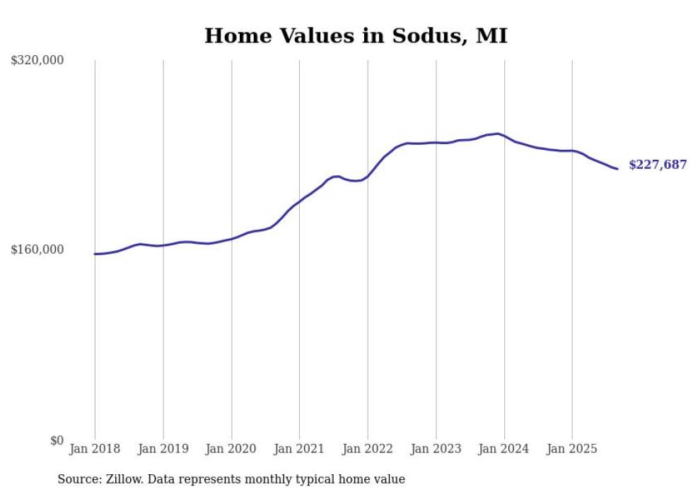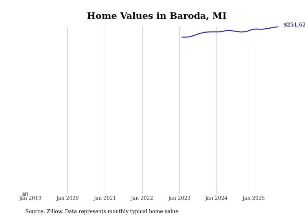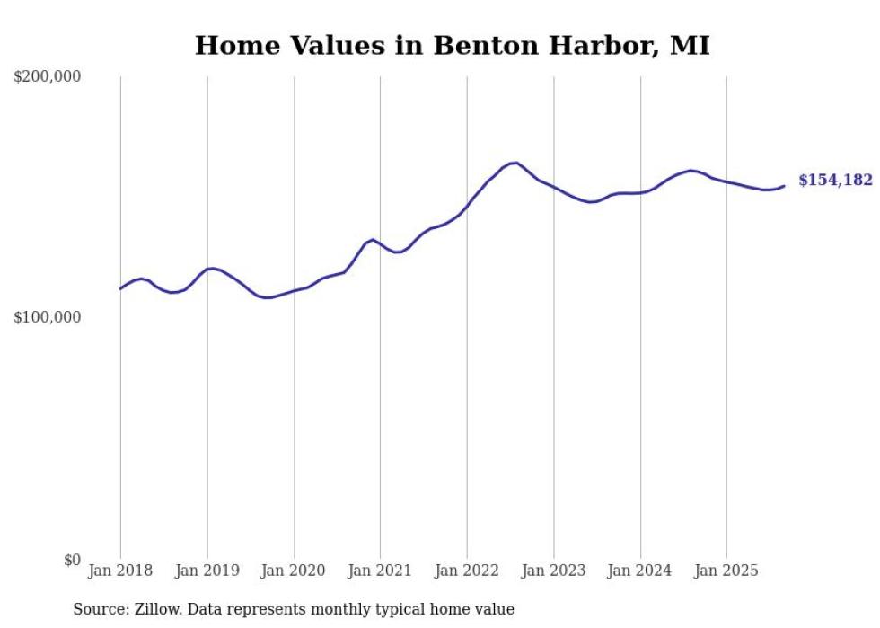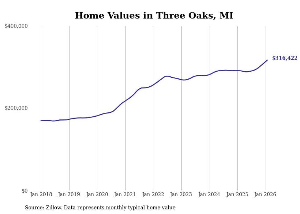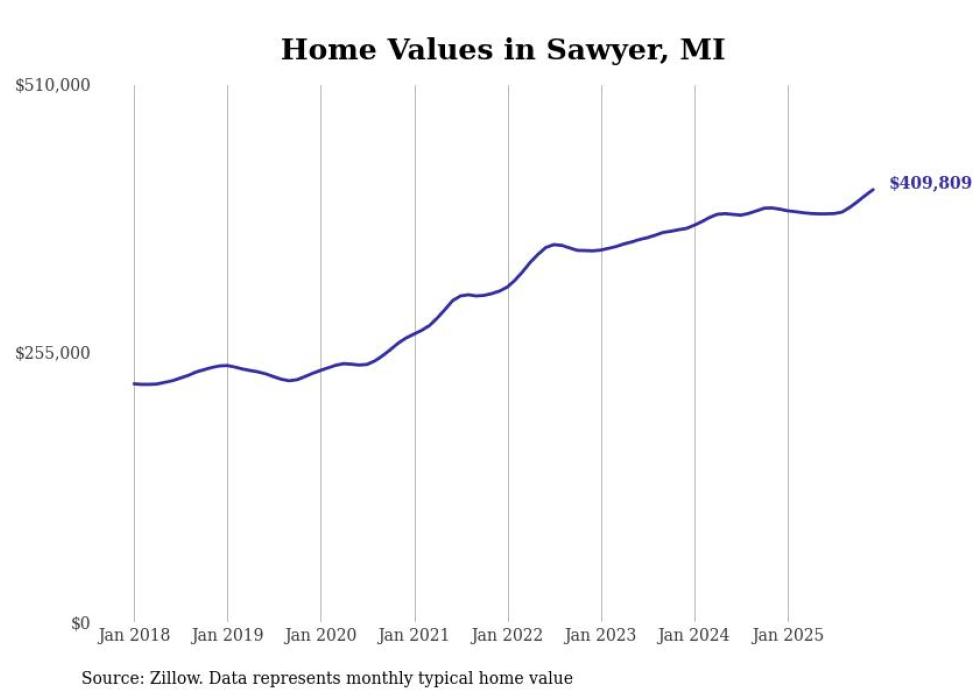 Stacker compiled a list of cities with the most expensive homes in the Niles, MI metro area using data from Zillow. Charts show the monthly typical home value since January 2018.