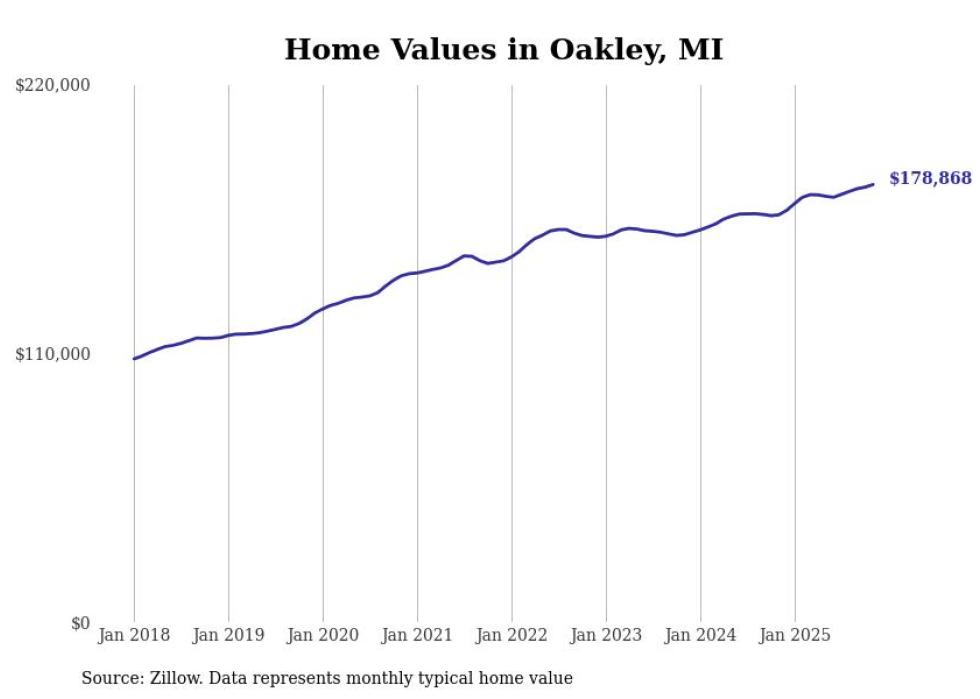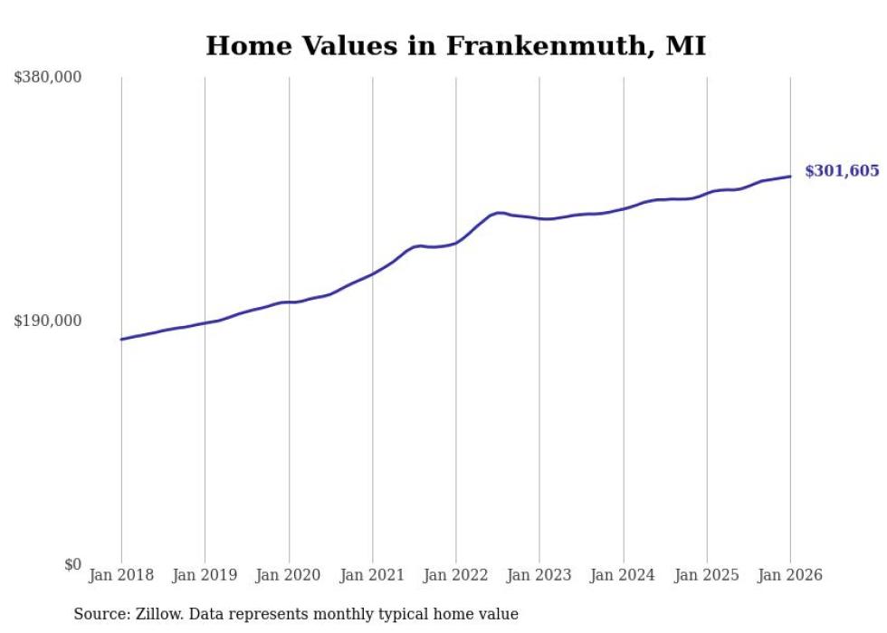 Stacker compiled a list of cities with the most expensive homes in the Saginaw, MI metro area using data from Zillow. Charts show the monthly typical home value since January 2018.