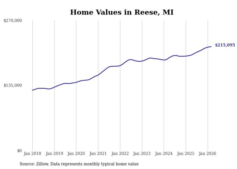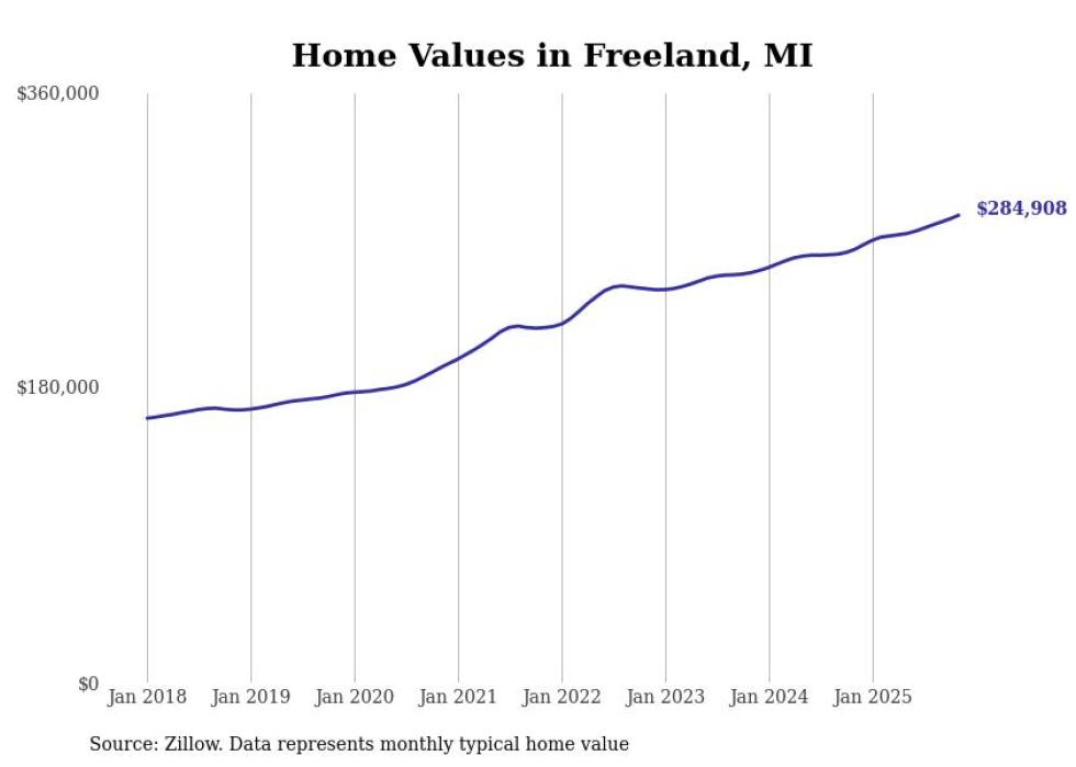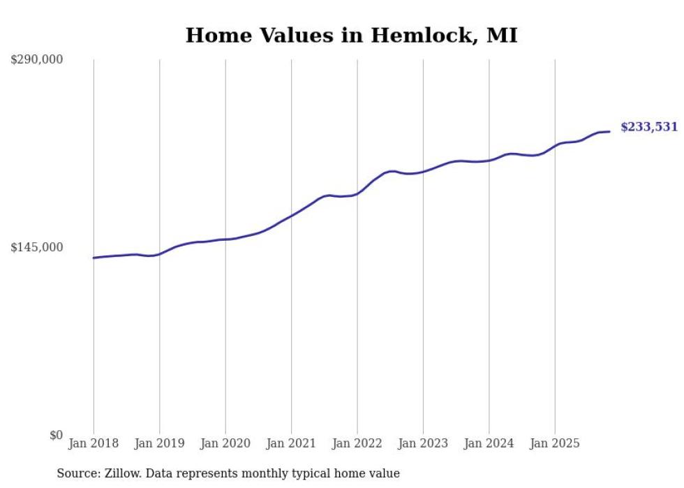 Cities with the fastest-growing home prices in the Saginaw metro area