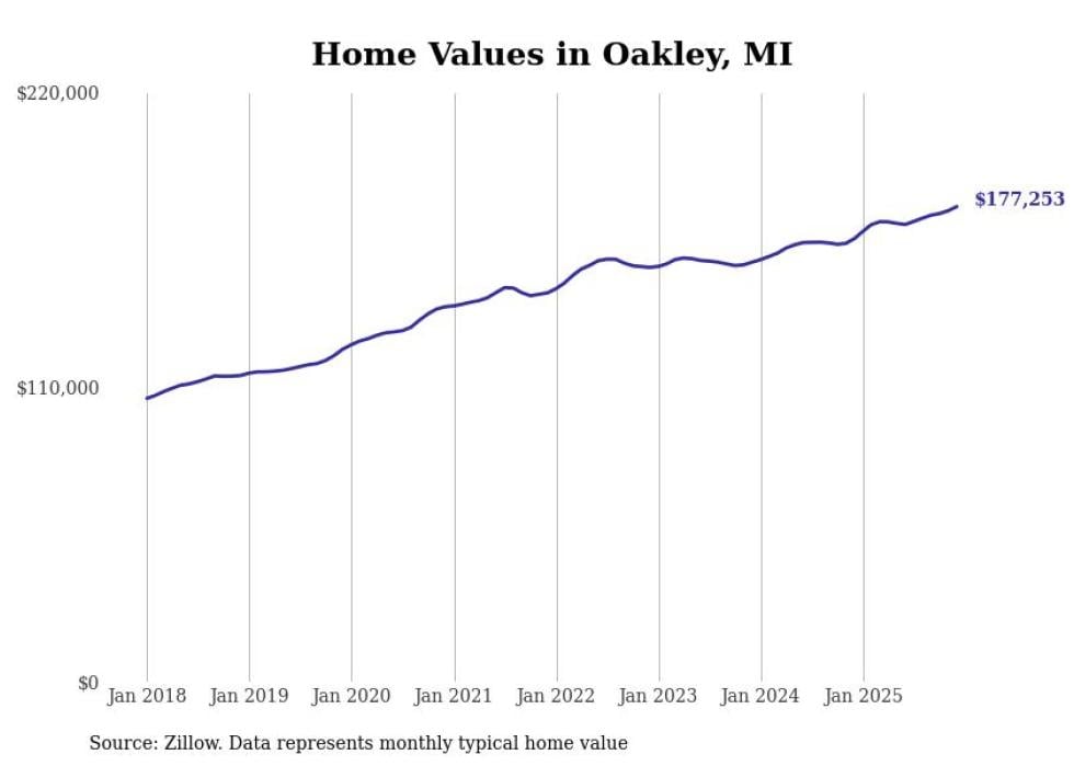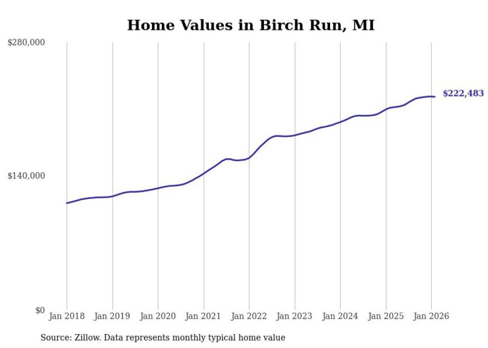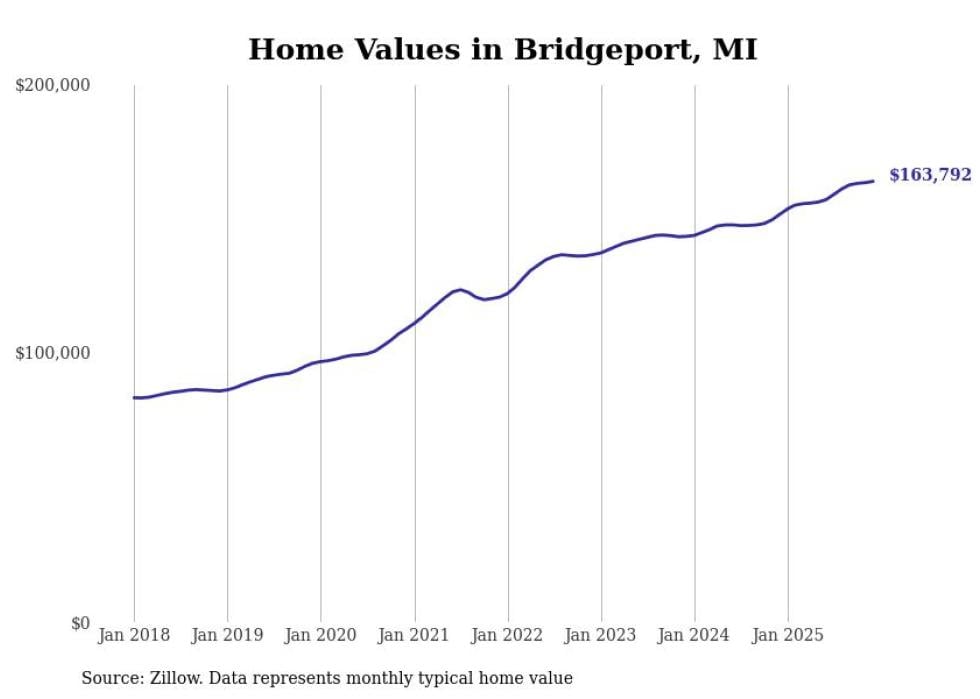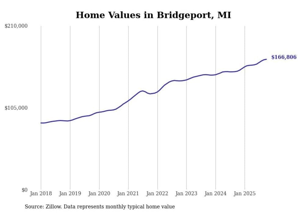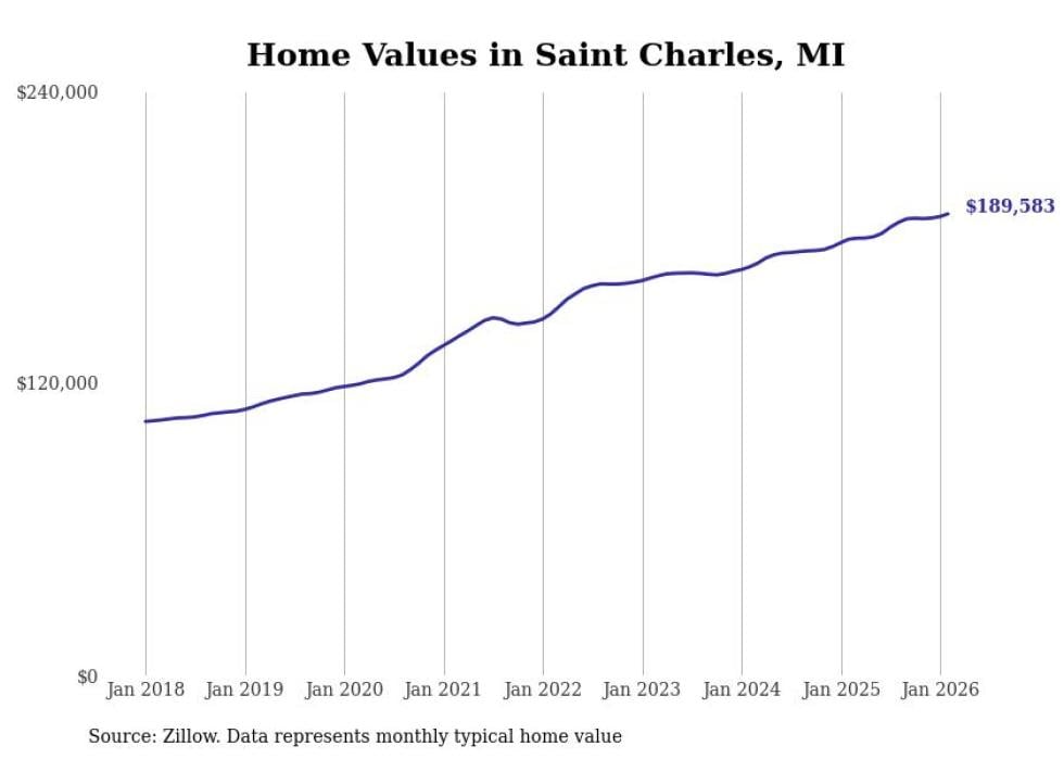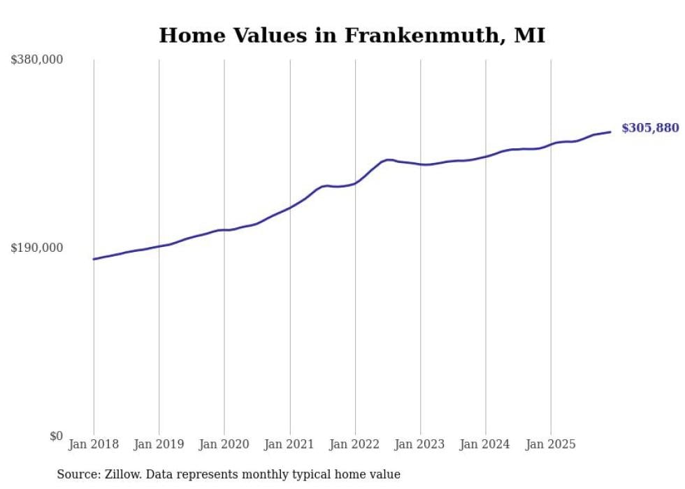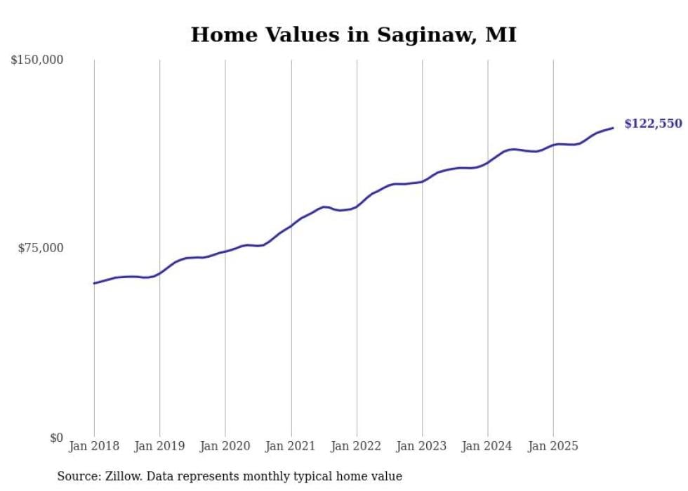 Stacker compiled a list of cities with the most expensive homes in the Saginaw metro area using data from Zillow. Charts show the monthly typical home value since January 2018. All 13 cities and towns with data available were included in the list.