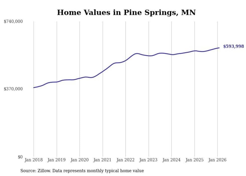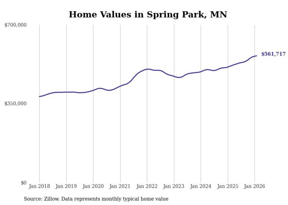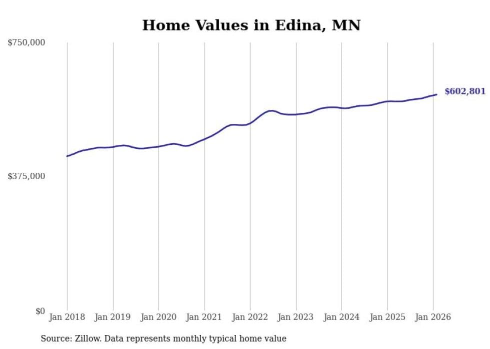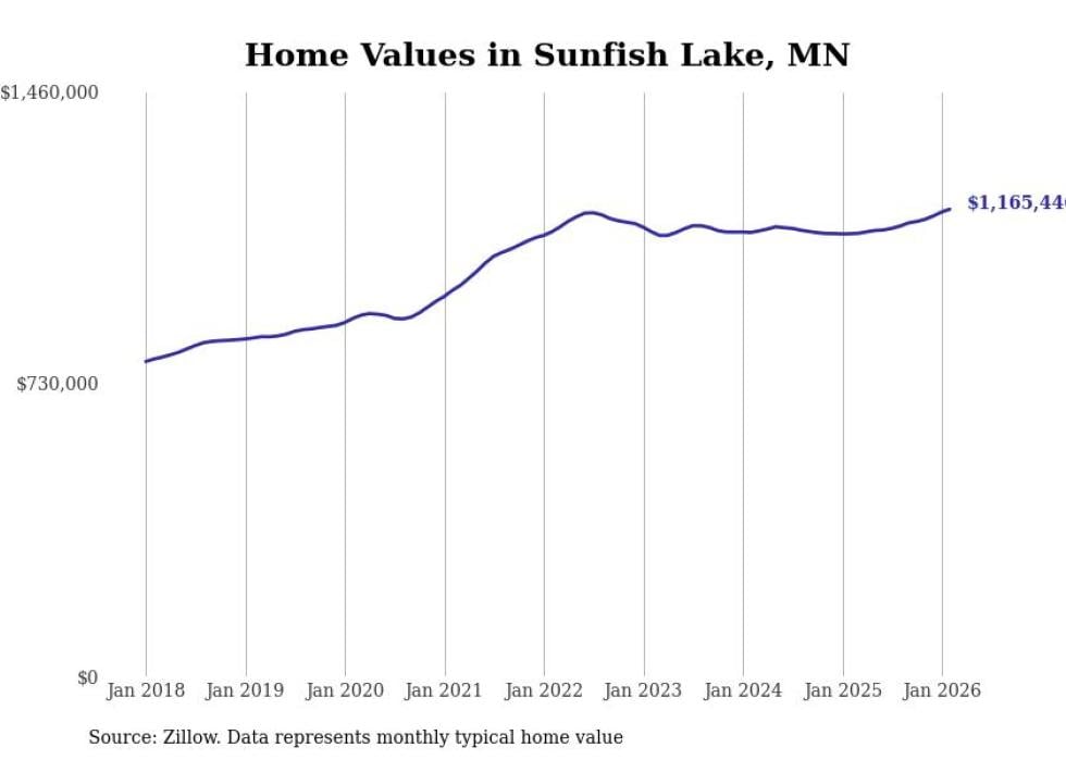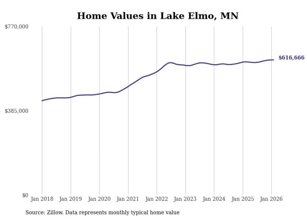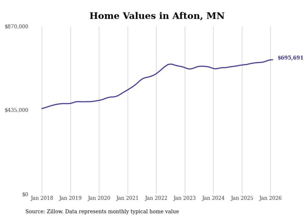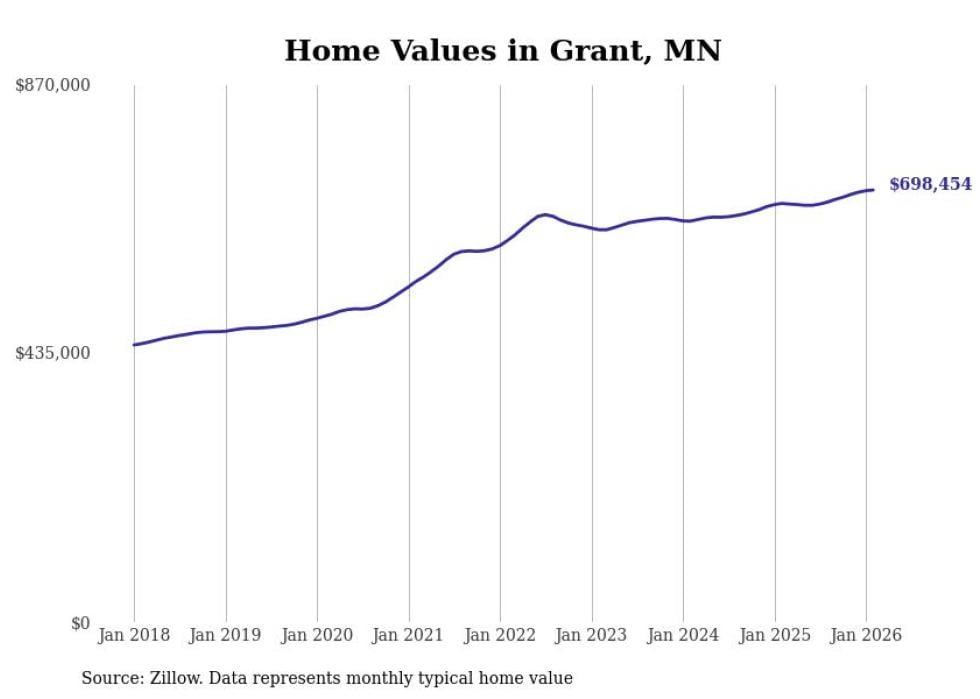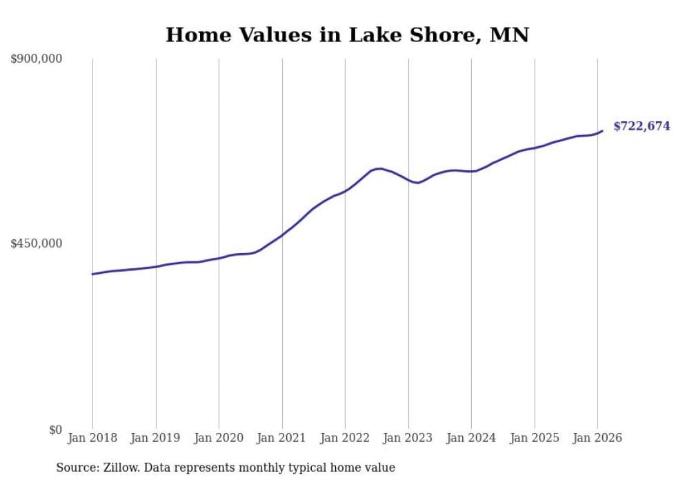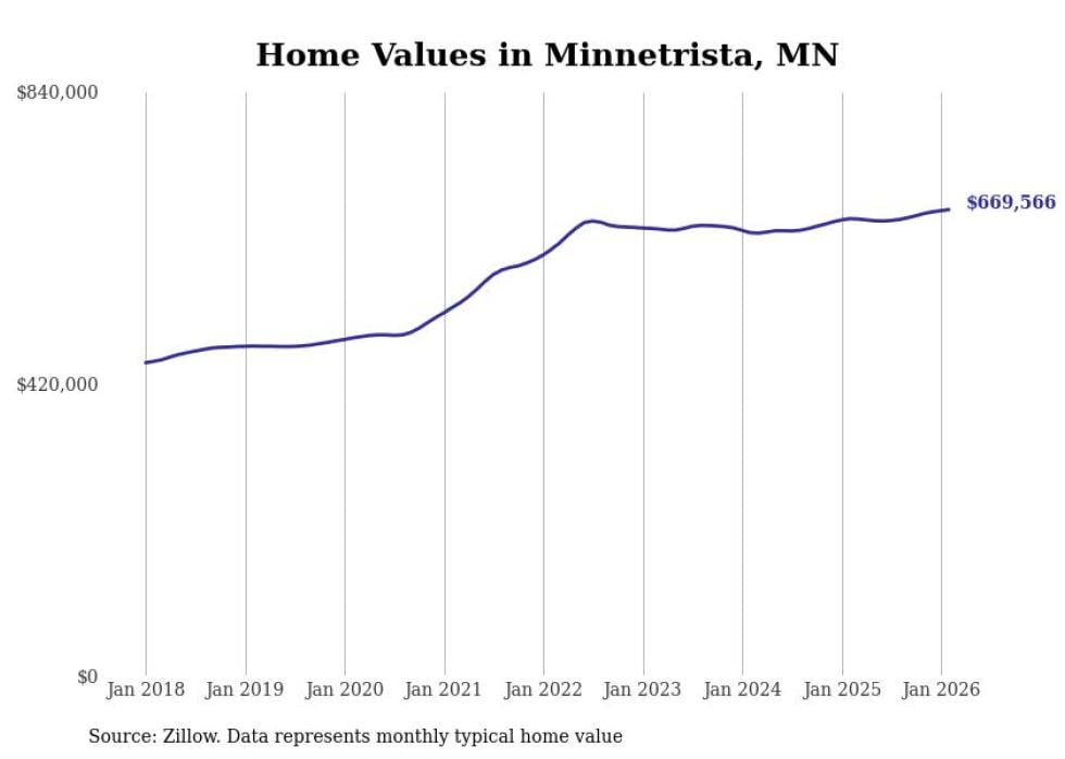 Stacker compiled a list of cities with the most expensive homes in Minnesota using data from Zillow. Cities are ranked by the Zillow Home Values Index for all homes as of February 2026. The charts in this story were created automatically using Matplotlib.