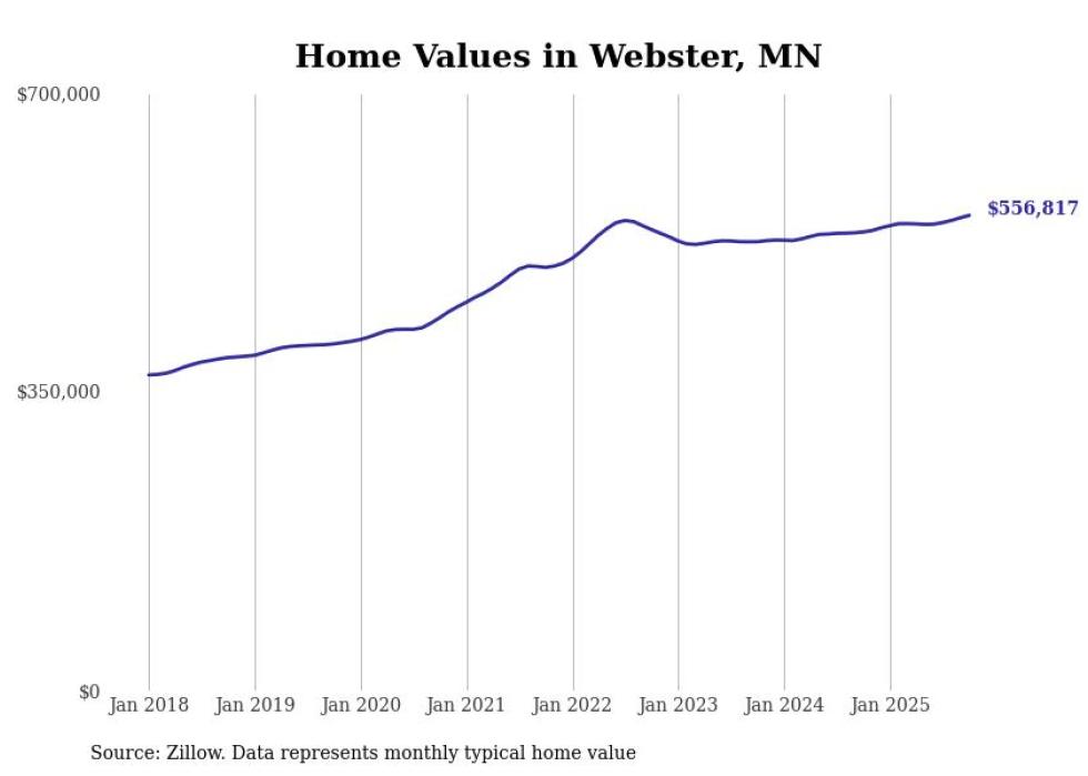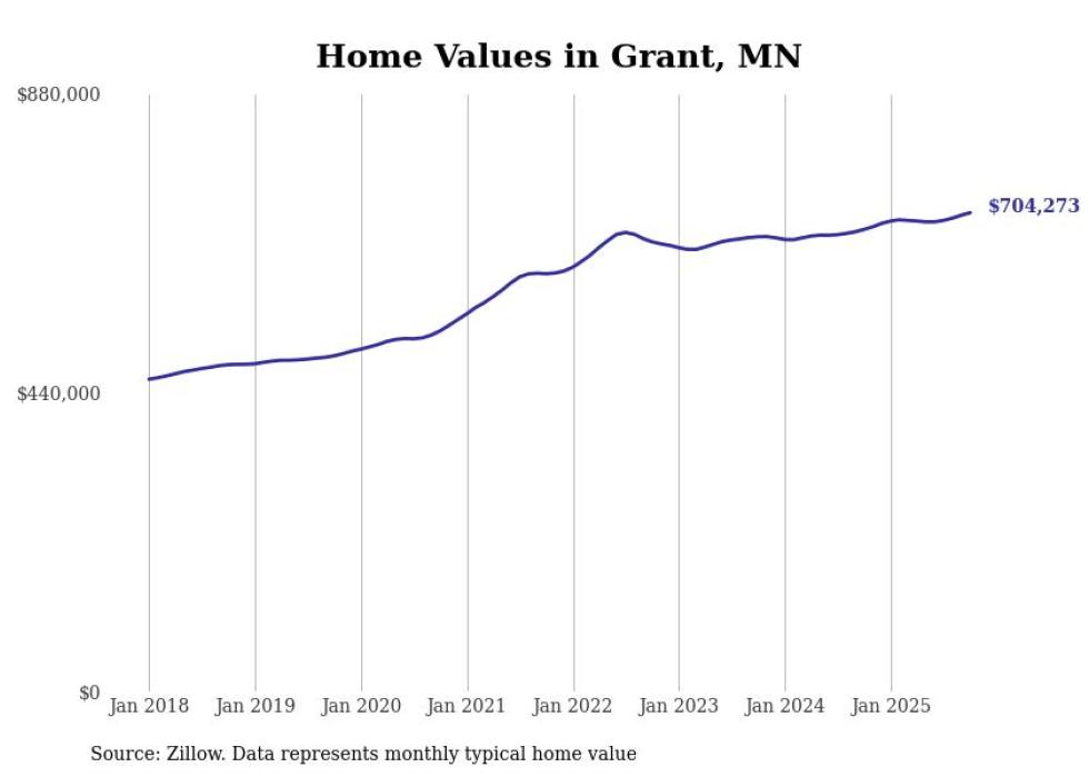 Stacker compiled a list of cities with the most expensive homes in Minnesota using data from Zillow. Cities are ranked by the Zillow Home Values Index for all homes as of October 2025. The charts in this story were created automatically using Matplotlib.