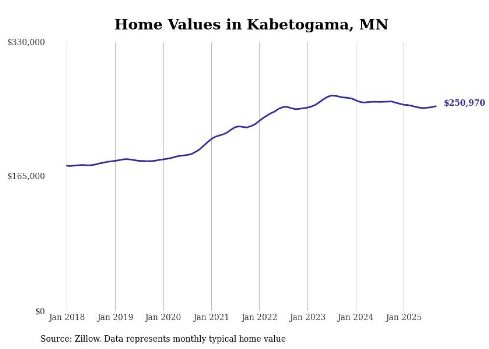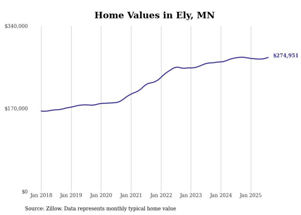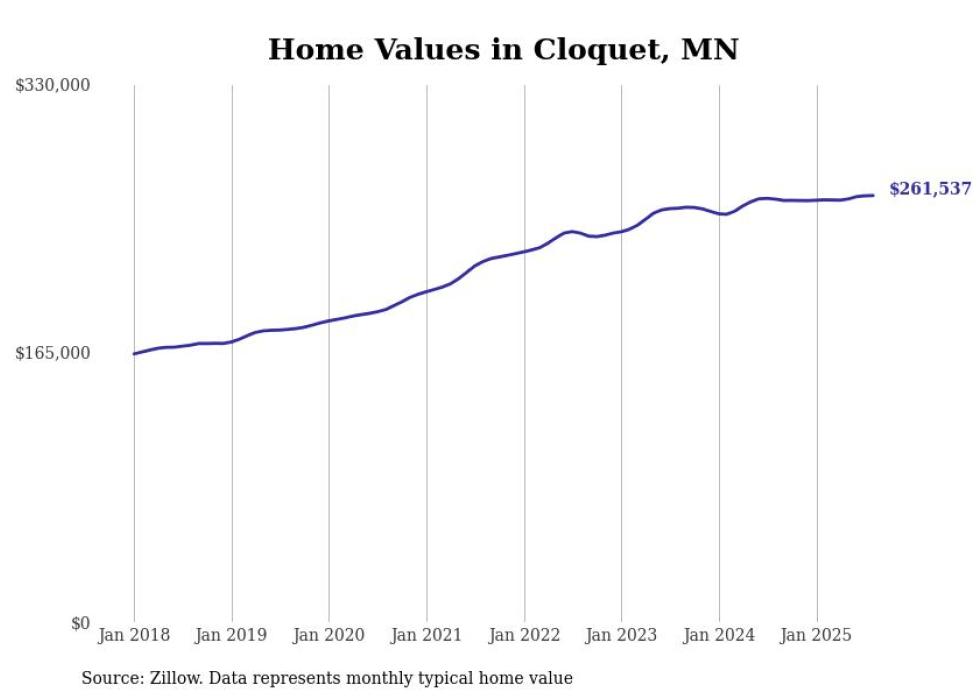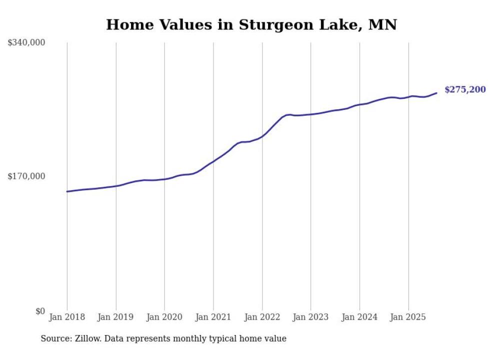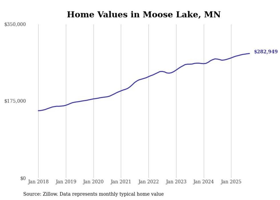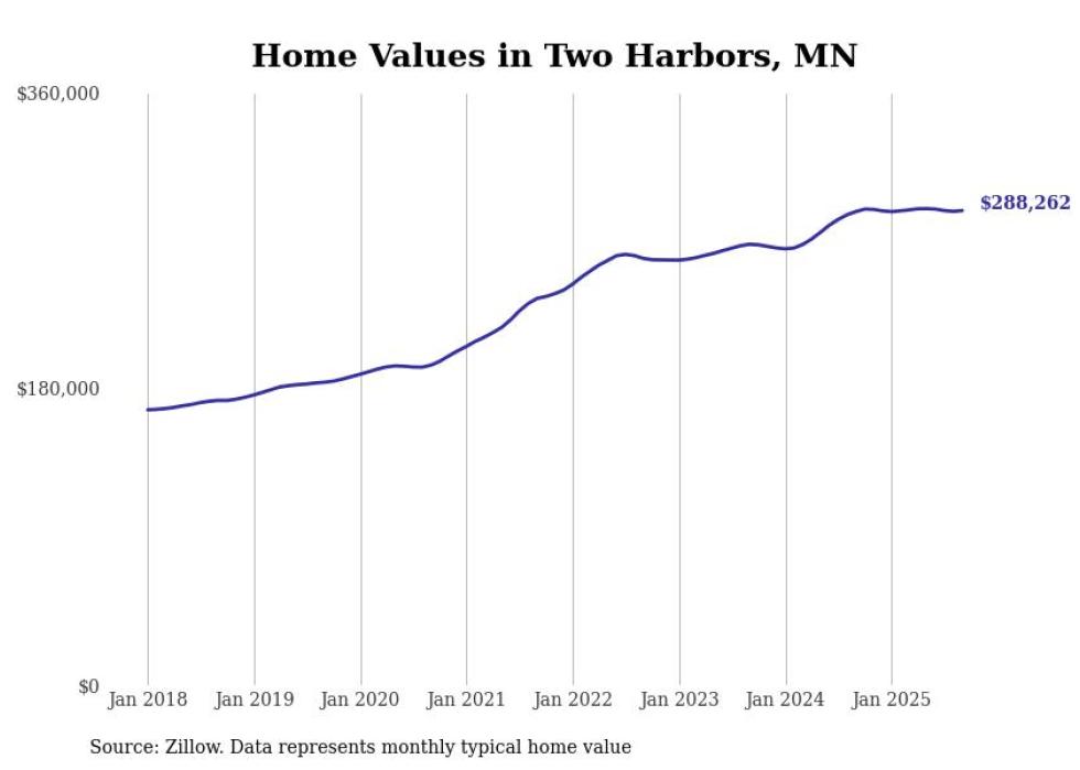 Stacker compiled a list of cities with the most expensive homes in the Duluth metro area using data from Zillow. Charts show the monthly typical home value since January 2018. Data was available for 62 cities and towns.