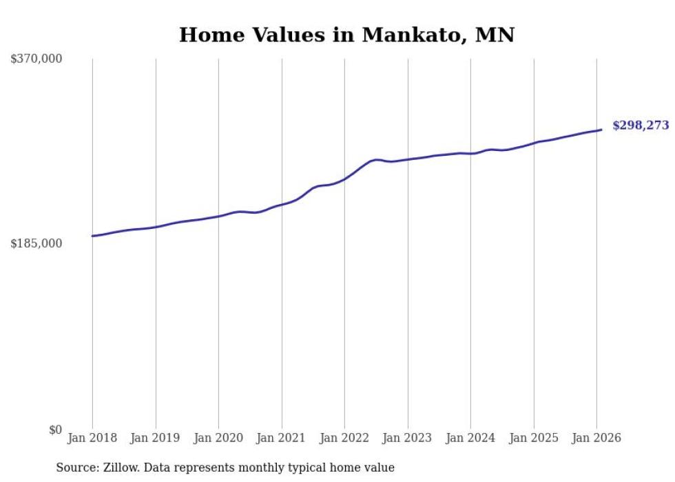 Stacker compiled a list of cities with the most expensive homes in the Mankato metro area using data from Zillow. Charts show the monthly typical home value since January 2018. All 23 cities and towns with data available were included in the list.