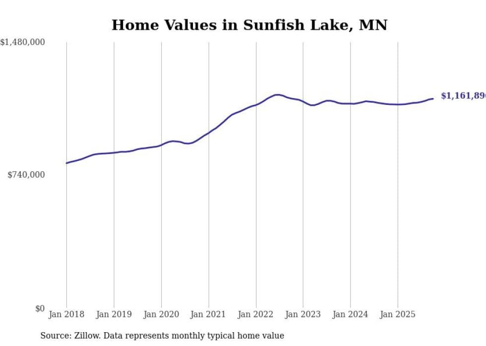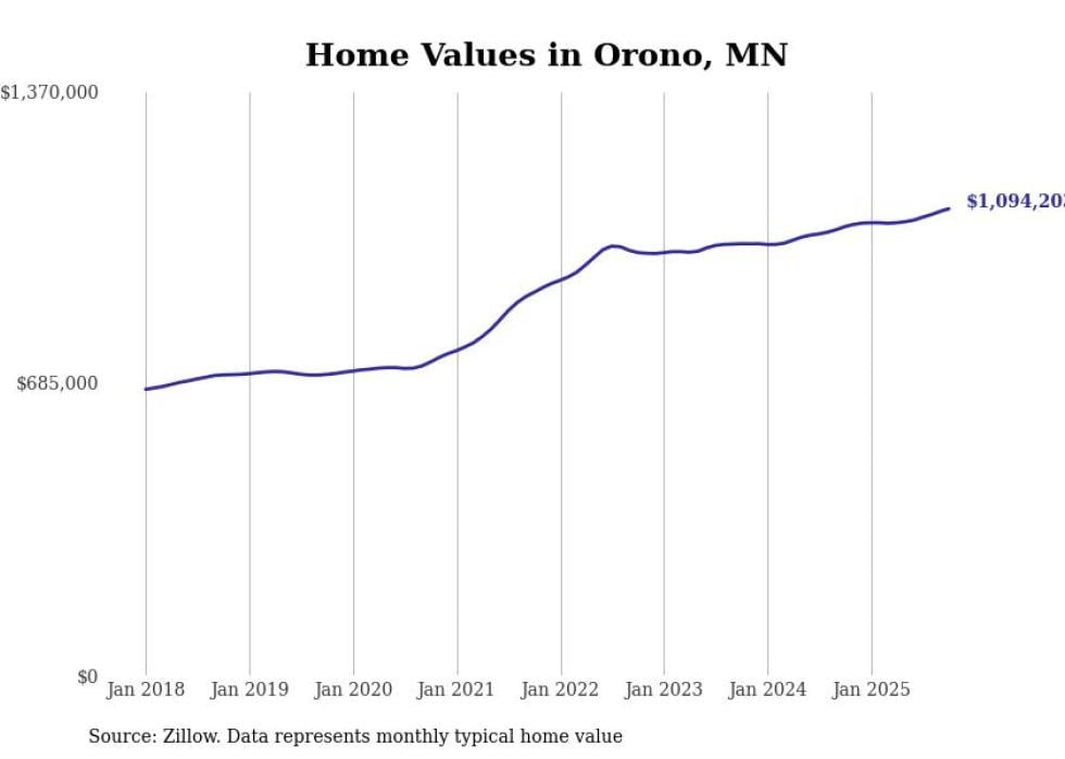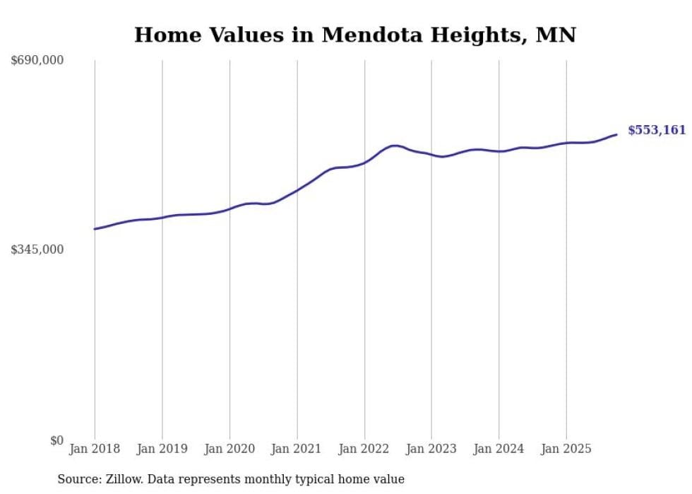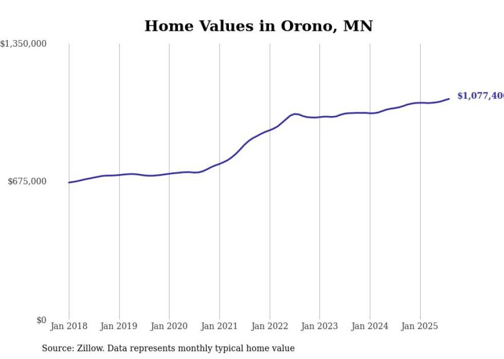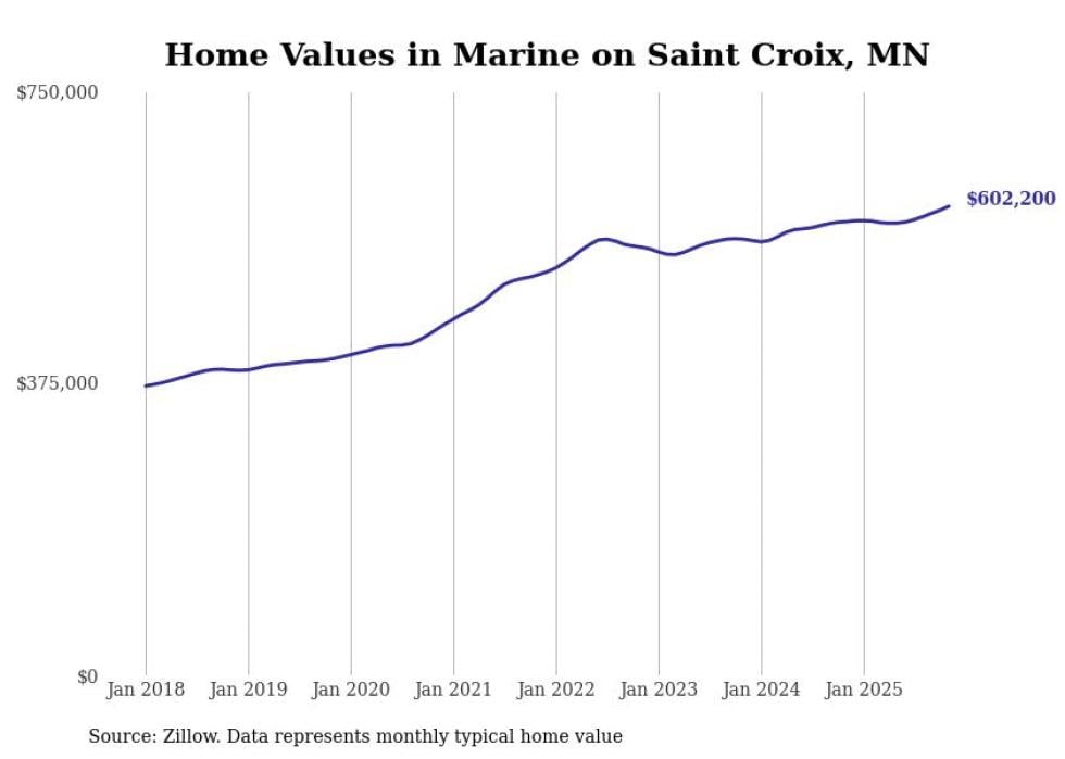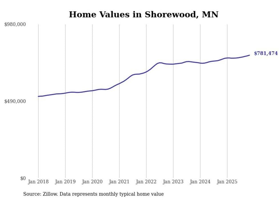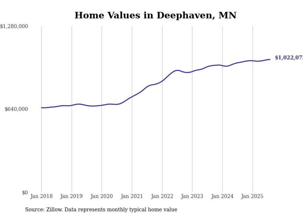 Stacker compiled a list of cities with the most expensive homes in the Minneapolis-St. Paul-Bloomington, MN-WI metro area using data from Zillow. Charts show the monthly typical home value since January 2018.