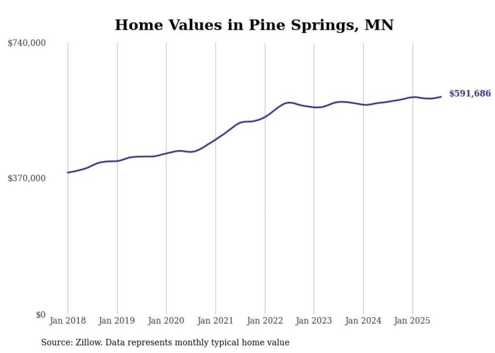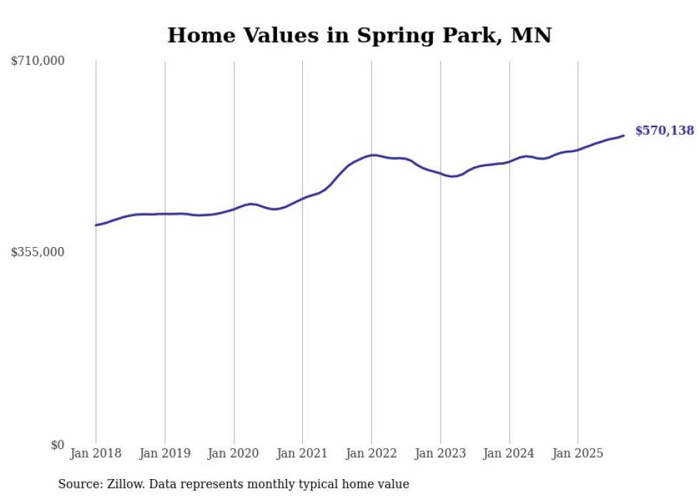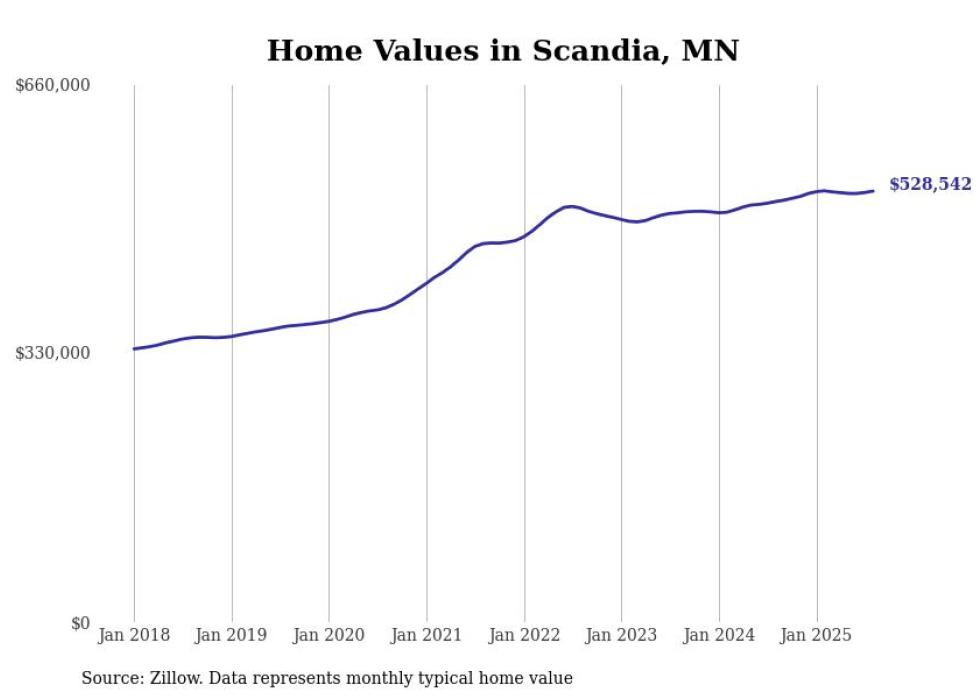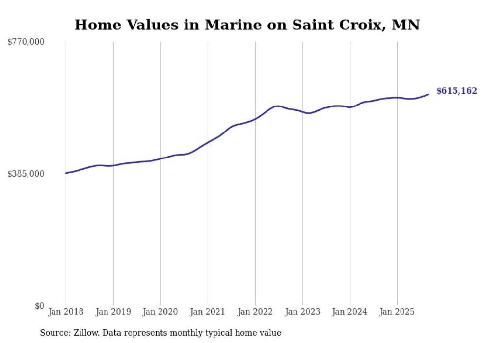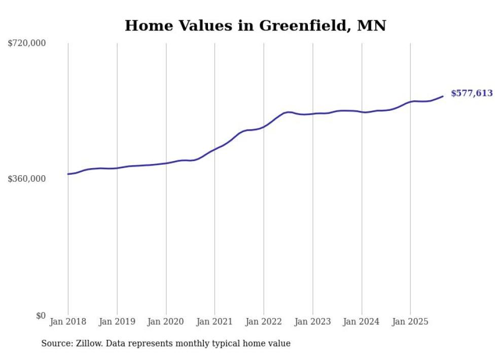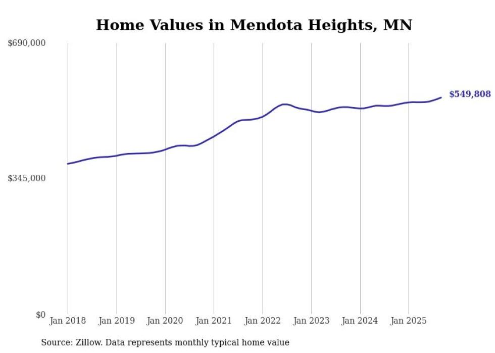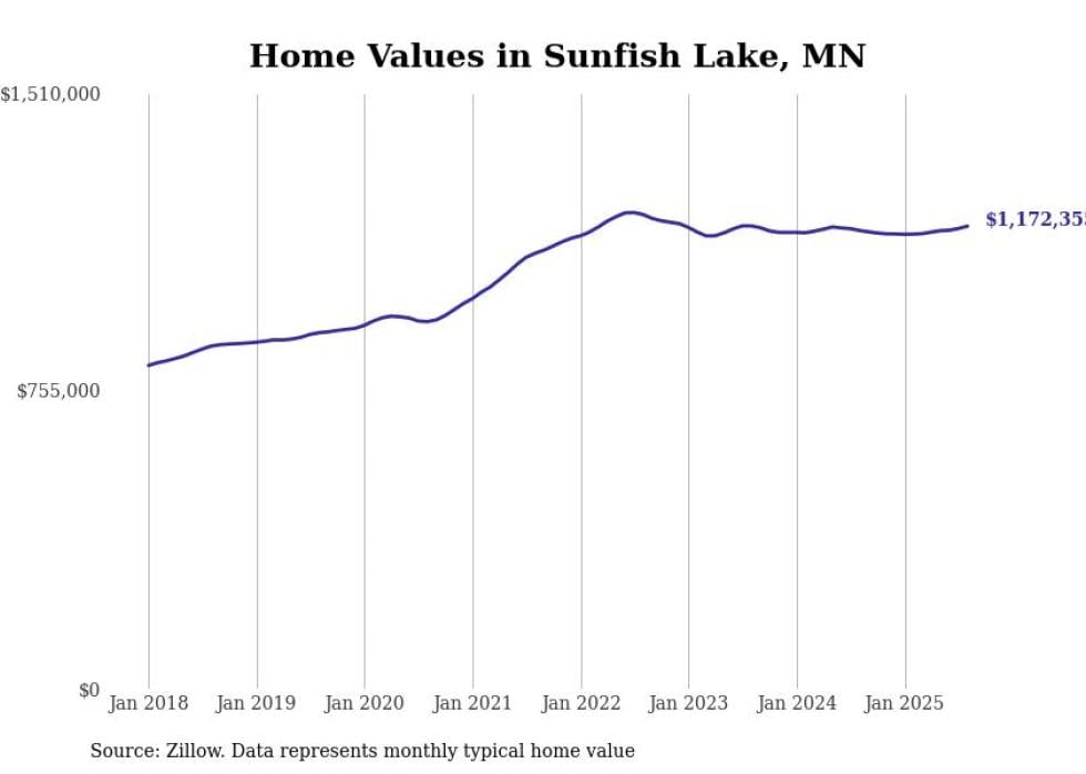 Stacker compiled a list of cities with the most expensive homes in the Minneapolis metro area using data from Zillow. Charts show the monthly typical home value since January 2018. Data was available for 206 cities and towns.