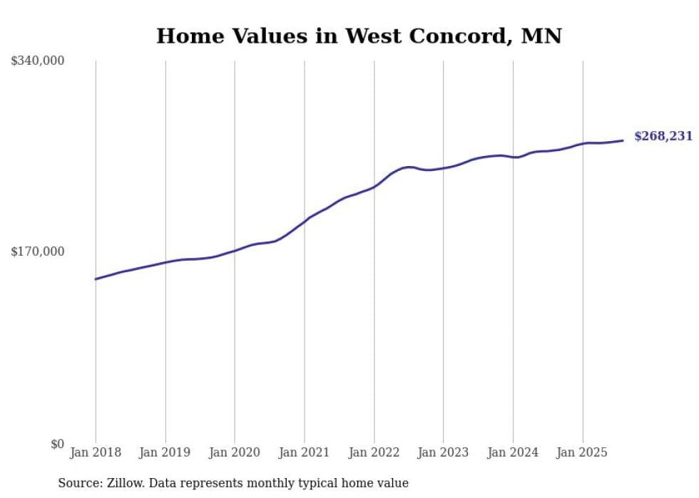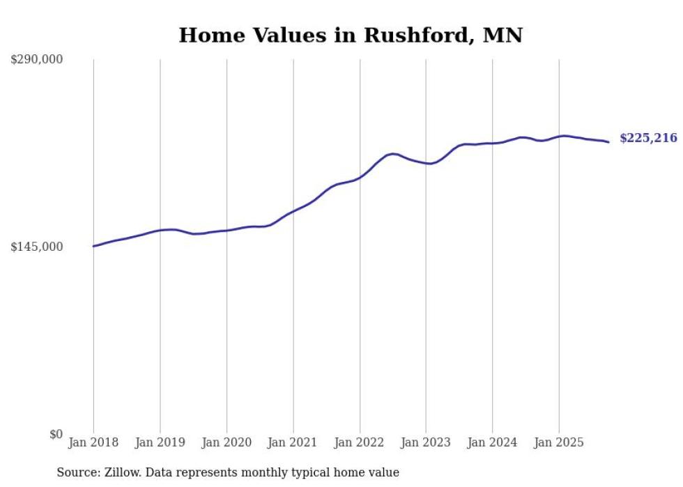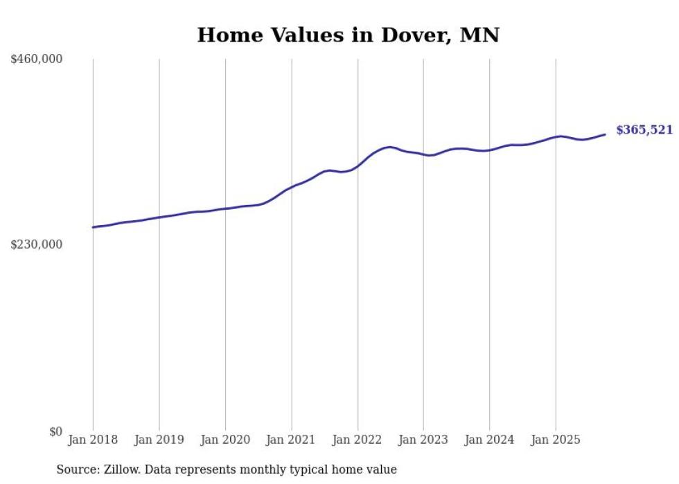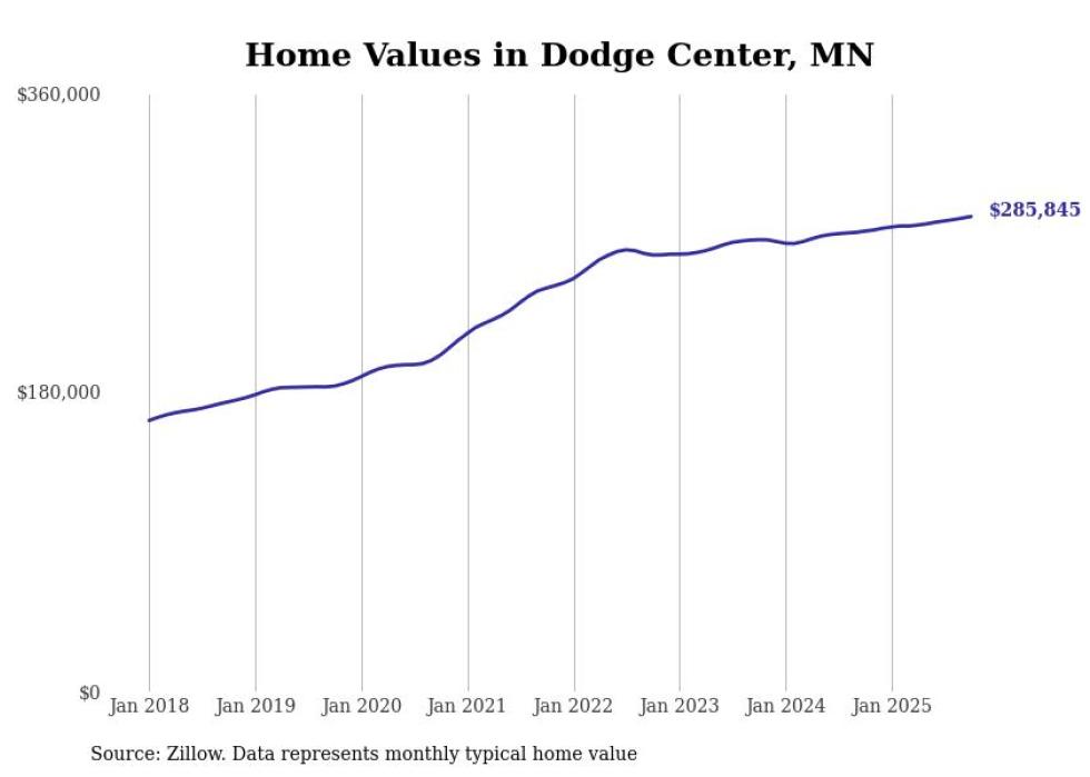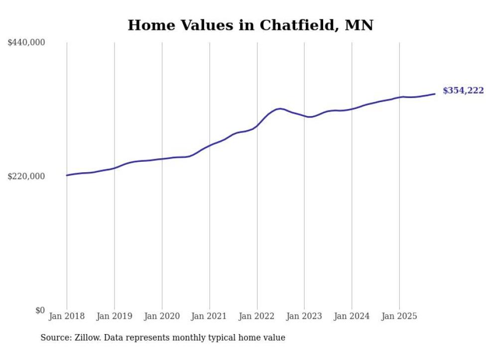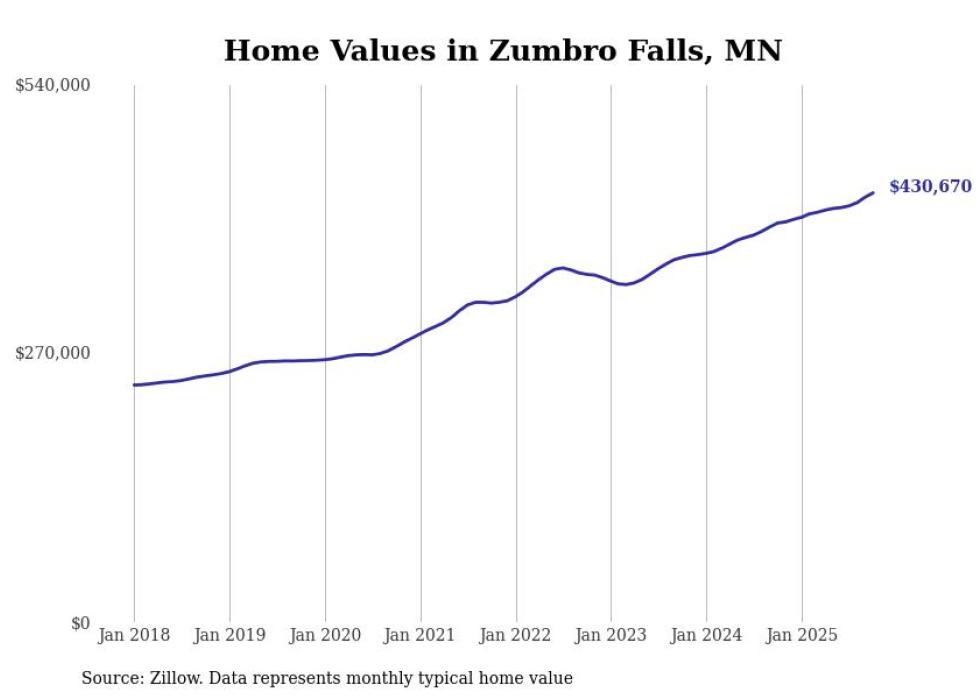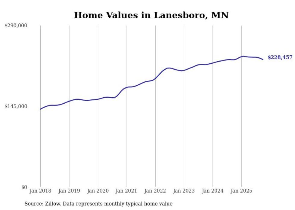 Stacker compiled a list of cities with the most expensive homes in the Rochester, MN metro area using data from Zillow. Charts show the monthly typical home value since January 2018.