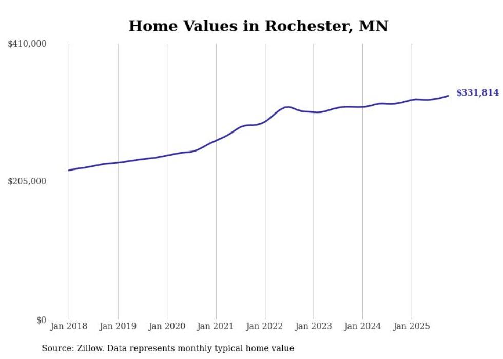 Cities with the fastest-growing home prices in the Rochester, Minnesota metro area