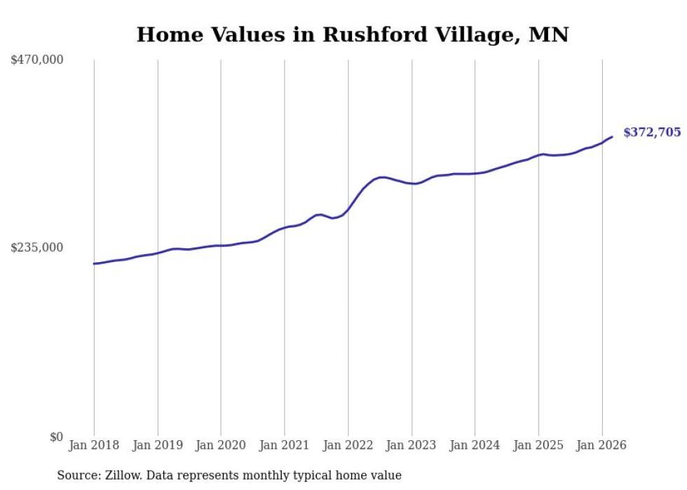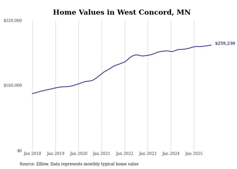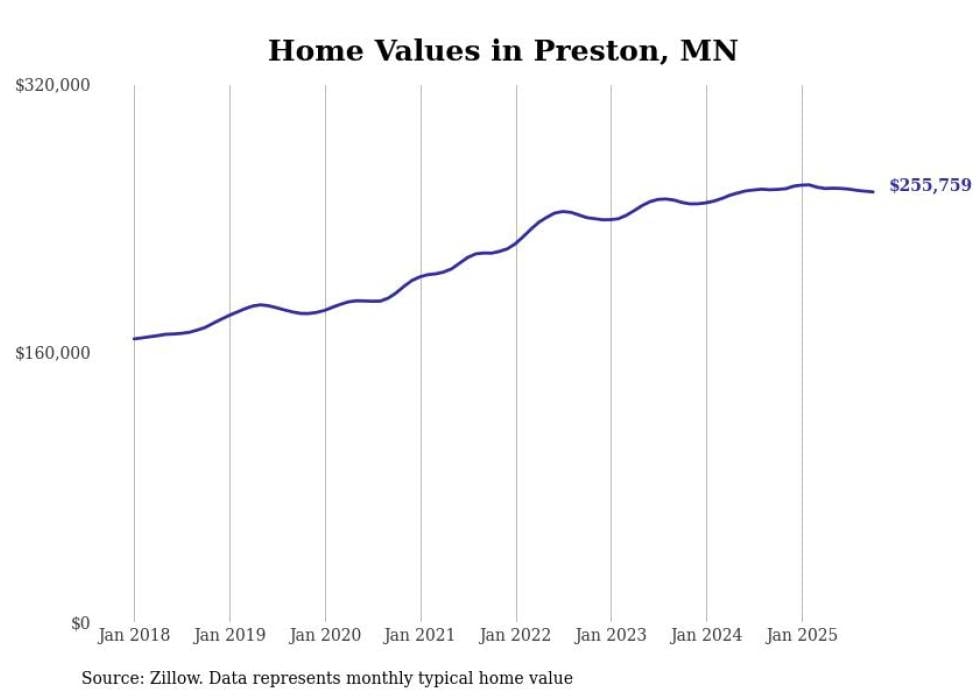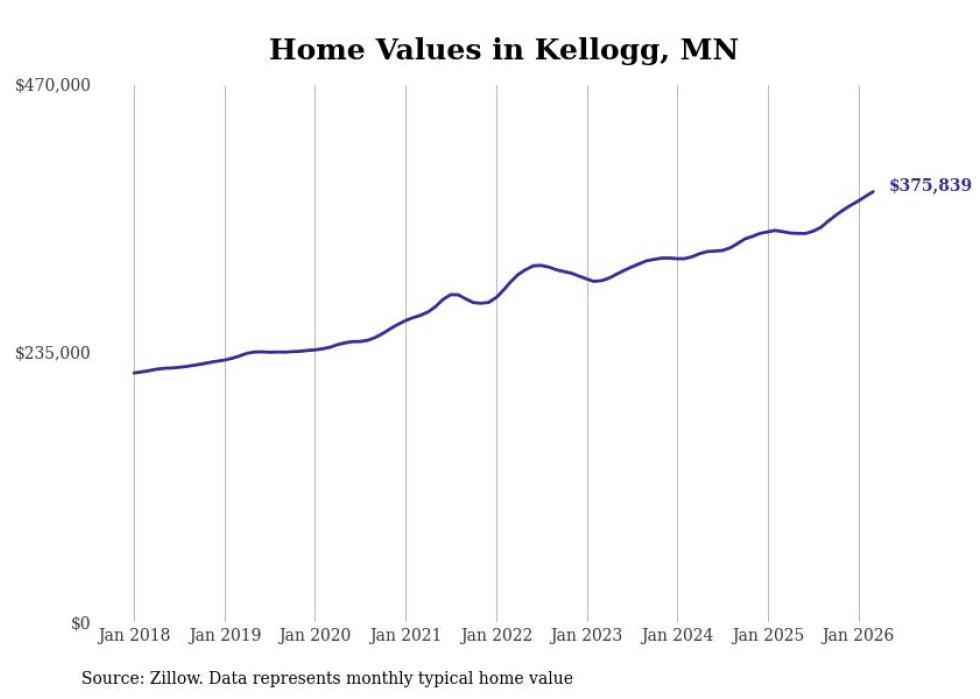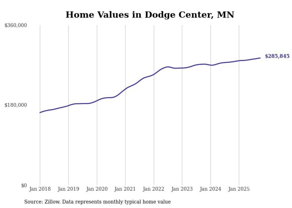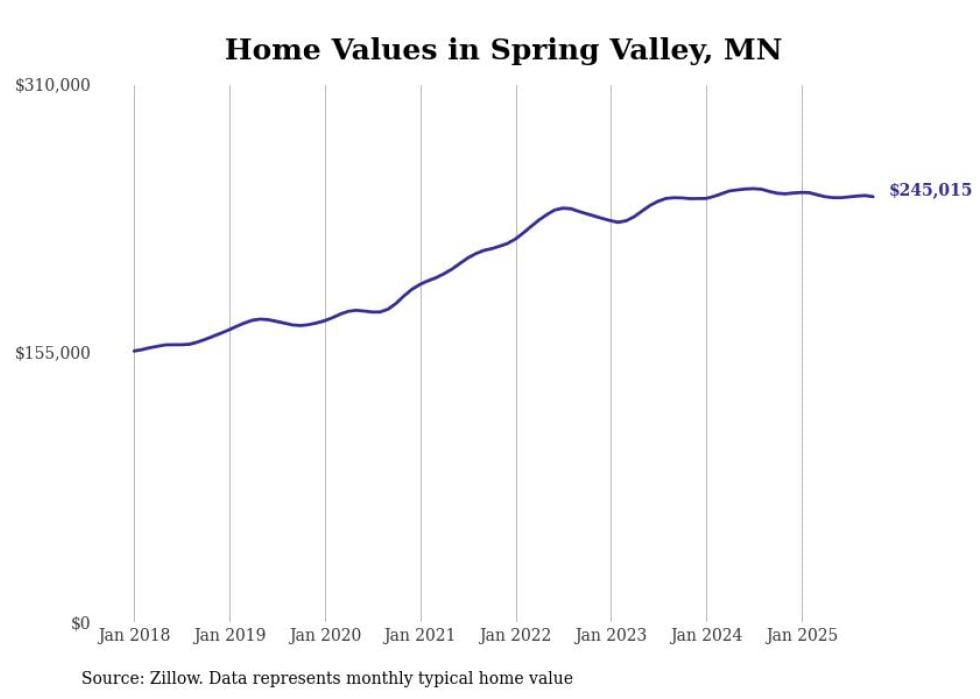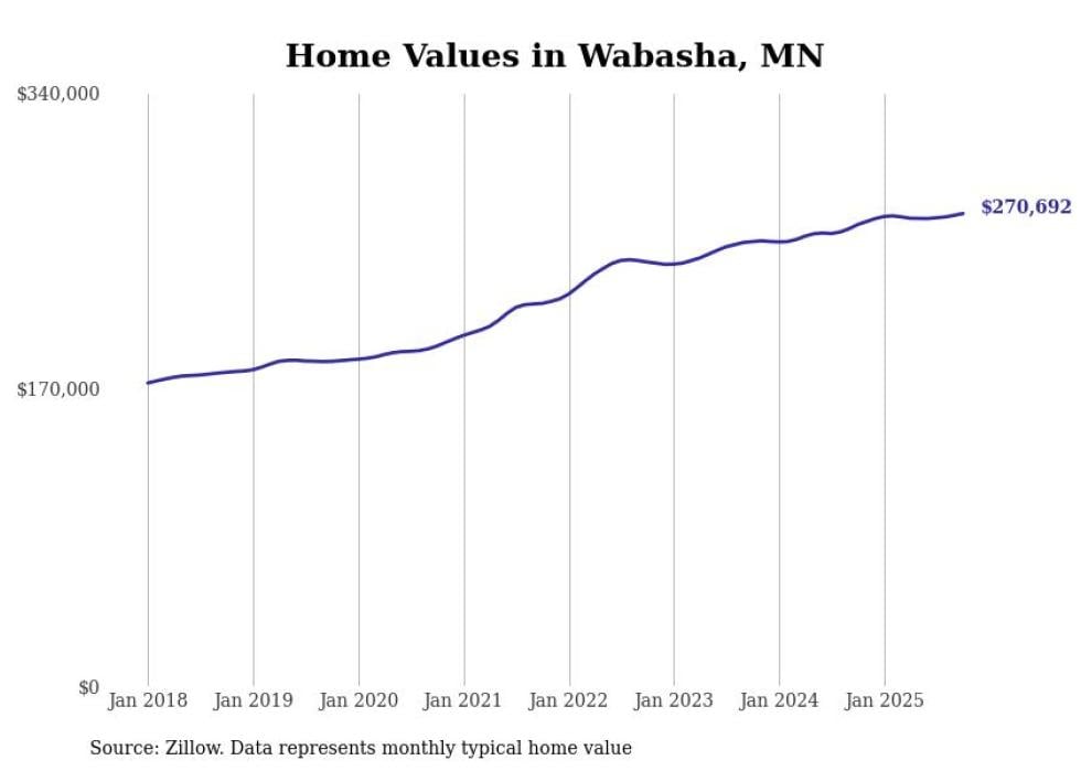 Stacker compiled a list of cities with the most expensive homes in the Rochester, Minnesota metro area using data from Zillow. Charts show the monthly typical home value since January 2018. Data was available for 34 cities and towns.