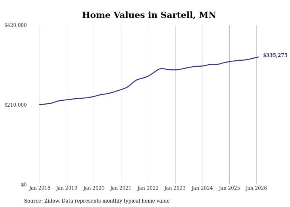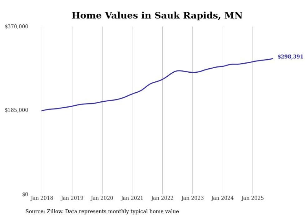 Stacker compiled a list of cities with the most expensive homes in the St. Cloud metro area using data from Zillow. Charts show the monthly typical home value since January 2018. All 26 cities and towns with data available were included in the list.