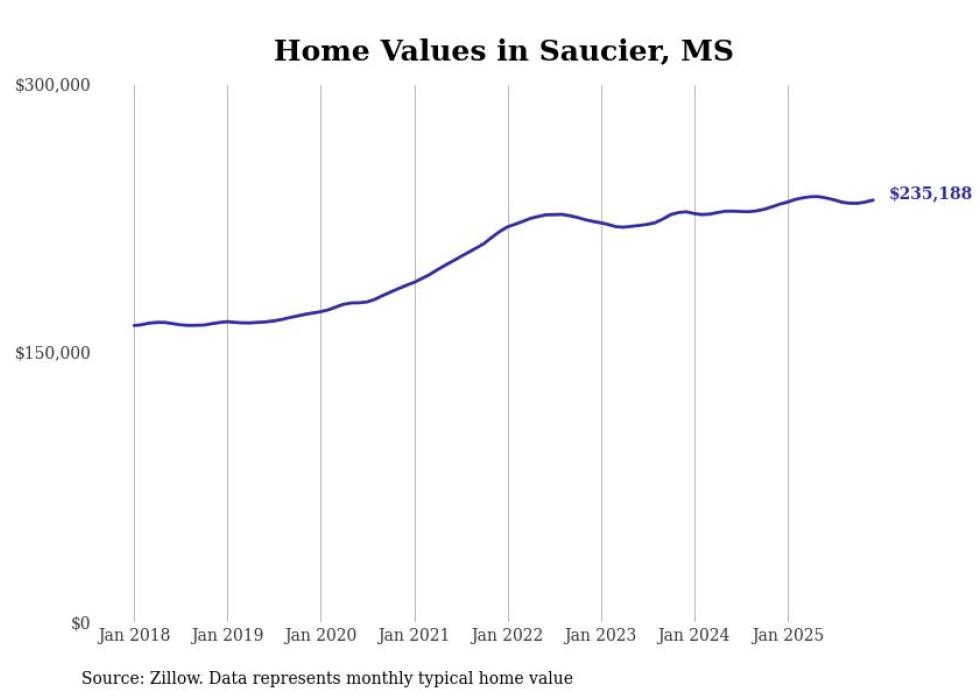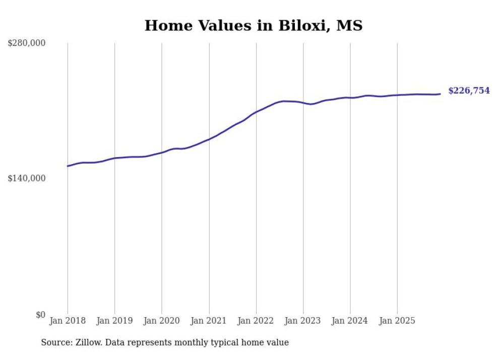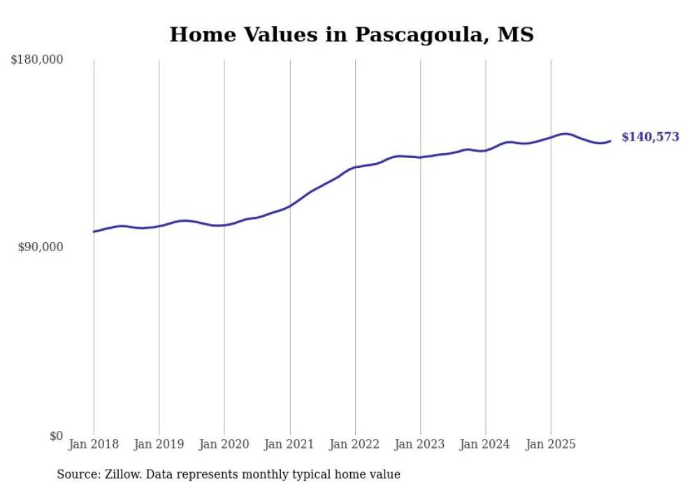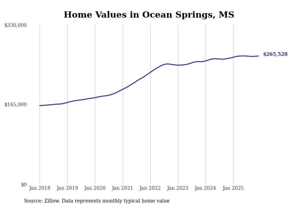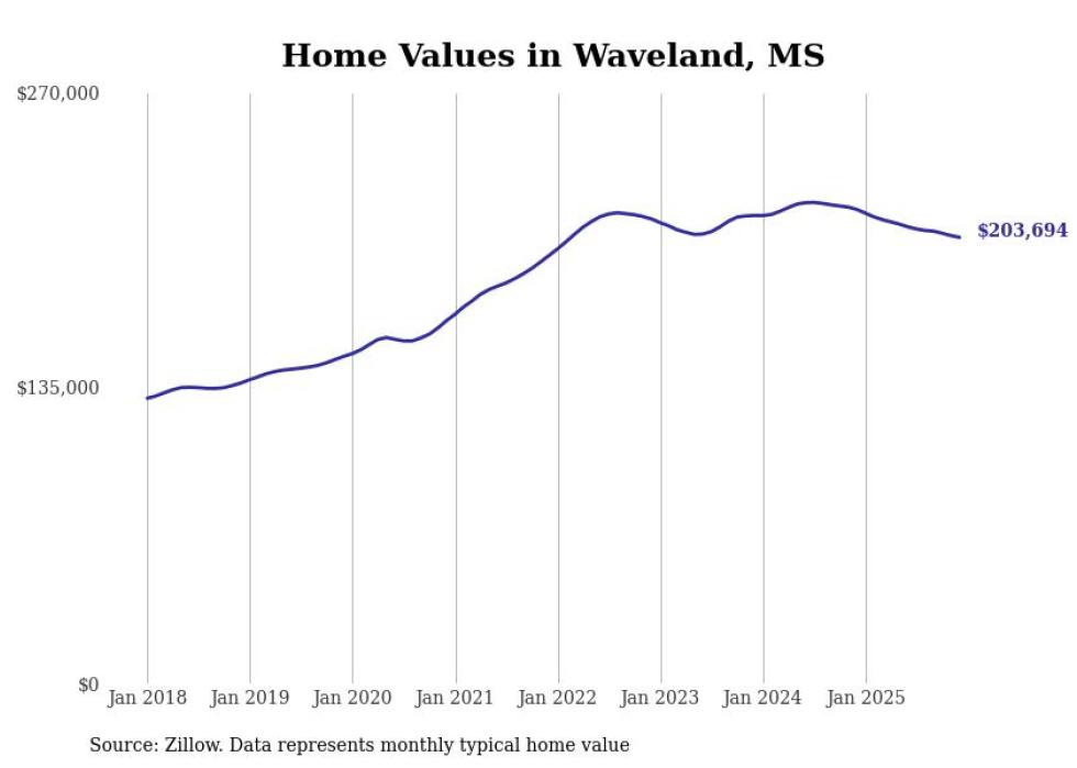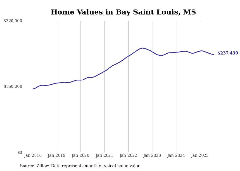 Stacker compiled a list of cities with the most expensive homes in the Gulfport metro area using data from Zillow. Charts show the monthly typical home value since January 2018. All 20 cities and towns with data available were included in the list.