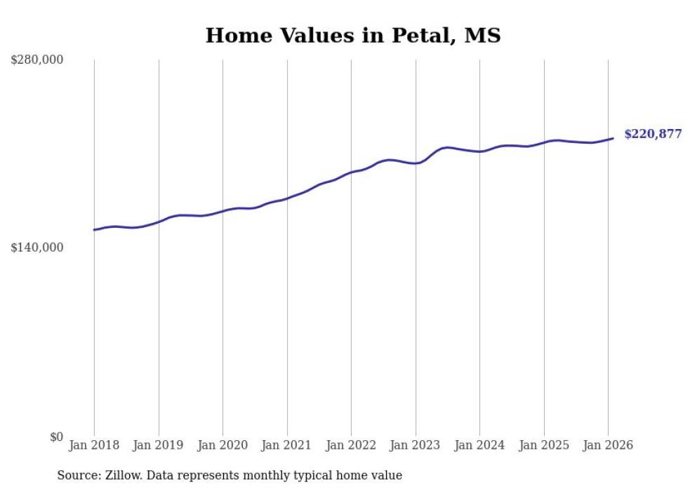 Stacker compiled a list of cities with the most expensive homes in the Hattiesburg, MS metro area using data from Zillow. Charts show the monthly typical home value since January 2018.