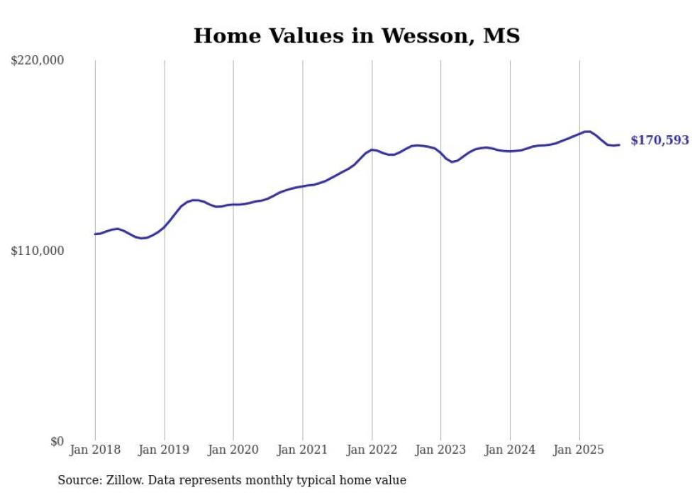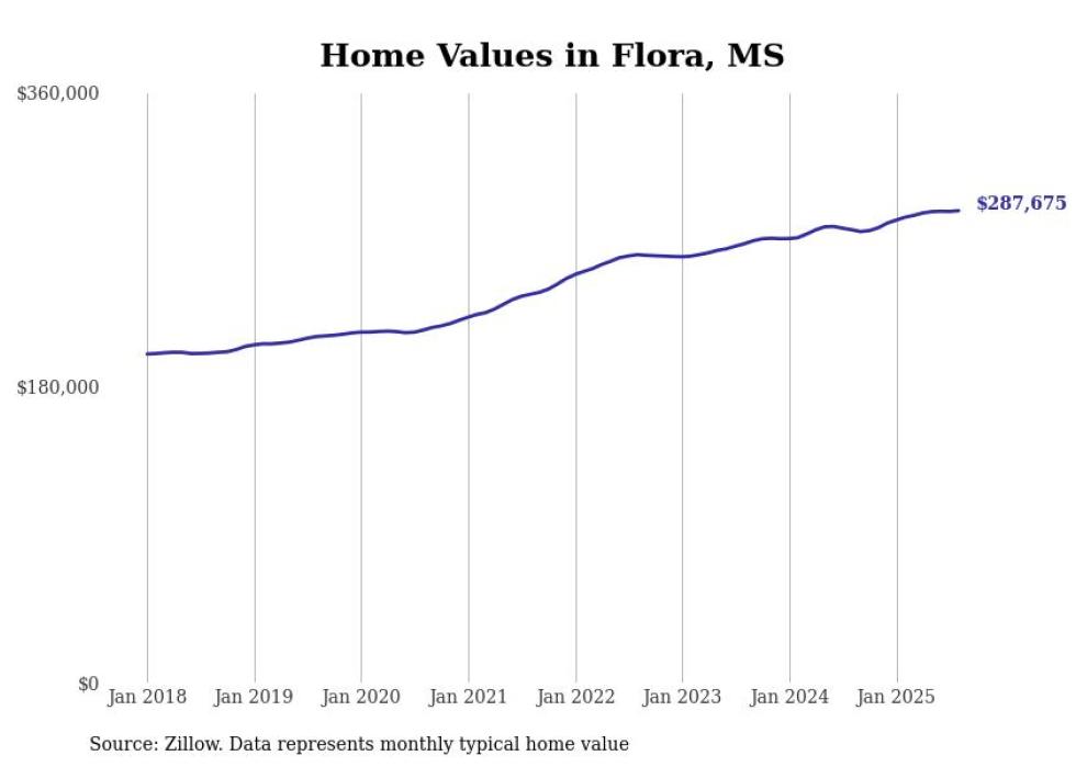 Stacker compiled a list of cities with the most expensive homes in the Jackson, MS metro area using data from Zillow. Charts show the monthly typical home value since January 2018.