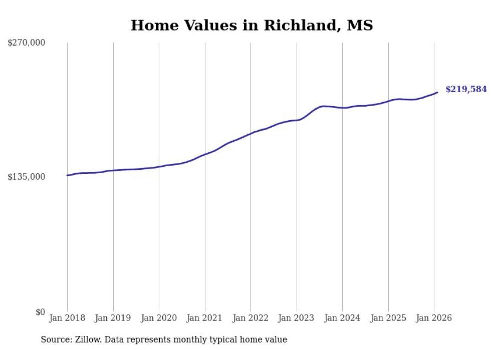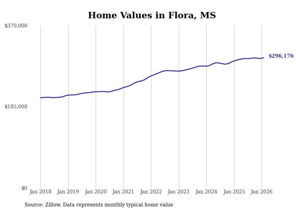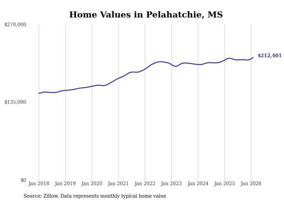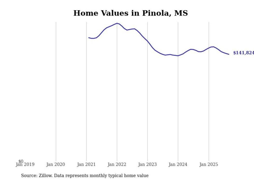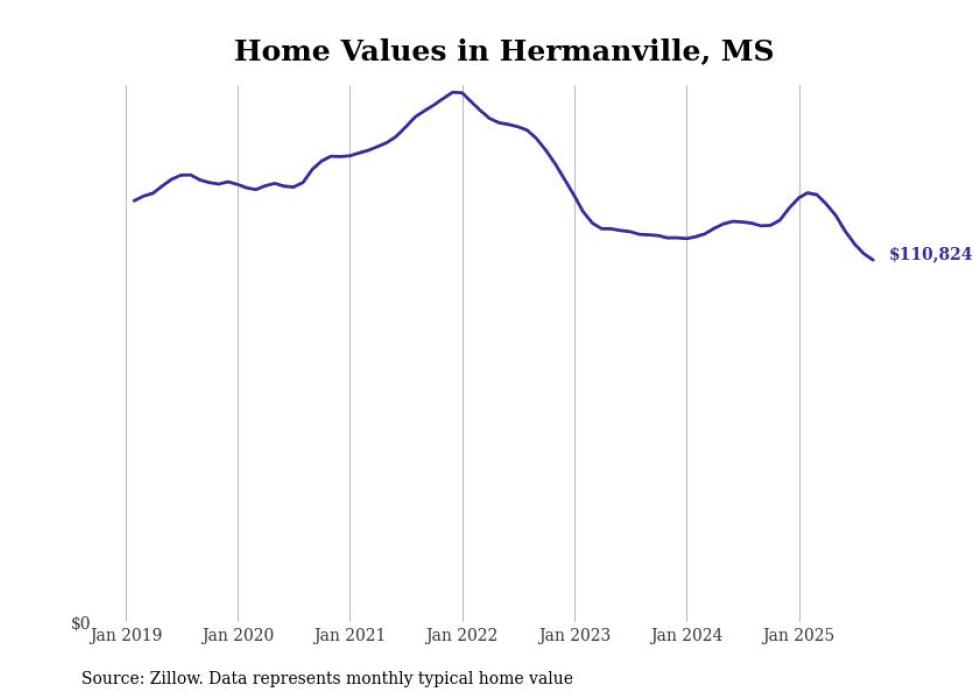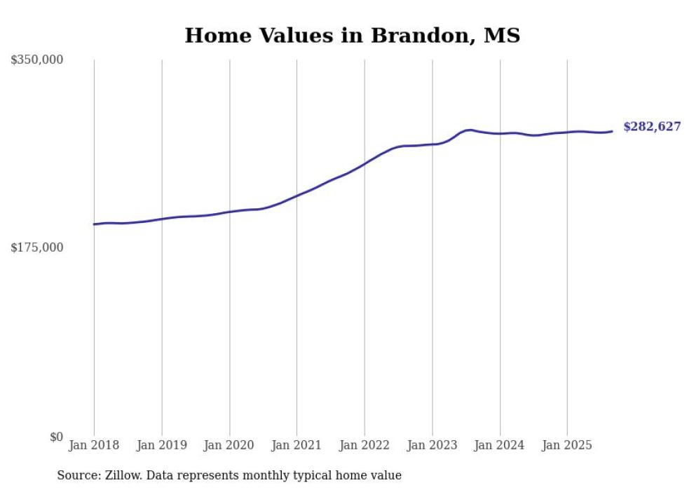Stacker compiled a list of cities with the most expensive homes in the Jackson metro area using data from Zillow. Charts show the monthly typical home value since January 2018. Data was available for 40 cities and towns.