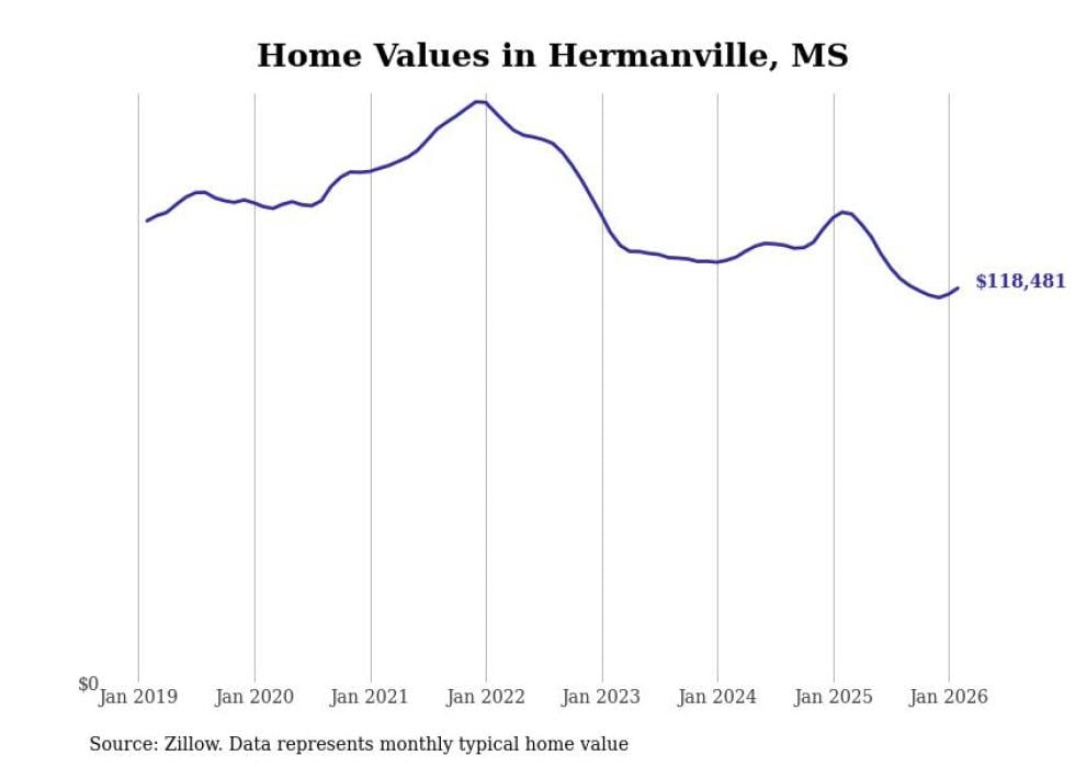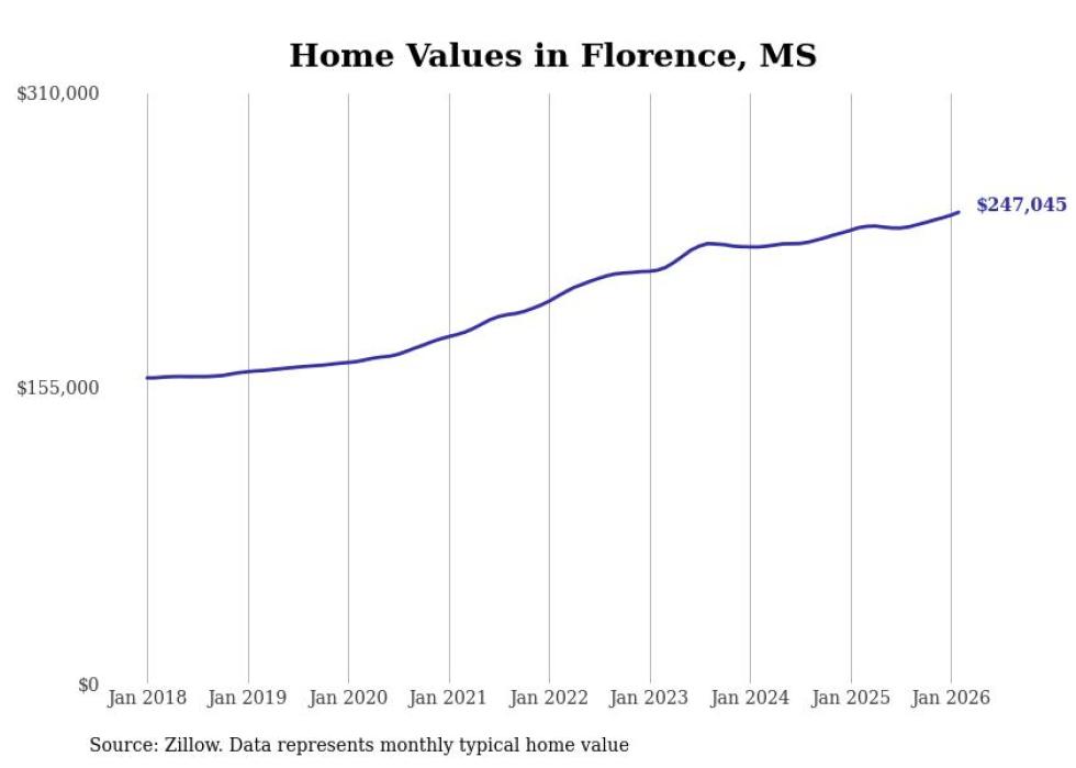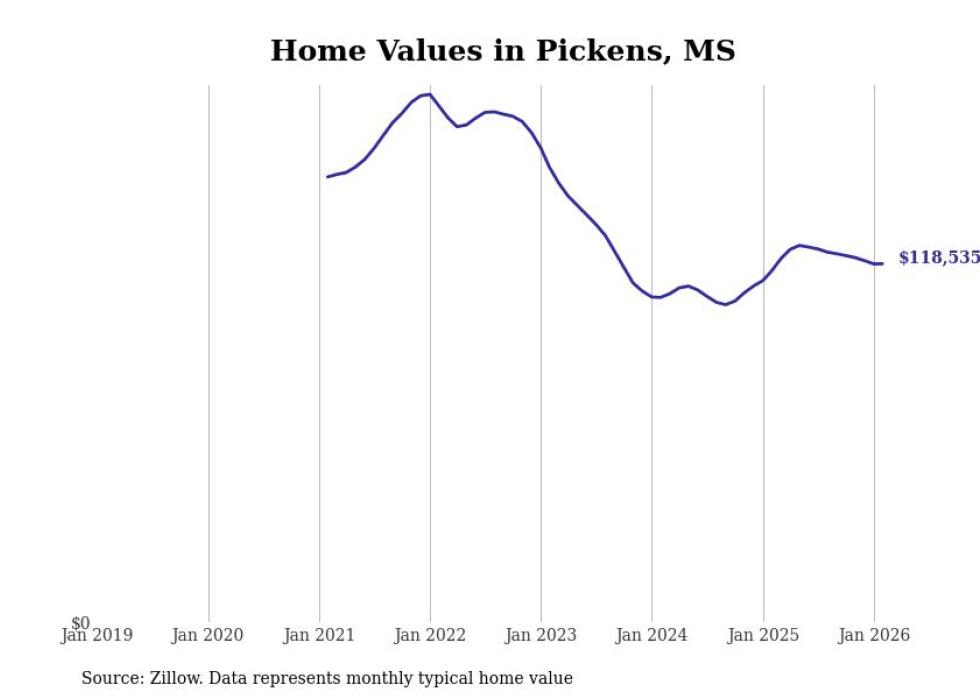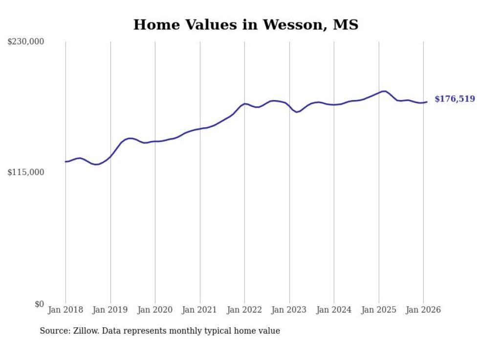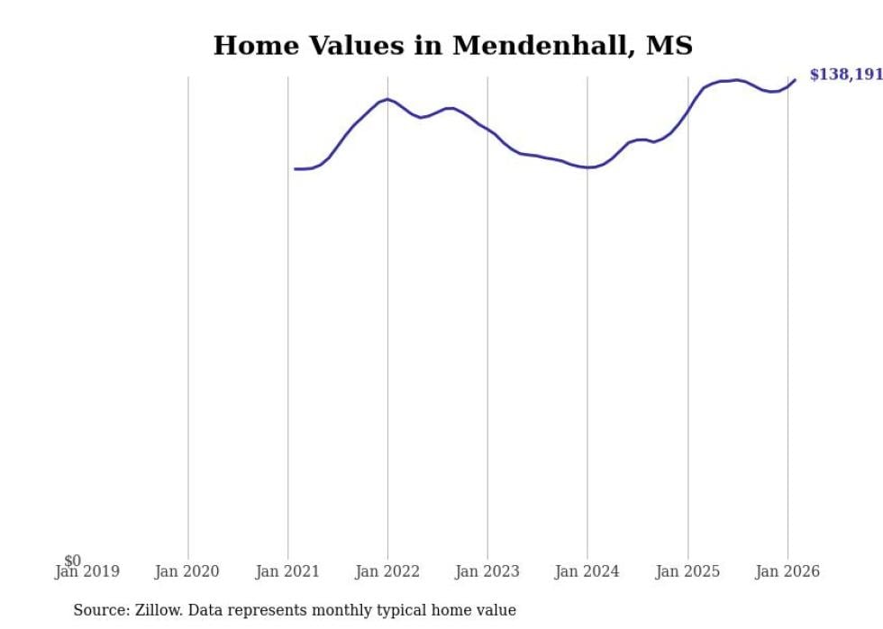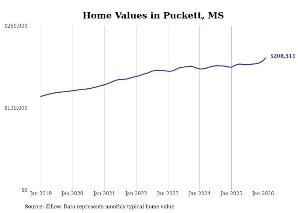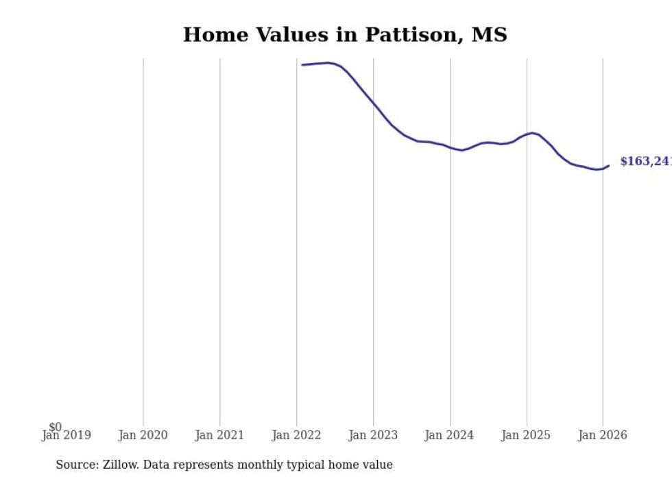 Stacker compiled a list of cities with the most expensive homes in the Jackson metro area using data from Zillow. Charts show the monthly typical home value since January 2018. Data was available for 40 cities and towns.