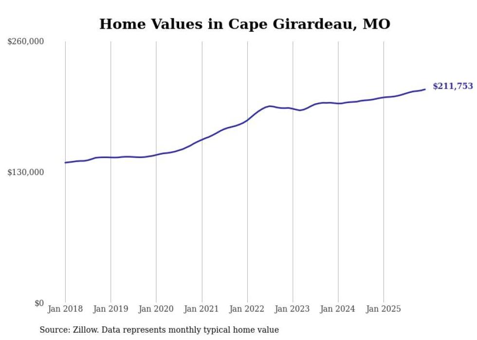 Cities with the fastest-growing home prices in the Cape Girardeau metro area