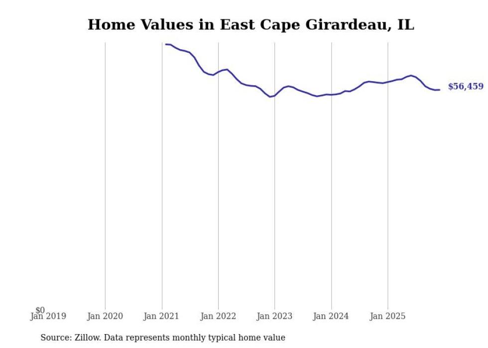 Stacker compiled a list of cities with the most expensive homes in the Cape Girardeau, MO-IL metro area using data from Zillow. Charts show the monthly typical home value since January 2018.