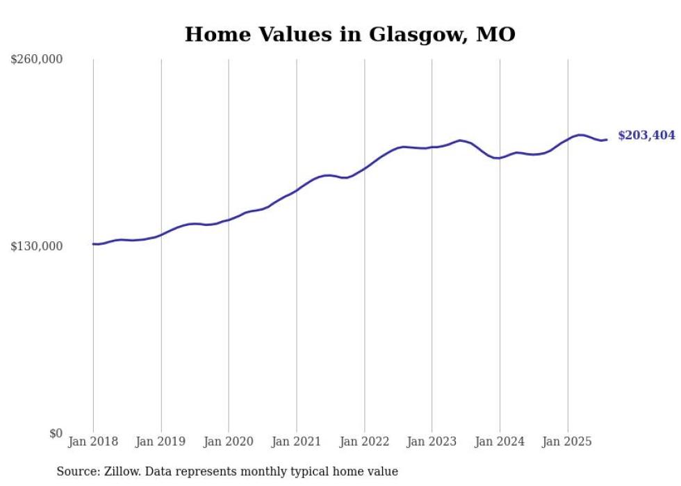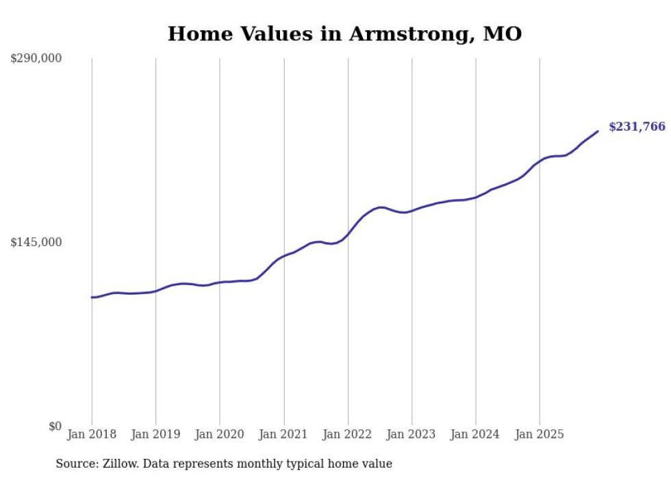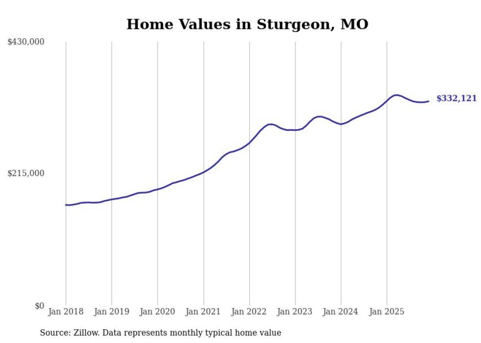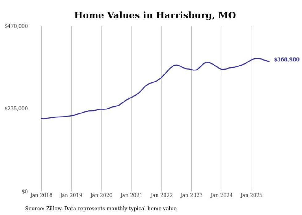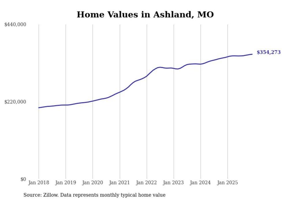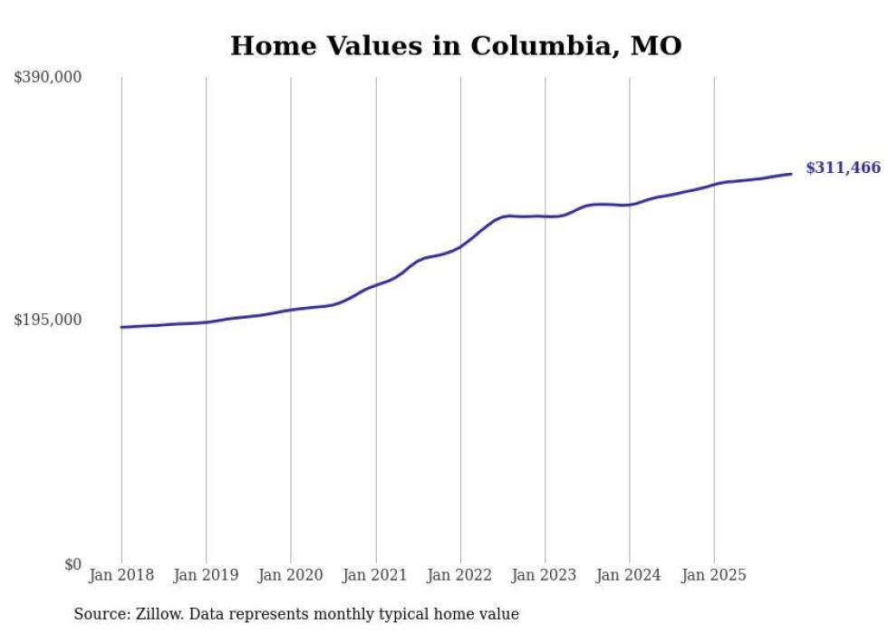 Cities with the fastest-growing home prices in the Columbia, Missouri metro area